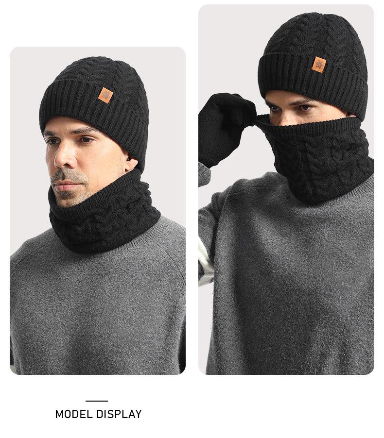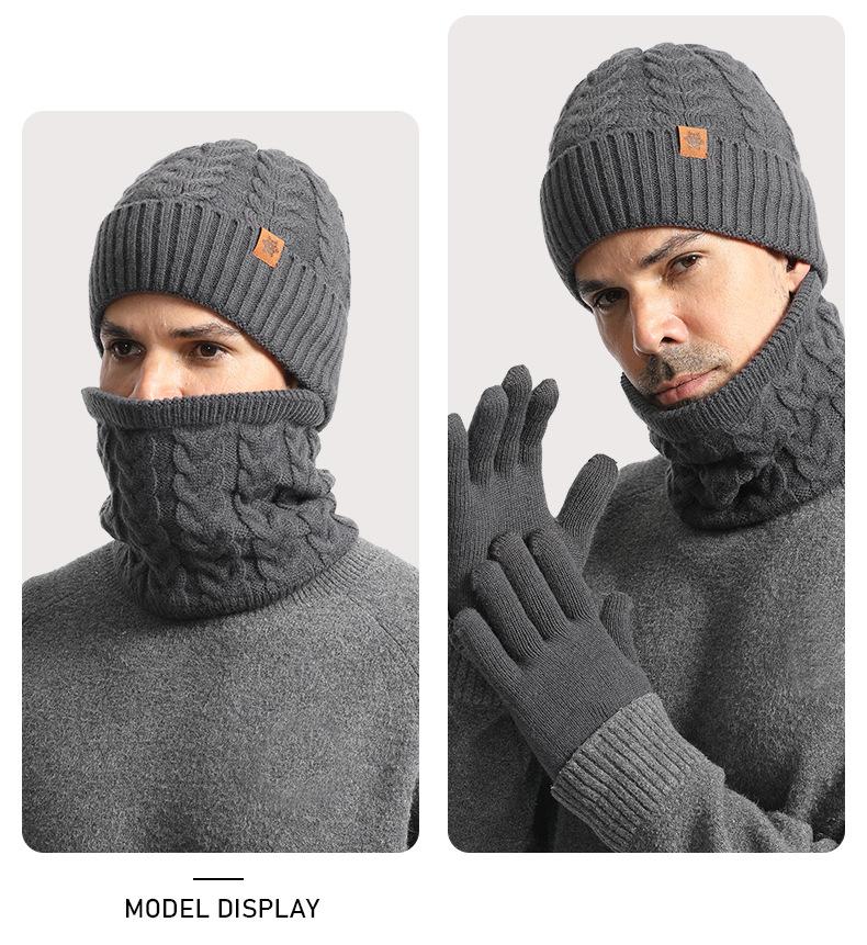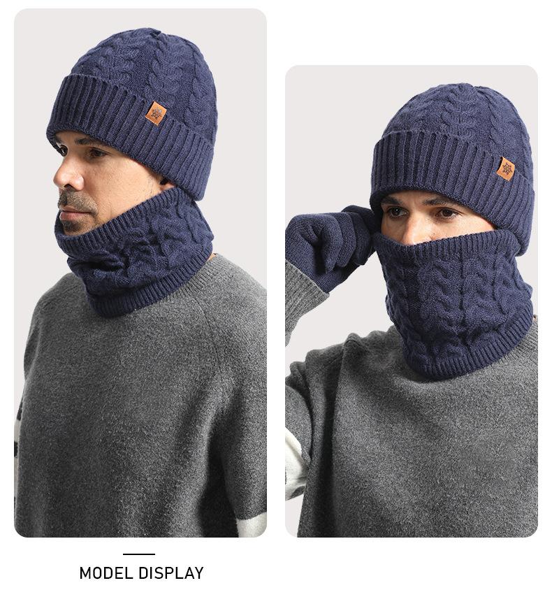 Gorro de punto cálido con protección para los oídos, bufanda y guantes, conjunto de tres piezas, gorro de punto con forro polar para exteriores de invierno, conjunto de tres piezas