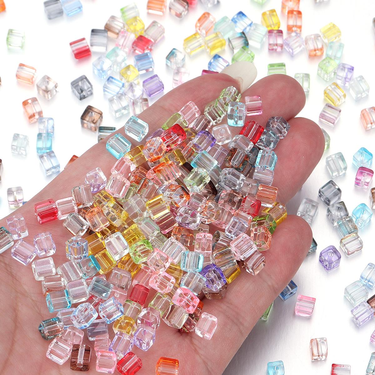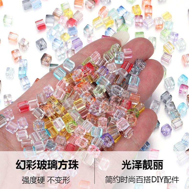 Cuentas de arroz cuadradas con degradado mágico de vidrio, cuentas de azúcar de vidrio hechas a mano, material para pulseras, accesorios de joyería