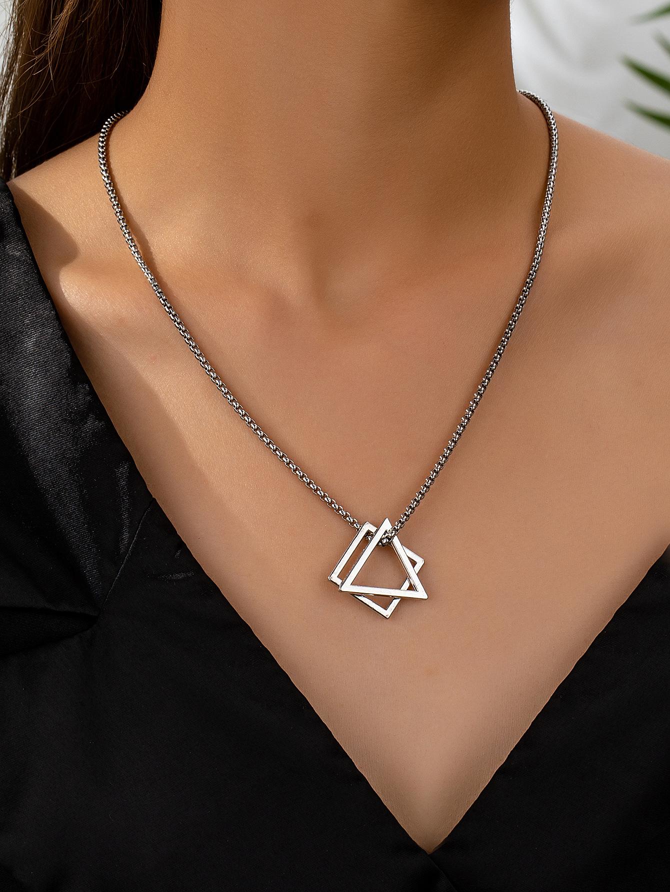Collar triangular de doble capa con colgante de moda creativa, joyería transfronteriza europea y americana, collar de cadena de clavícula para pareja