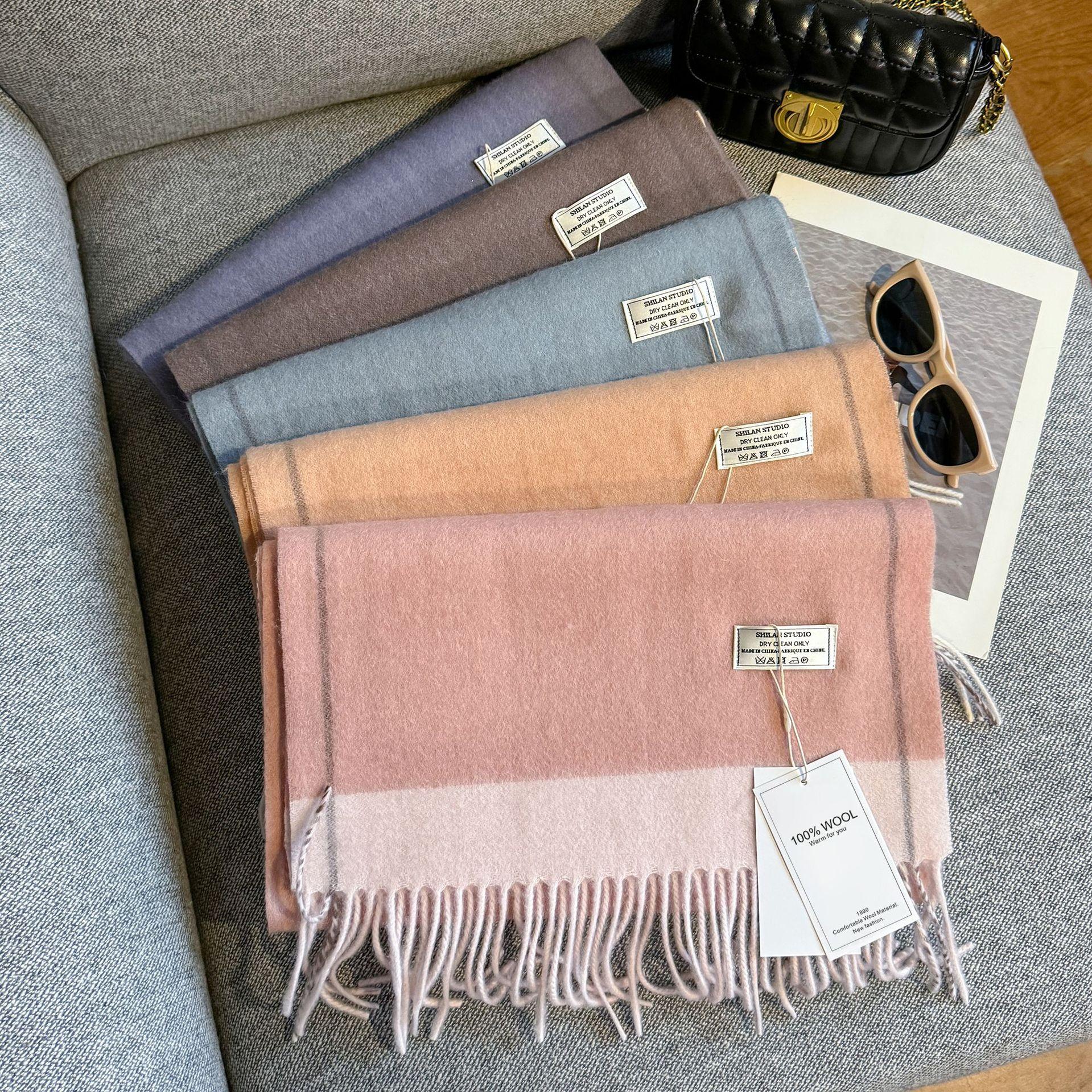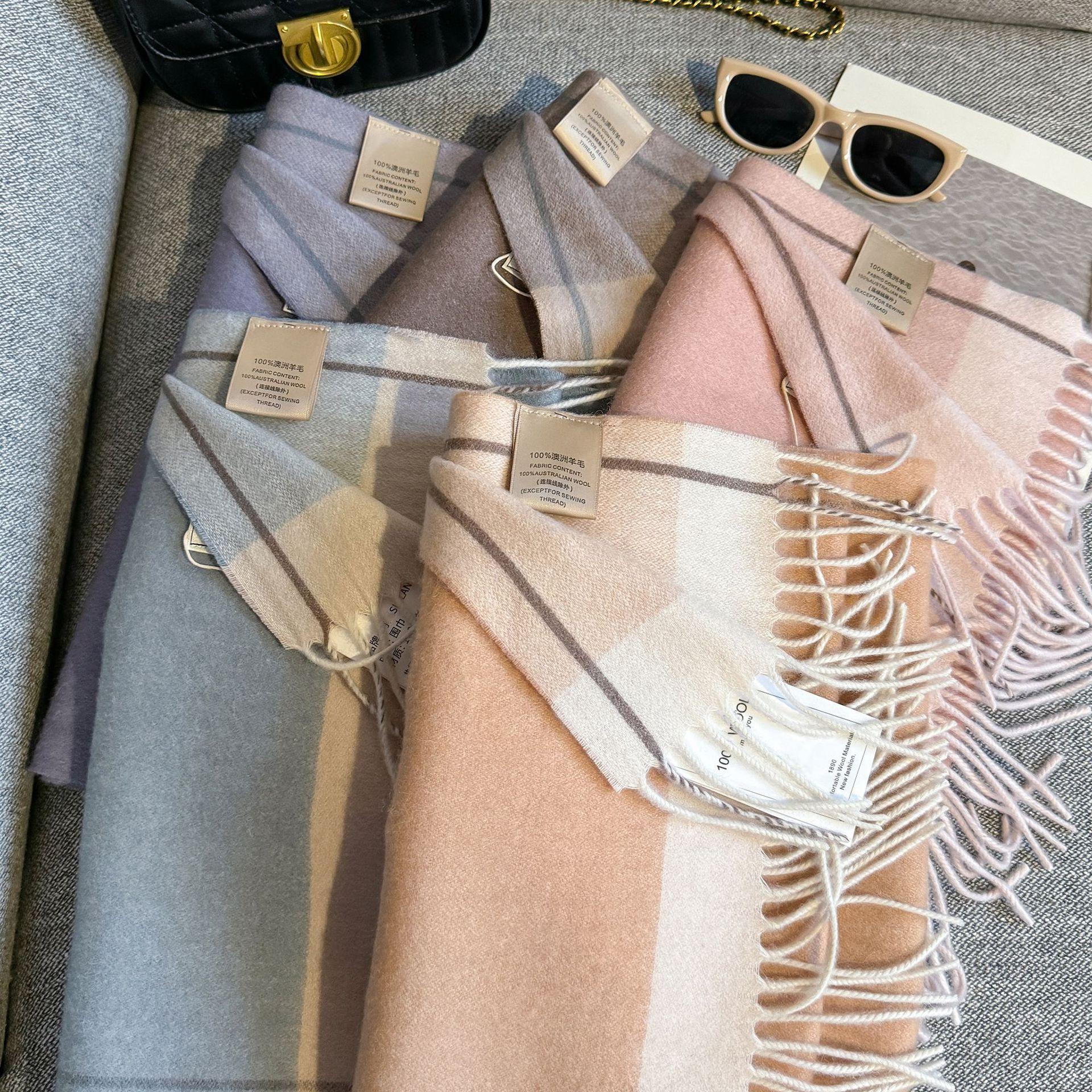 Bufanda 100% Lana para Mujer Invierno 2024 Nueva Cuadros Cálida Bufanda de Alta Gama Chal para Pareja para Hombre Regalo de Cumpleaños