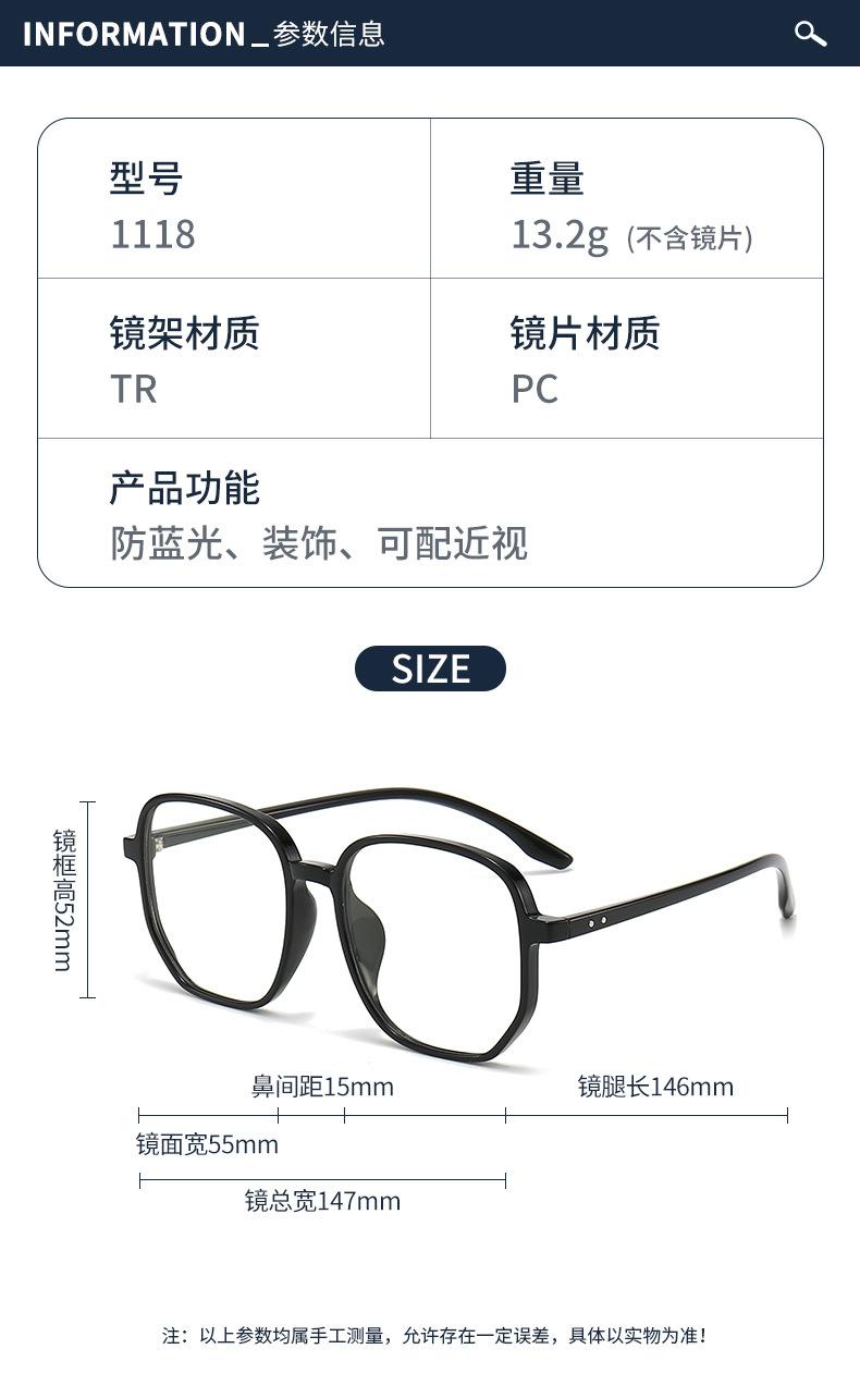 1118 Nuevo Armazón de Lentes TR90 Liso Anti-luz Azul para Mujer Estilo Celebridad Cibernética Ins Armazón Grande a la Moda Armazón de Lentes Planos