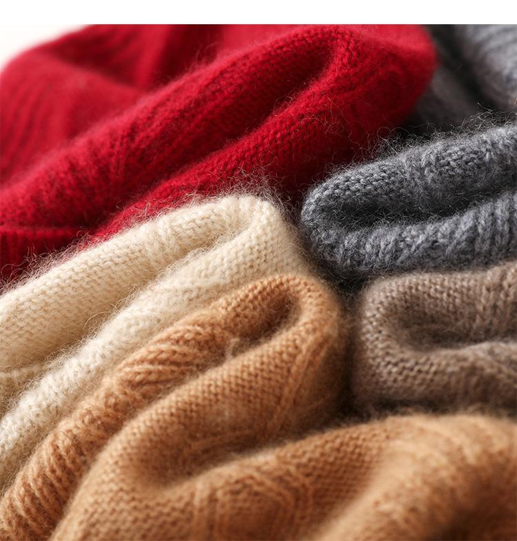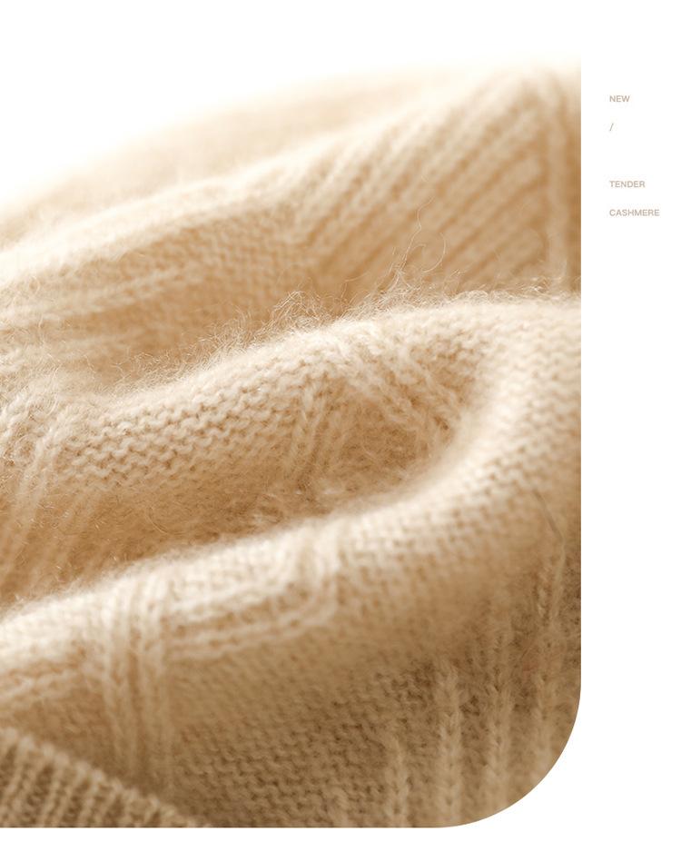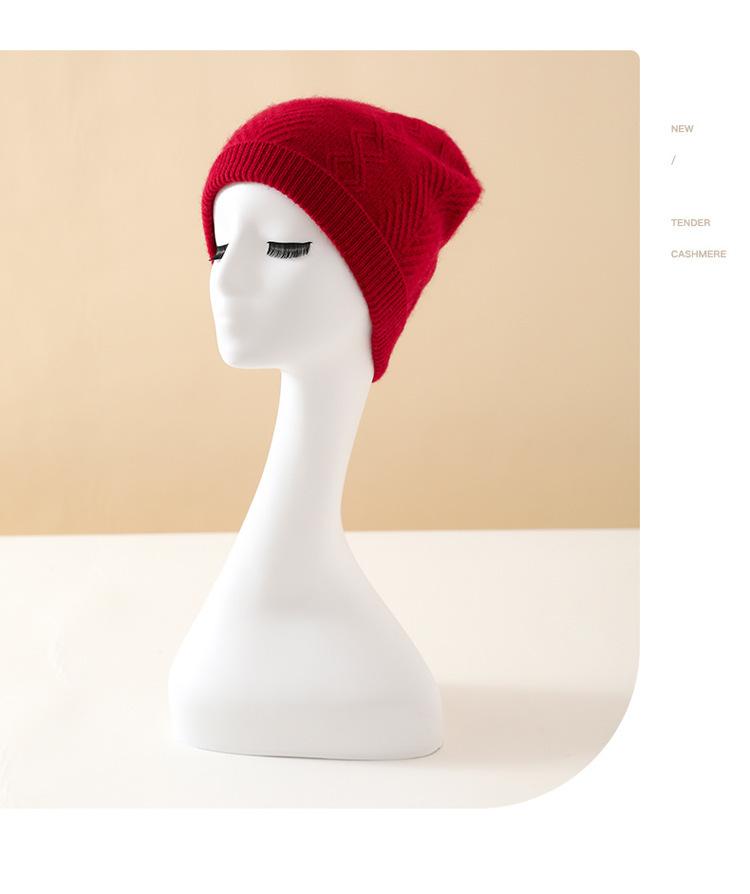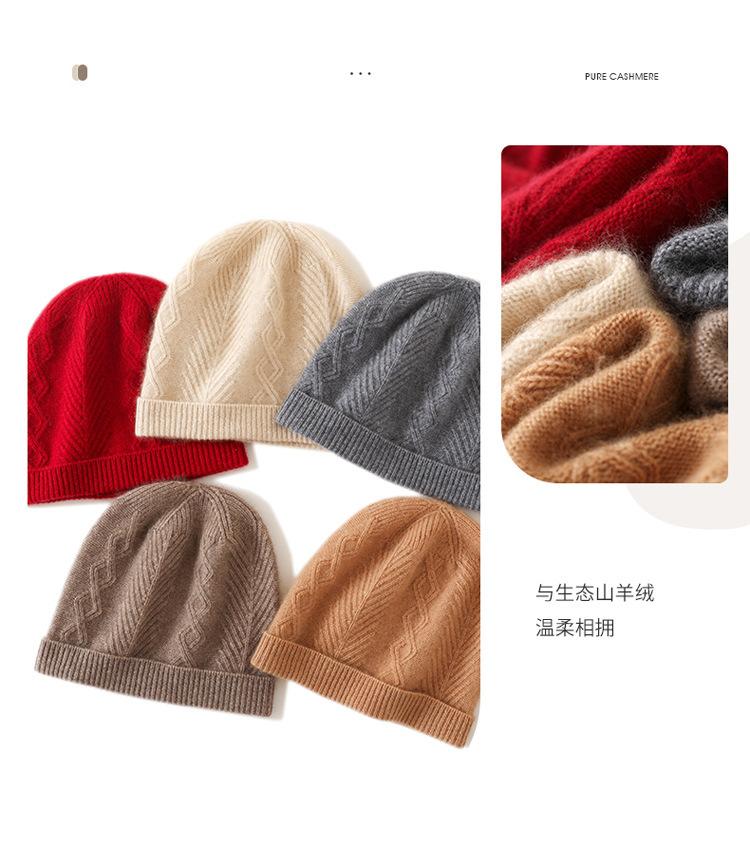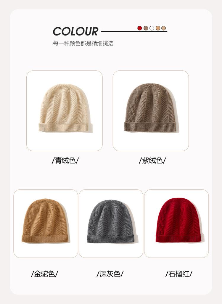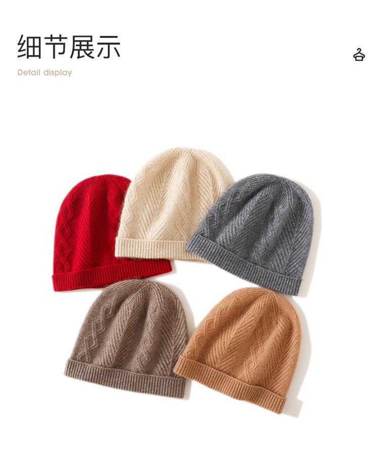 Cachemira 2025 Otoño e Invierno Nuevo Sombrero Casual de Punto de Moda Cálido y Grueso con Cable de Rombos de Color Puro con Clase para Mujer