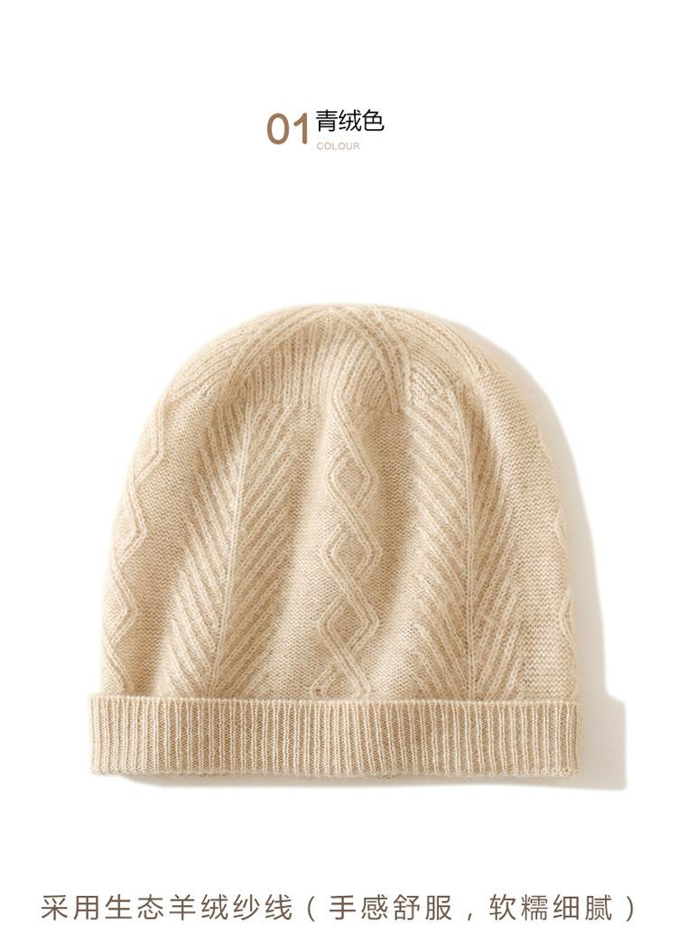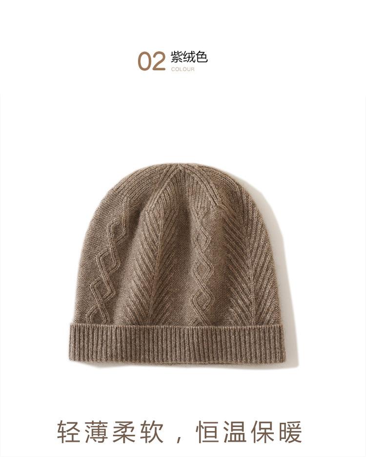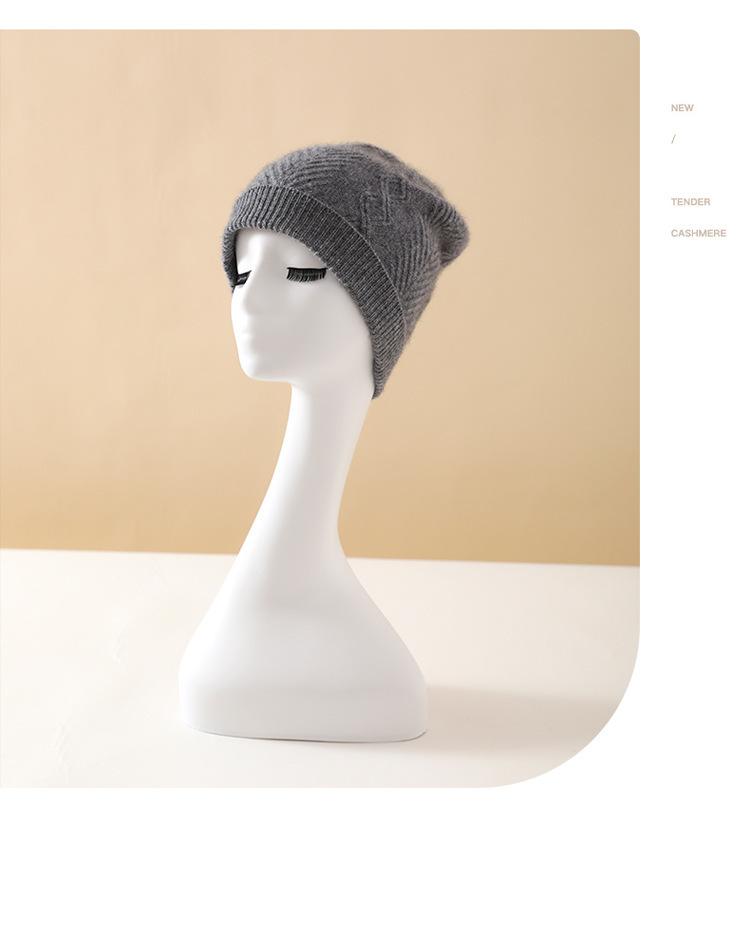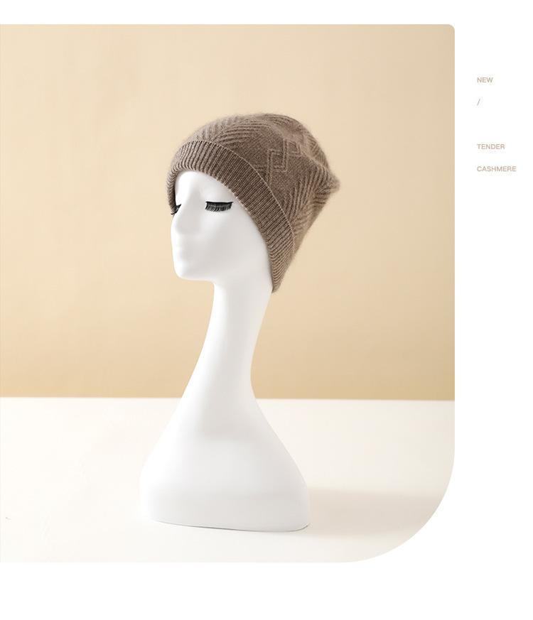Cachemira 2024 otoño e invierno nuevo sombrero casual de punto de moda cálido grueso trenzado diamante color sólido de alta gama para mujer