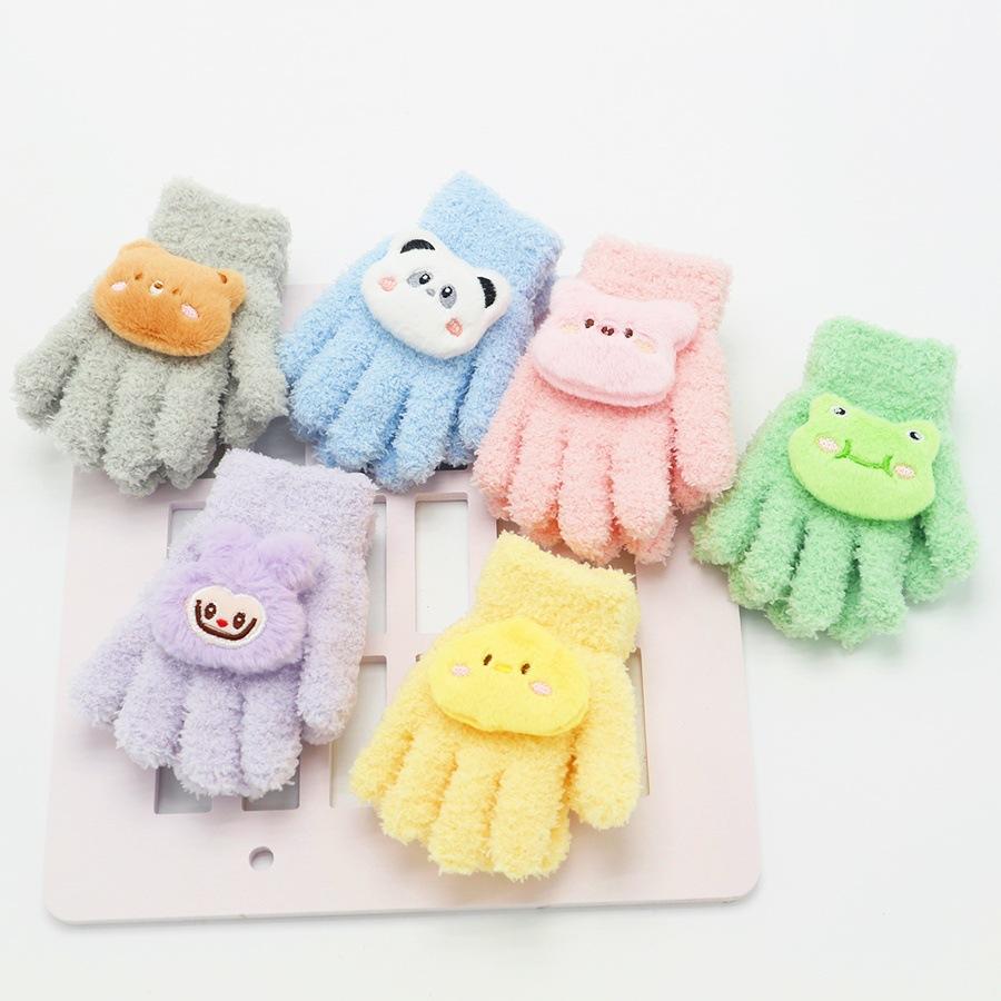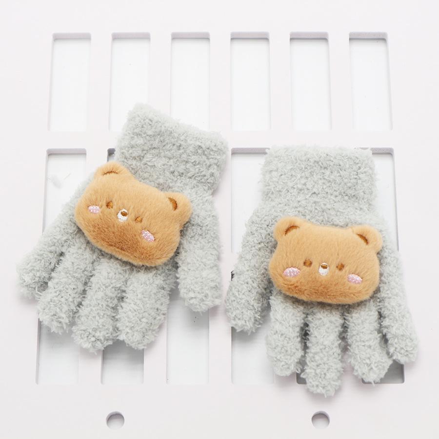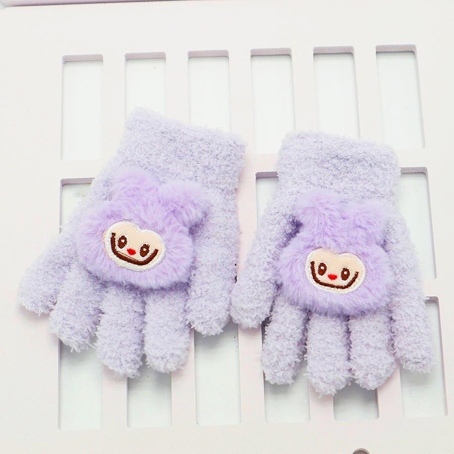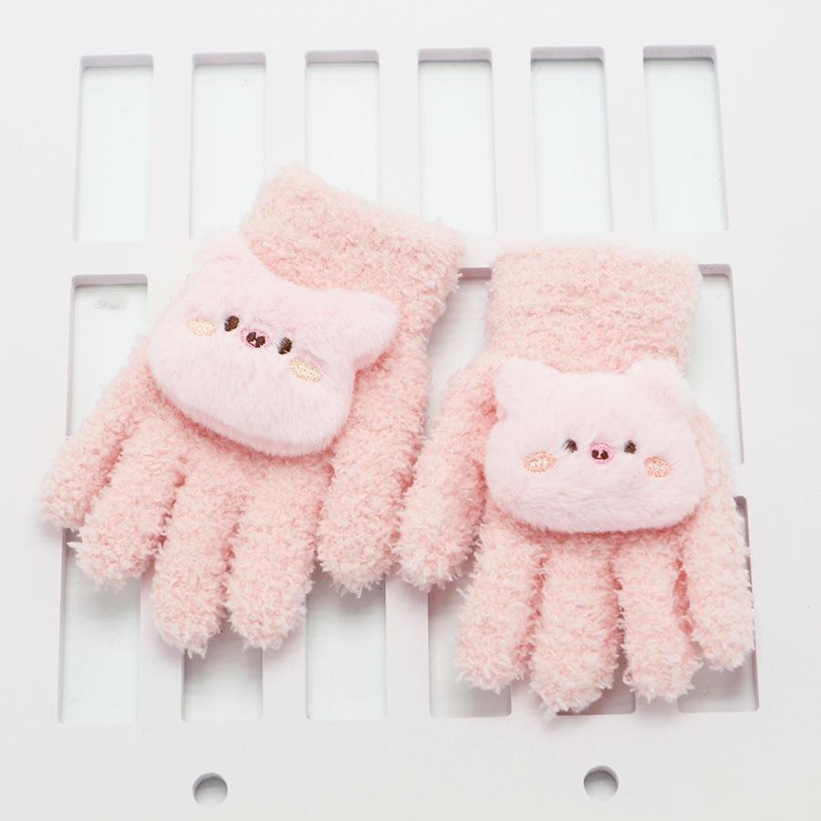 Guantes para Niños Nuevo Invierno Cálido con forro polar Engrosado Cinco dedos Dedo dividido para Niña Dedo completo A prueba de frío Lindo Solapa Dibujo animado