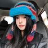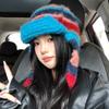 Gorro de punto de mohair con rayas retro para mujer, gorro de lana cálido para otoño e invierno 2024, gorro Lei Feng volador