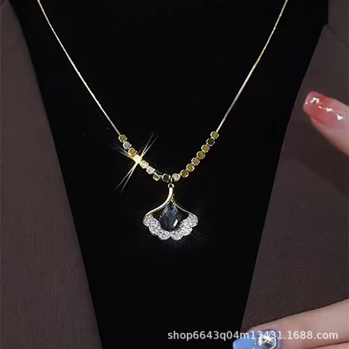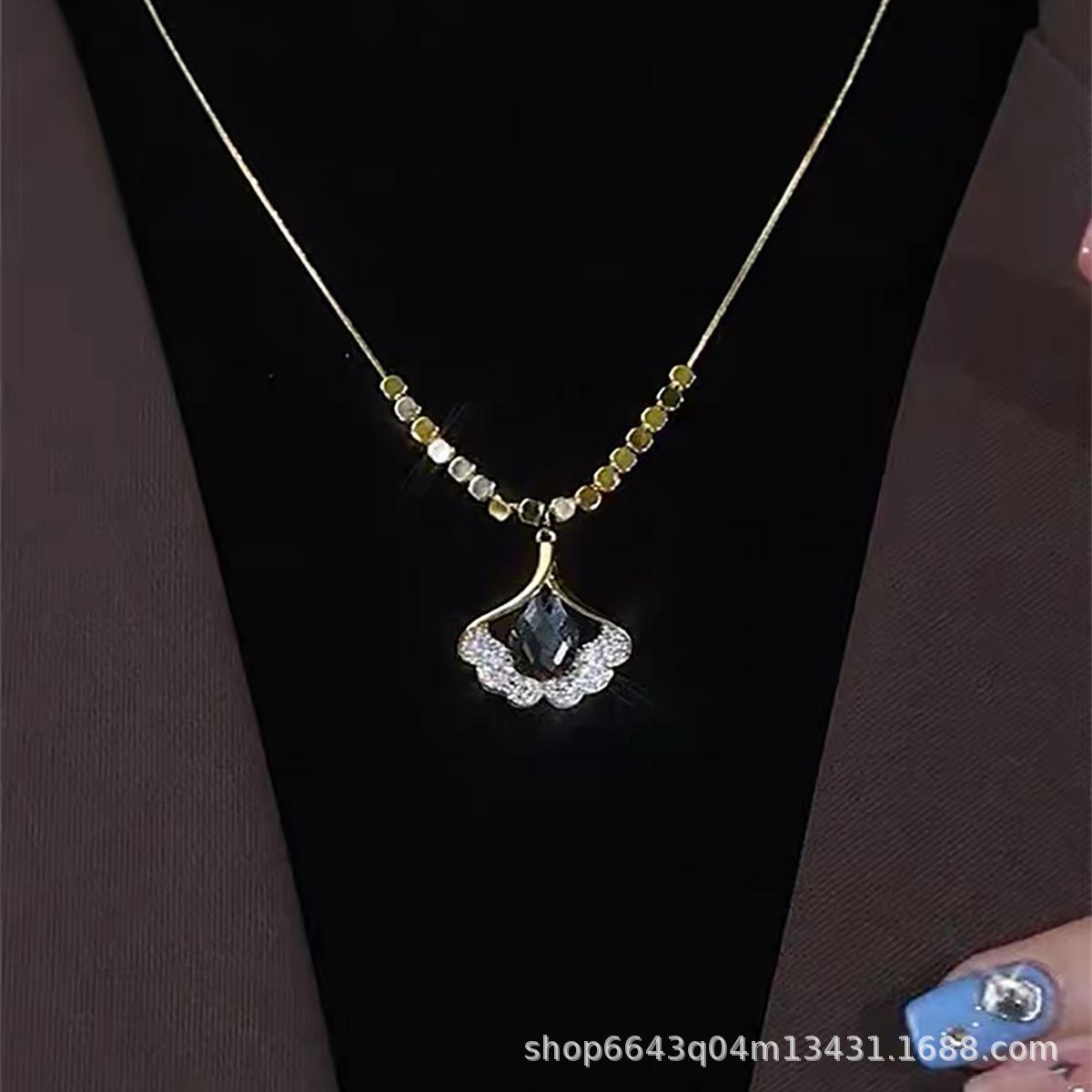 Elegante Collar Hoja de Ginkgo Moda Otoño e Invierno Nuevo Trendy Lujo Ligero de Alta Gama Cadena de Lana para Celebridad de Internet para Mujer