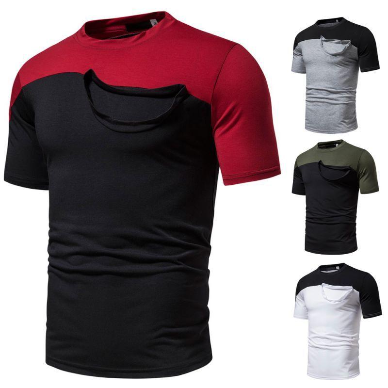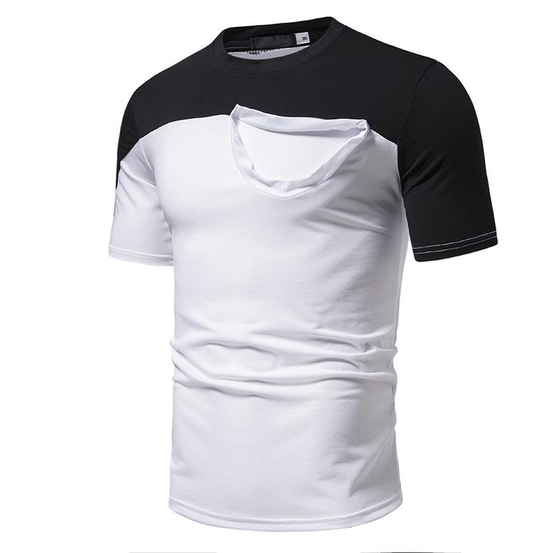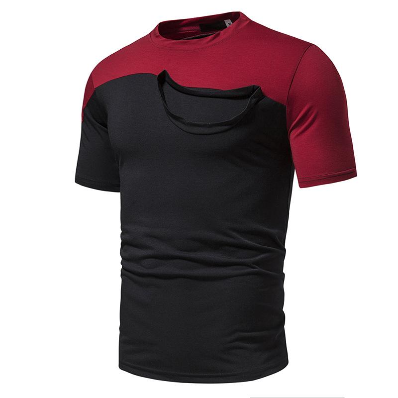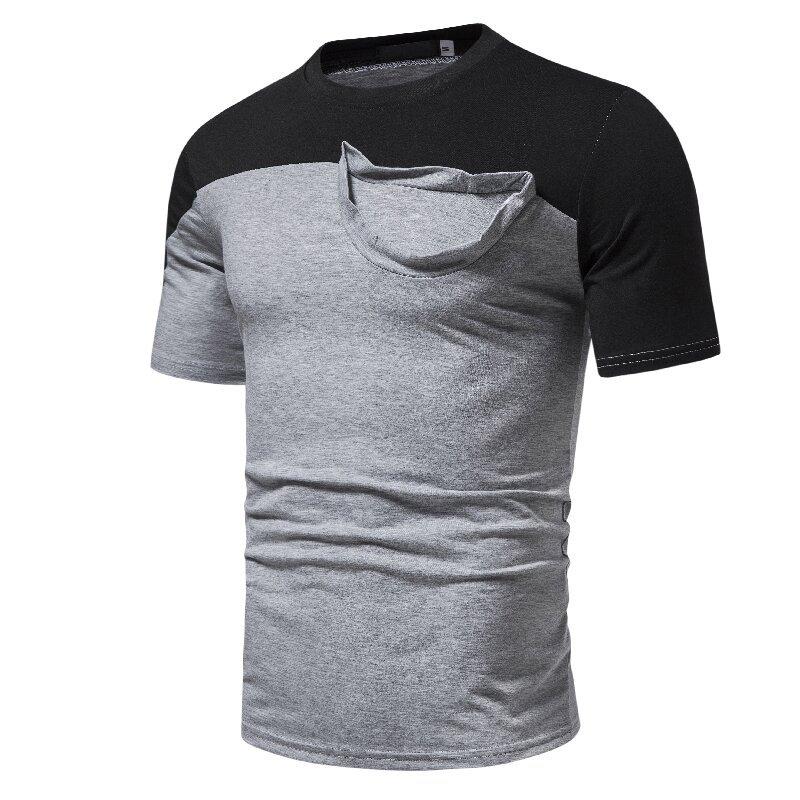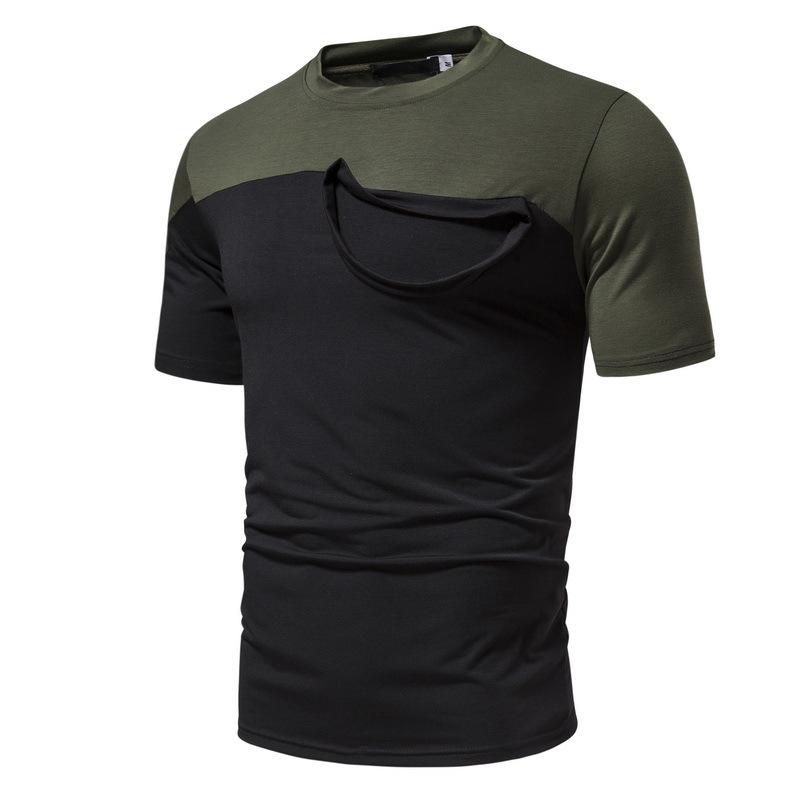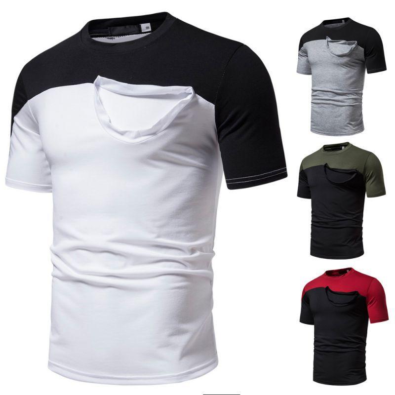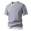 Camiseta informal de verano para hombre, de manga corta, con costuras falsas, cuello redondo, dos piezas, T40