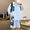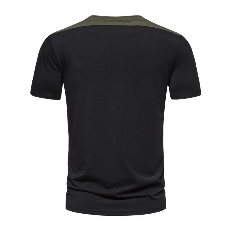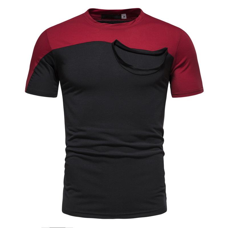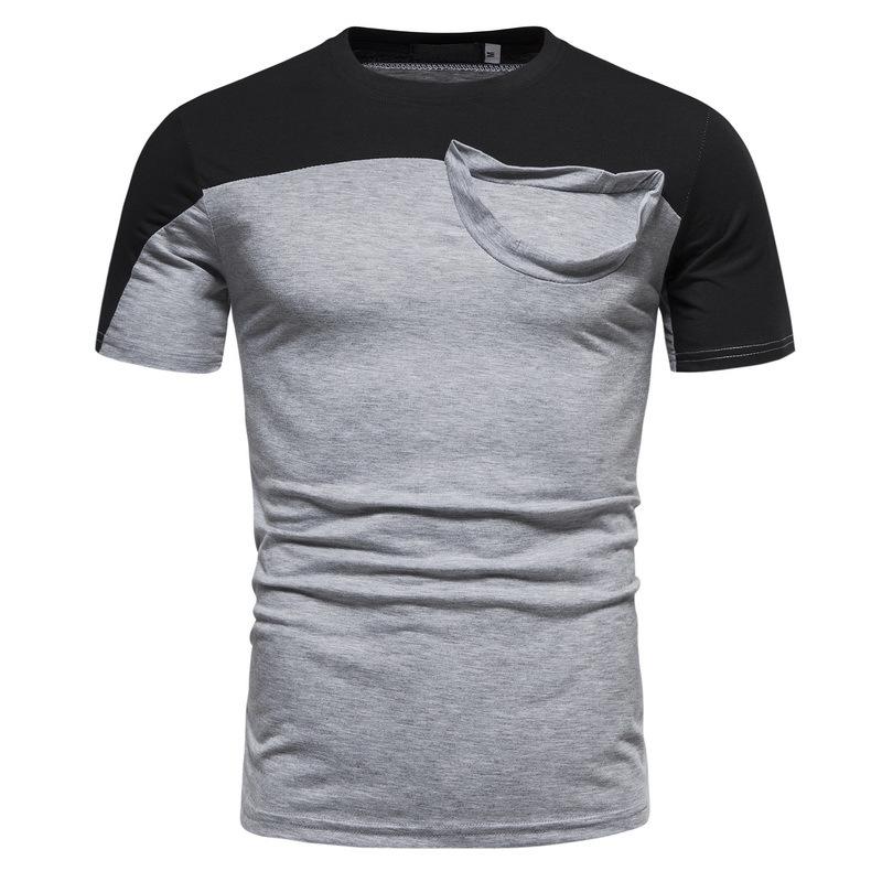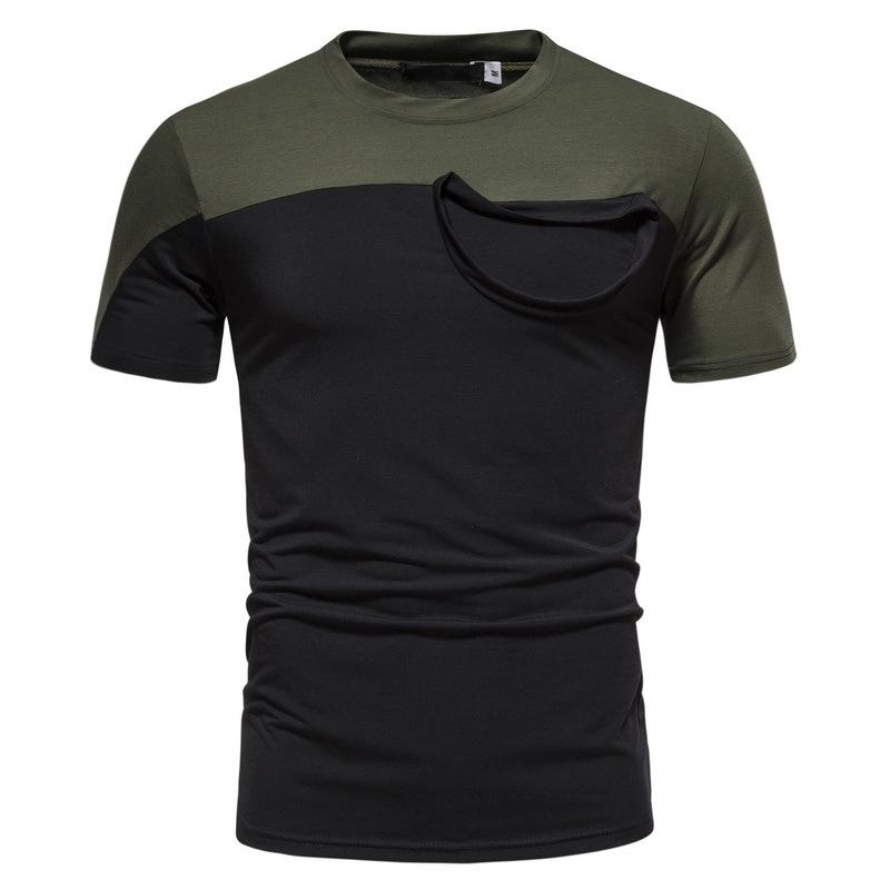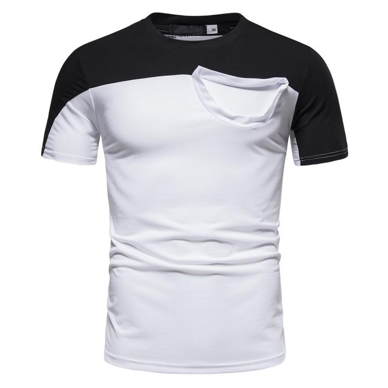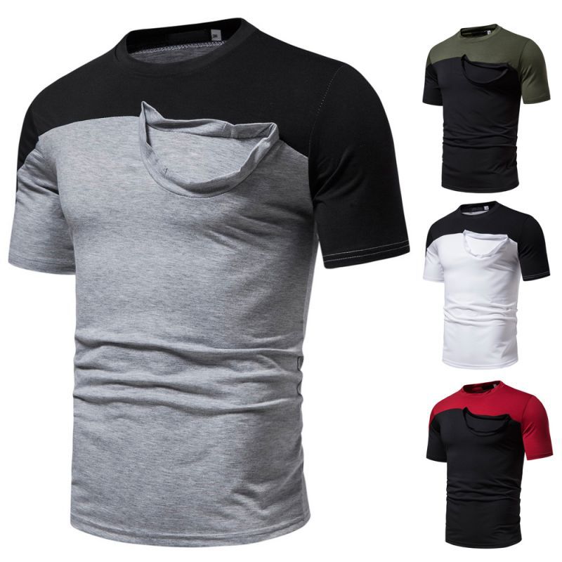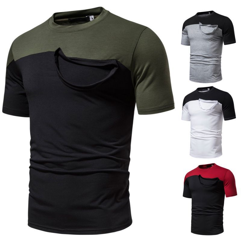 Camiseta informal de verano para hombre, de manga corta, con costuras falsas, cuello redondo, dos piezas, T40