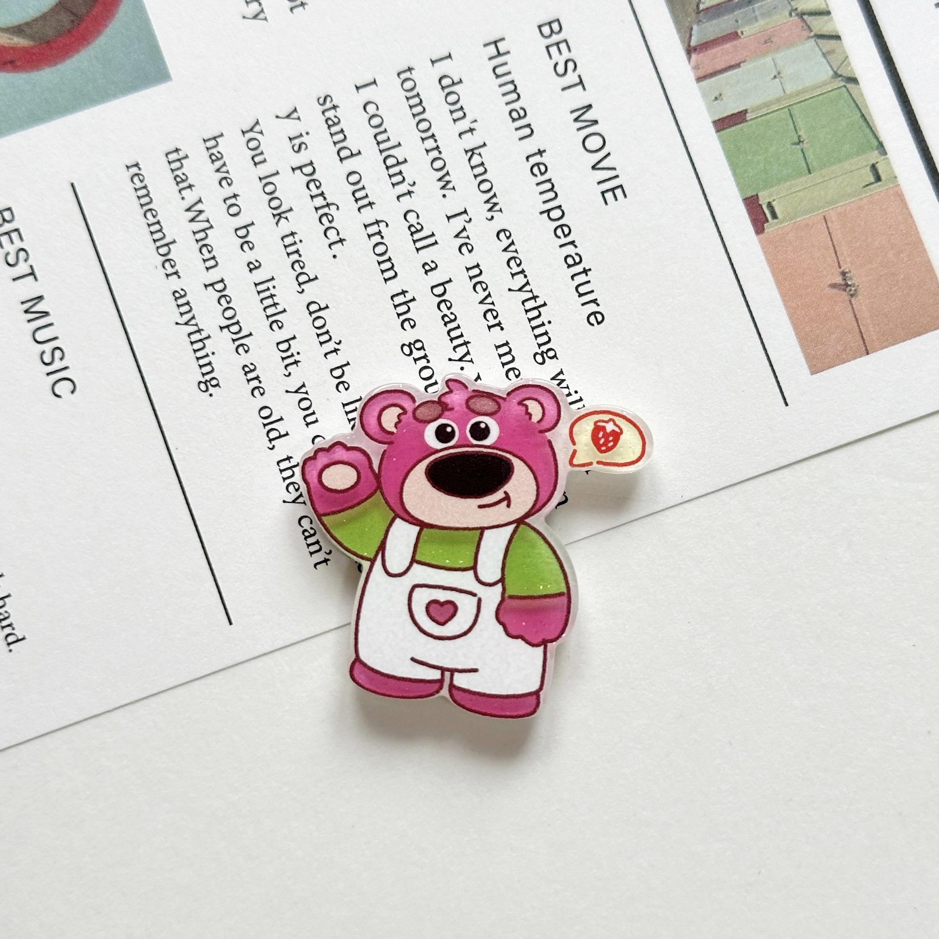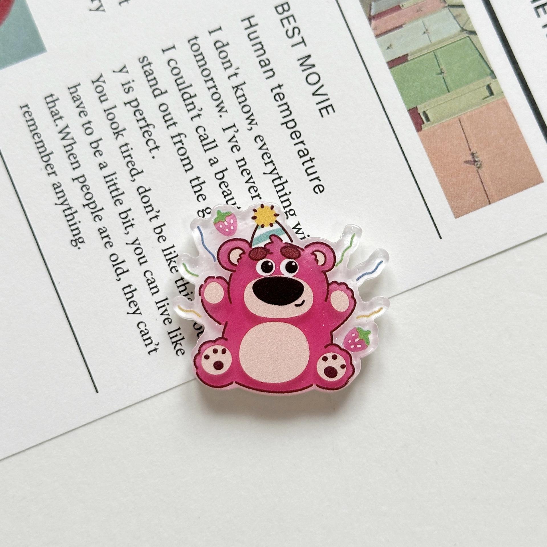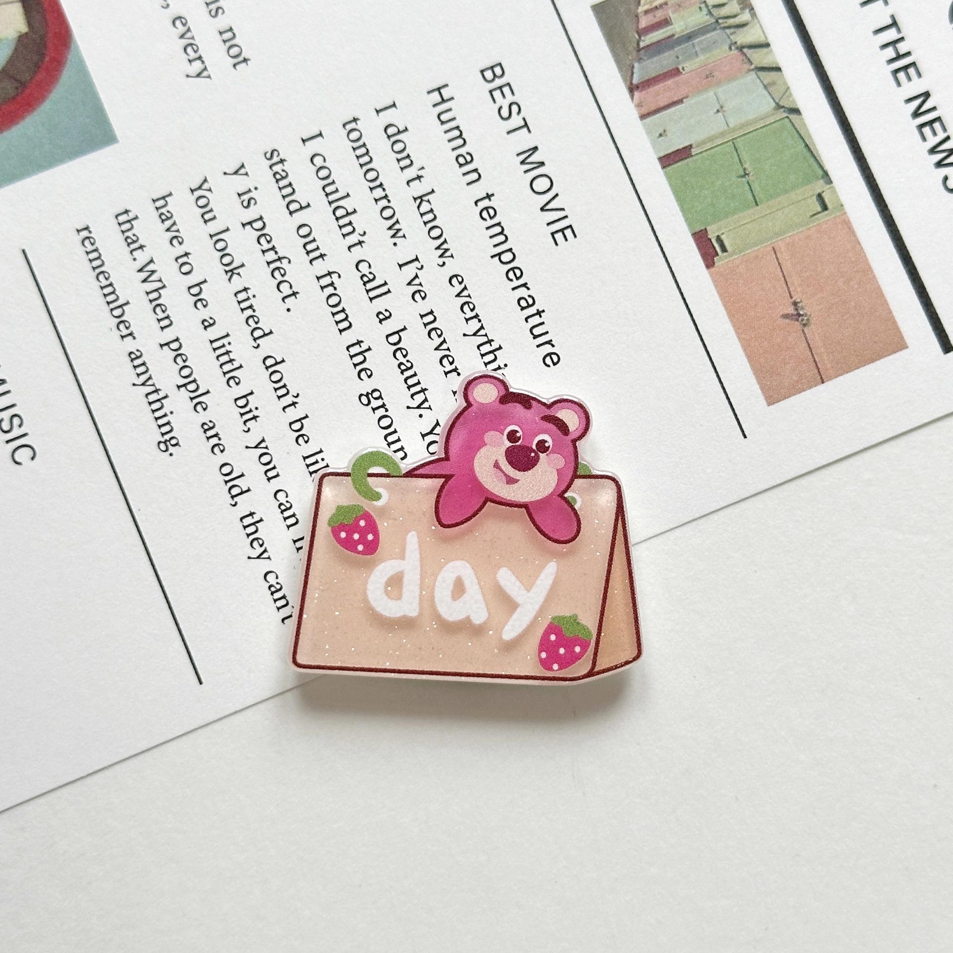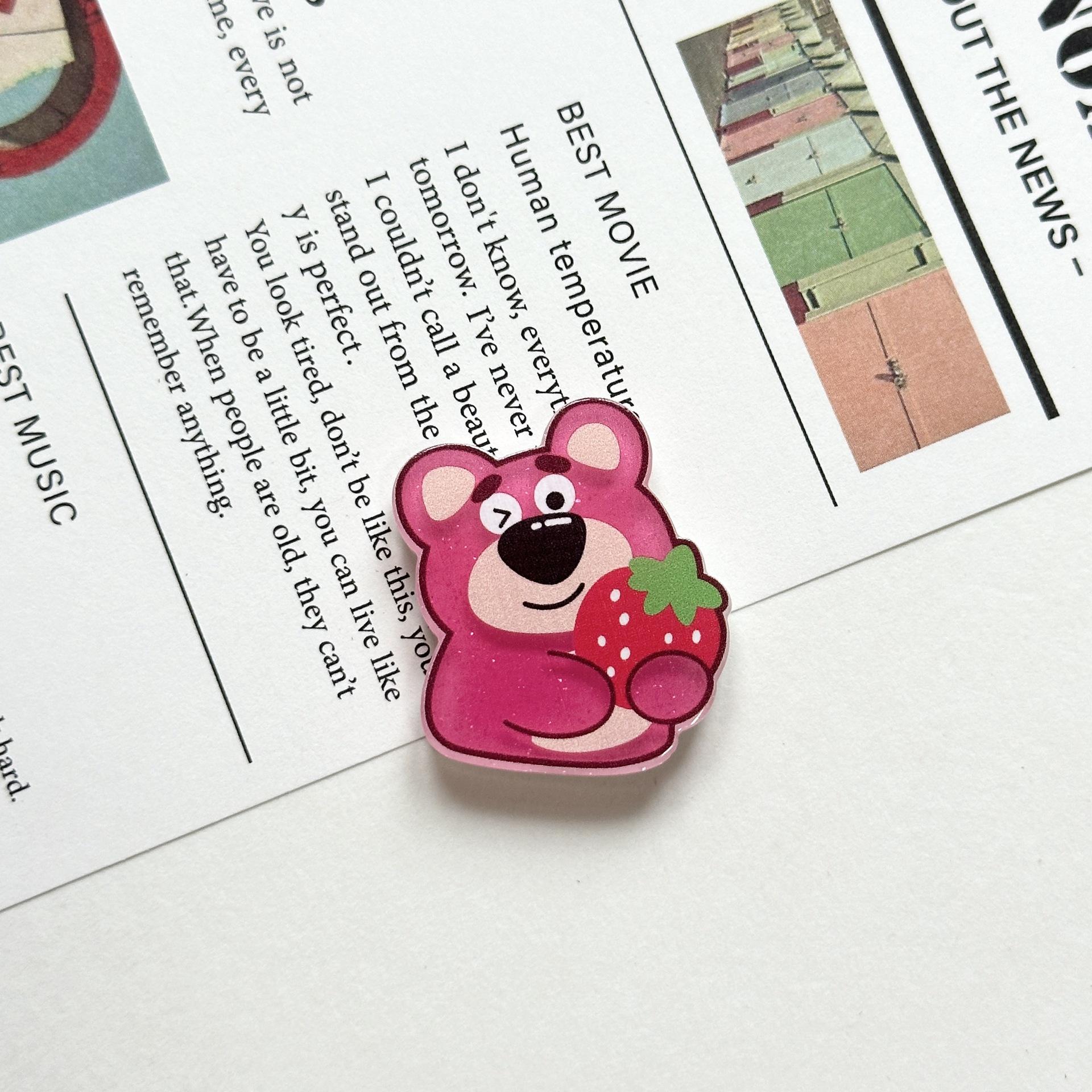 Broche Acrílico de Osito de Fresa Suave Lindo de Dibujos Animados Ins Insignia Colgante para Bolso Estuche para Teléfono Móvil Parche de Joyería