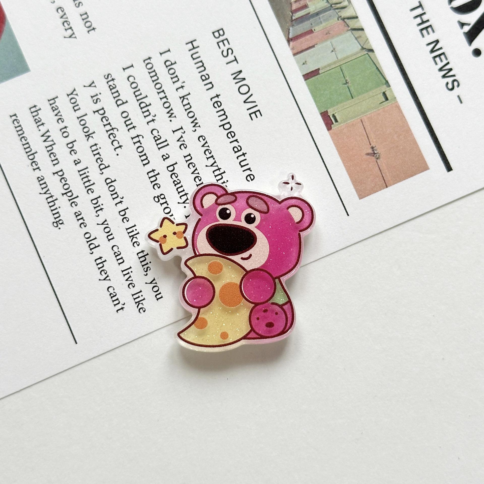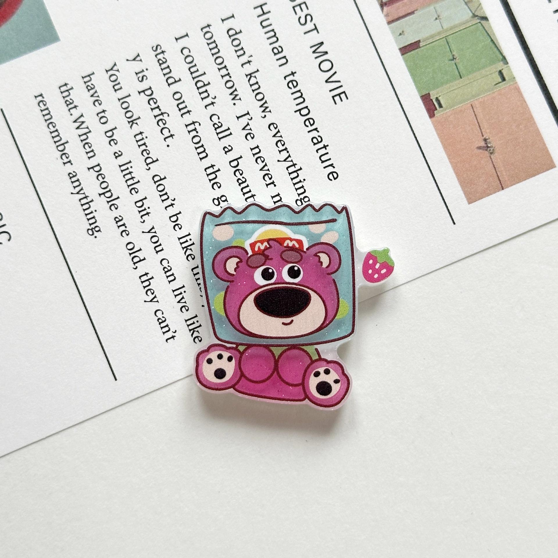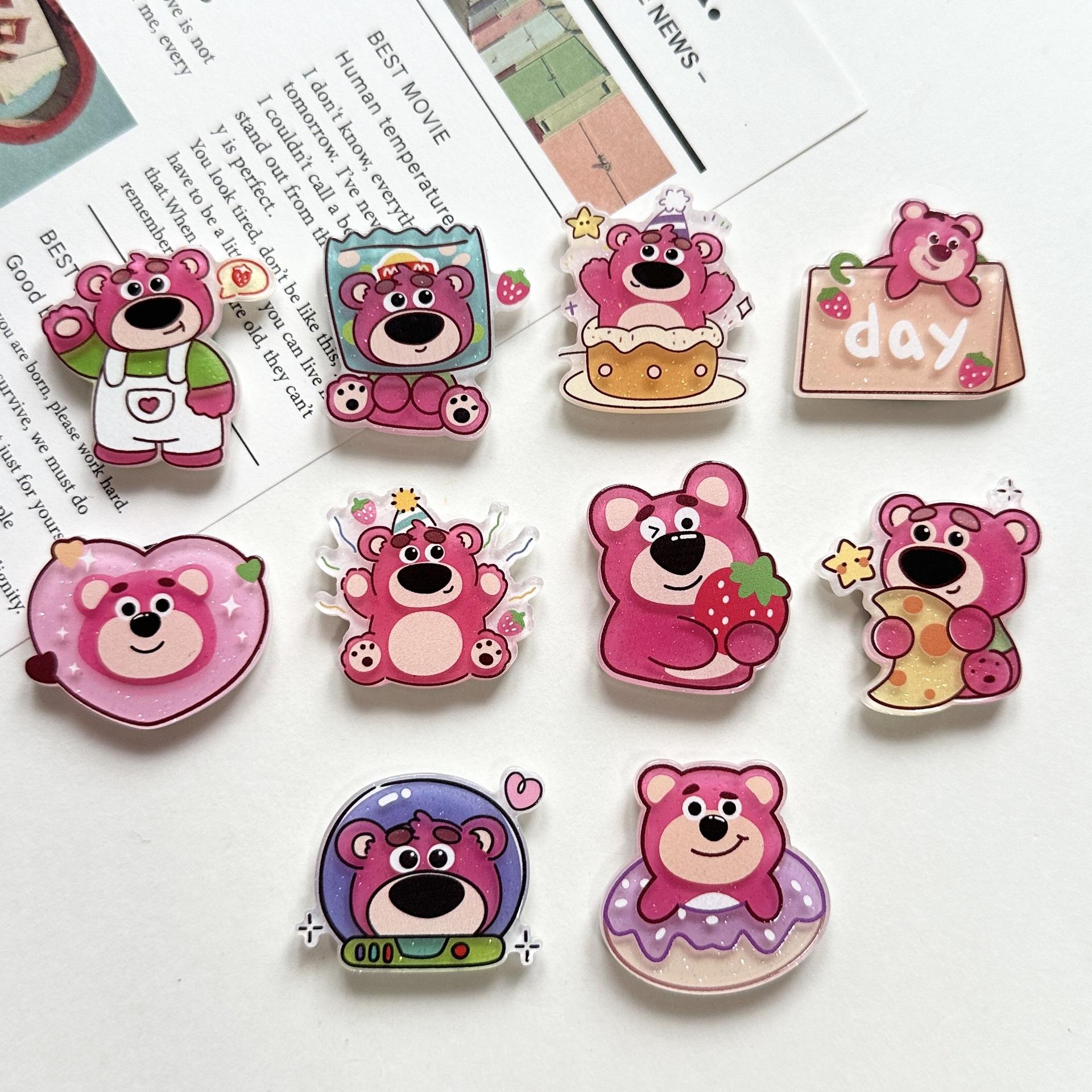 Broche Acrílico de Osito de Fresa Suave Lindo de Dibujos Animados Ins Insignia Colgante para Bolso Estuche para Teléfono Móvil Parche de Joyería