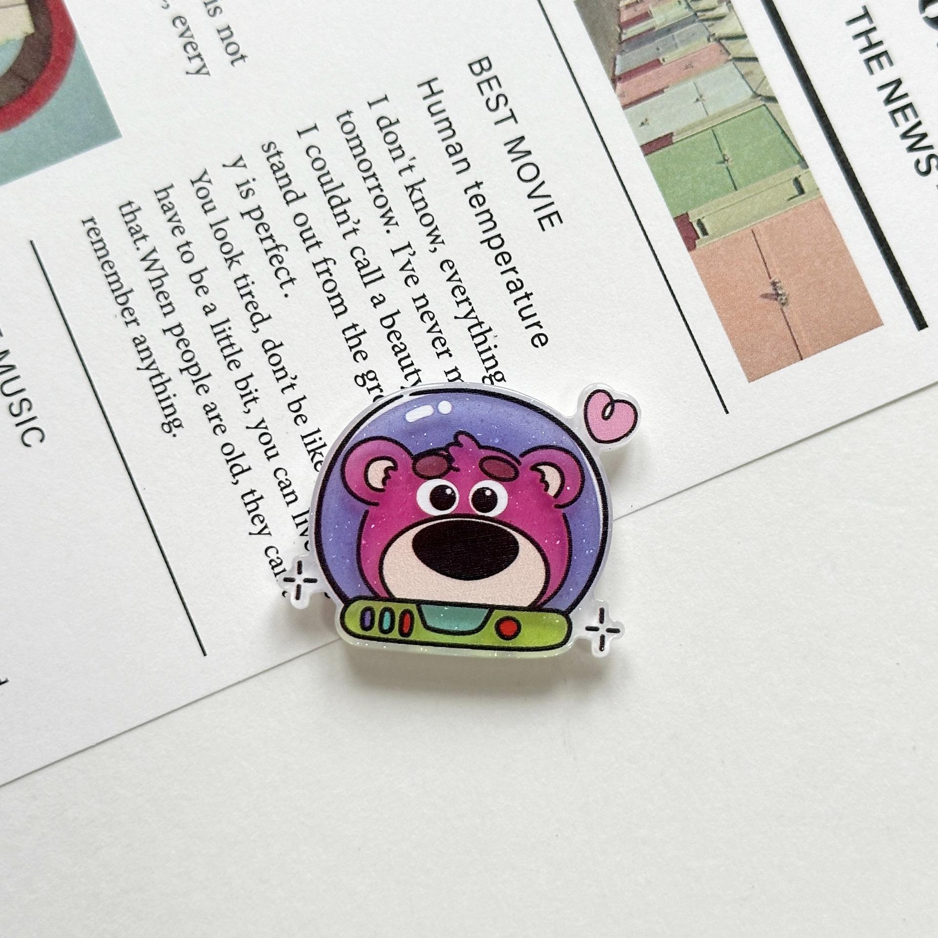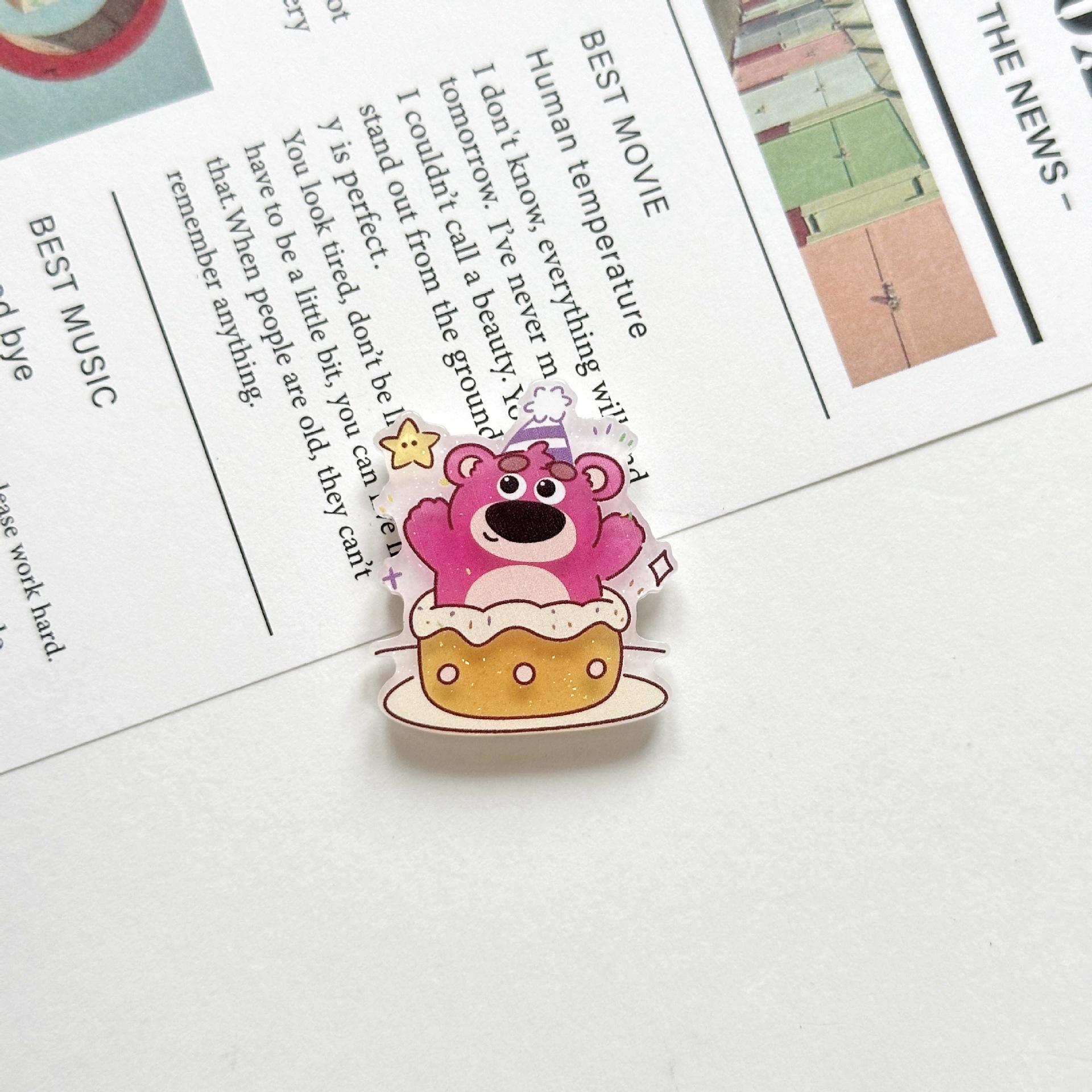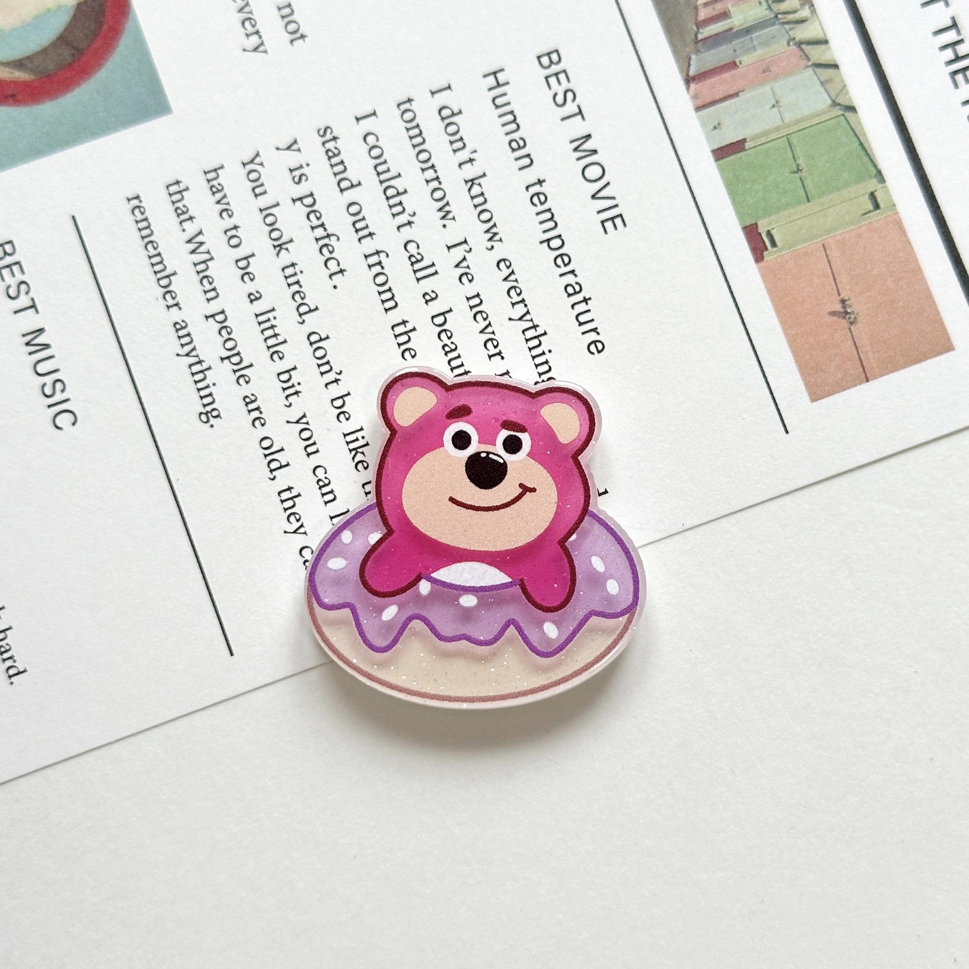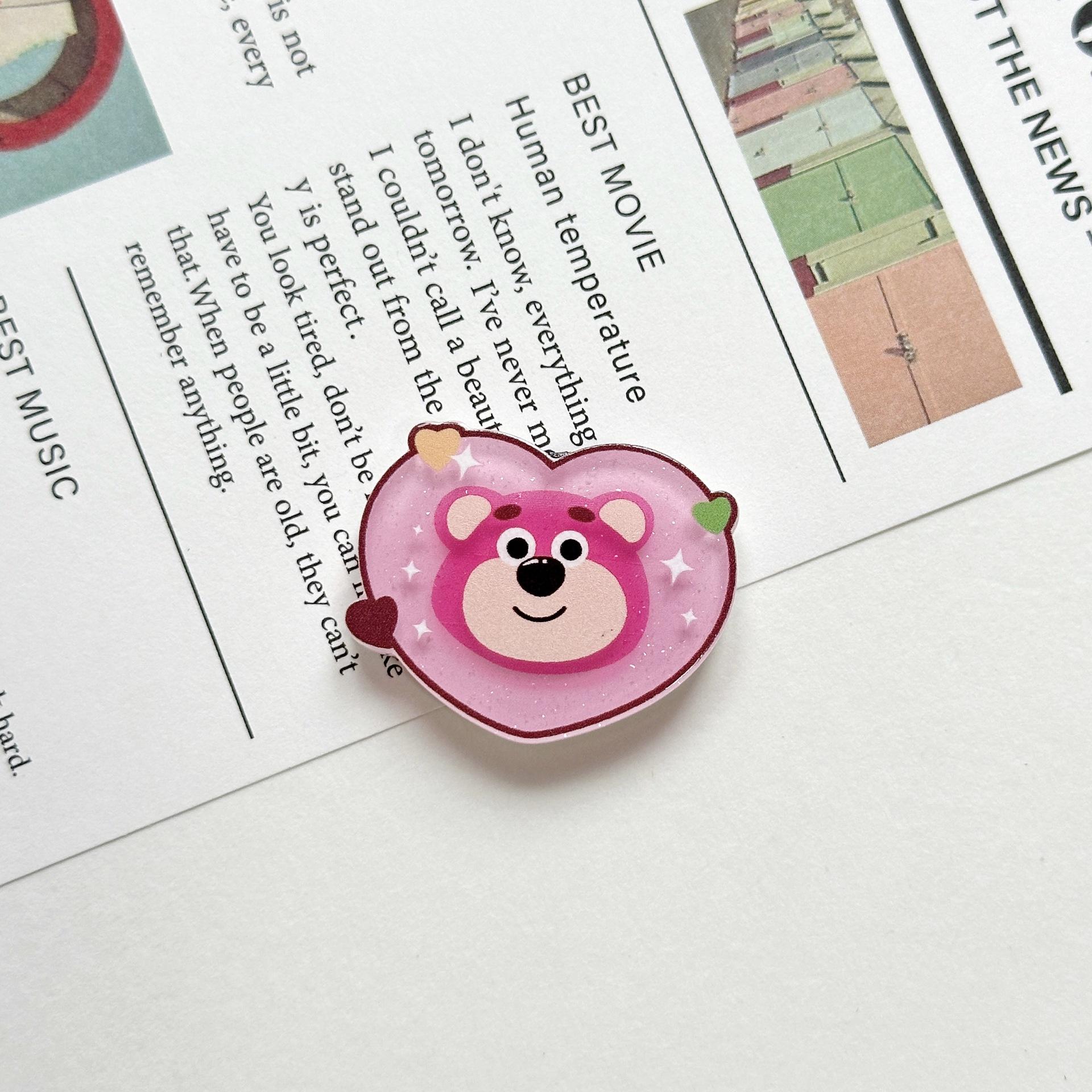 Broche Acrílico de Osito de Fresa Suave Lindo de Dibujos Animados Ins Insignia Colgante para Bolso Estuche para Teléfono Móvil Parche de Joyería