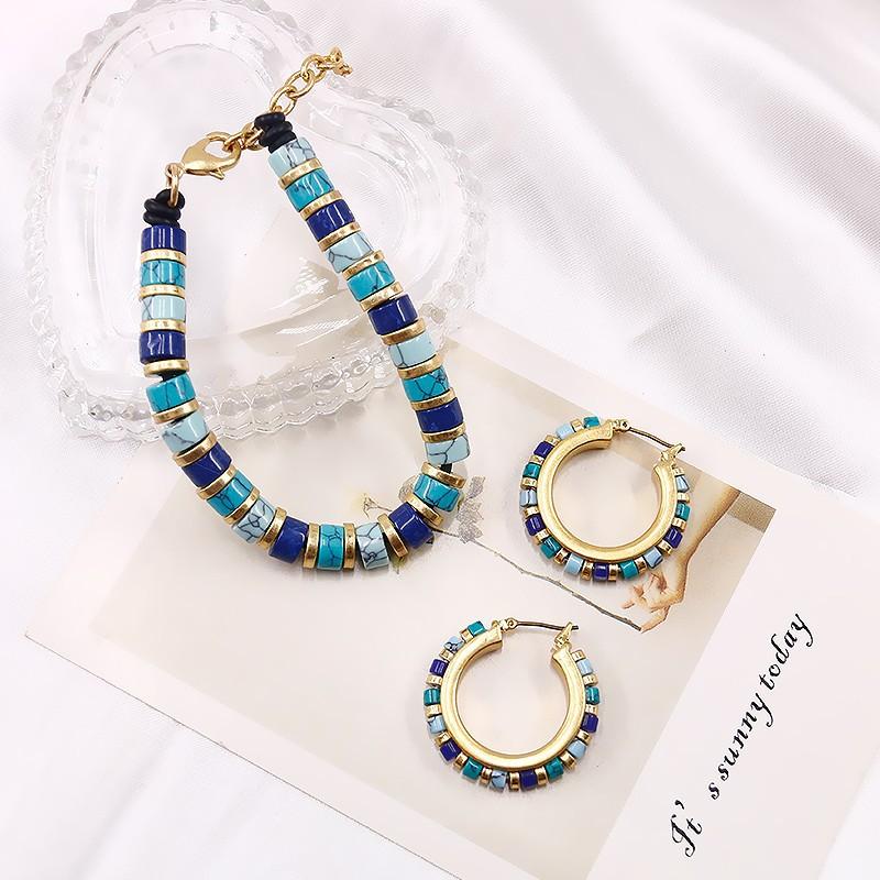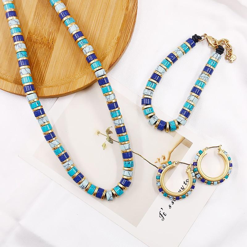 Joyería Medieval Transfronteriza Estilo Europeo y Americano Chapado en Oro Real Marcado Mma Diseño Original Collar de Turquesa Pulsera Aretes Set