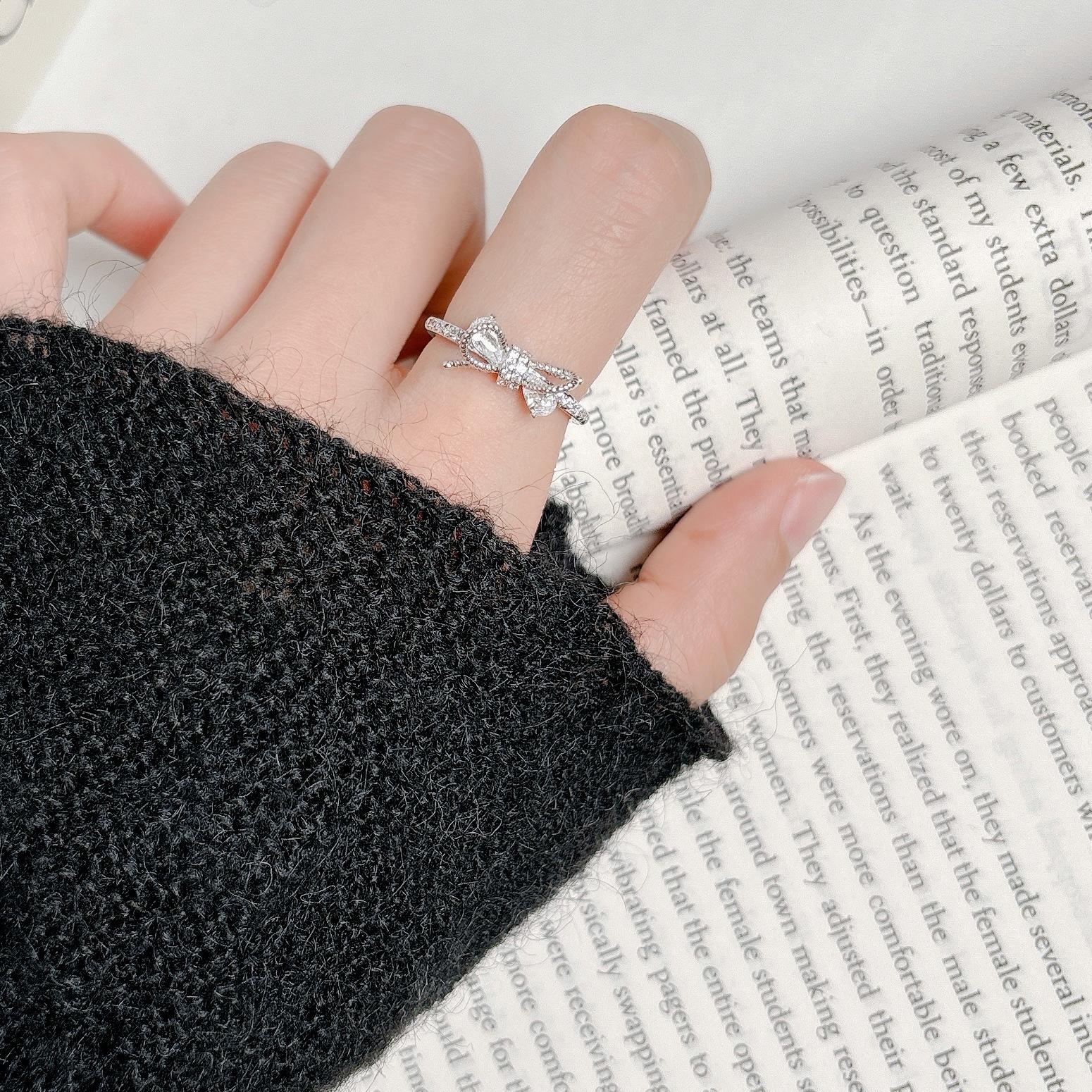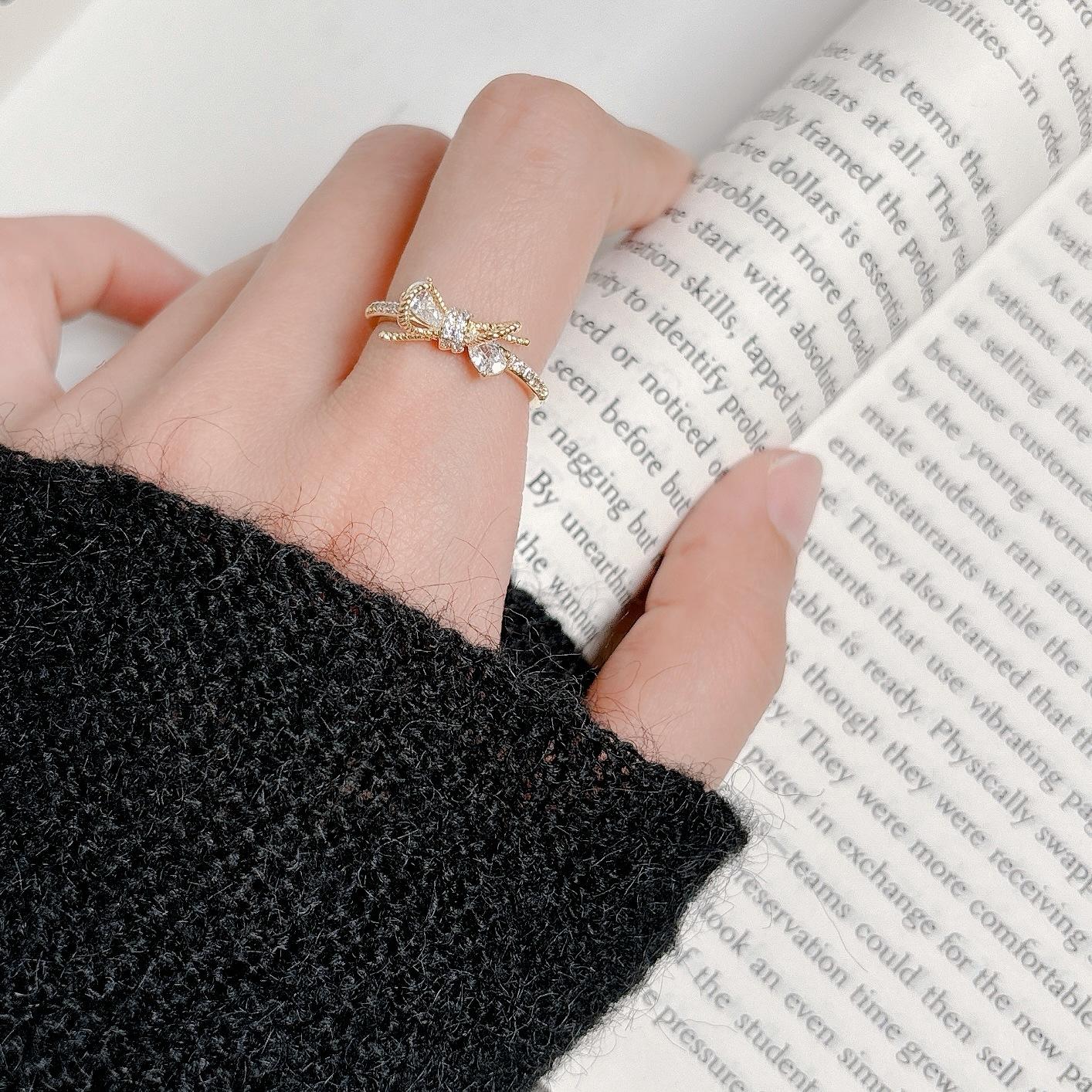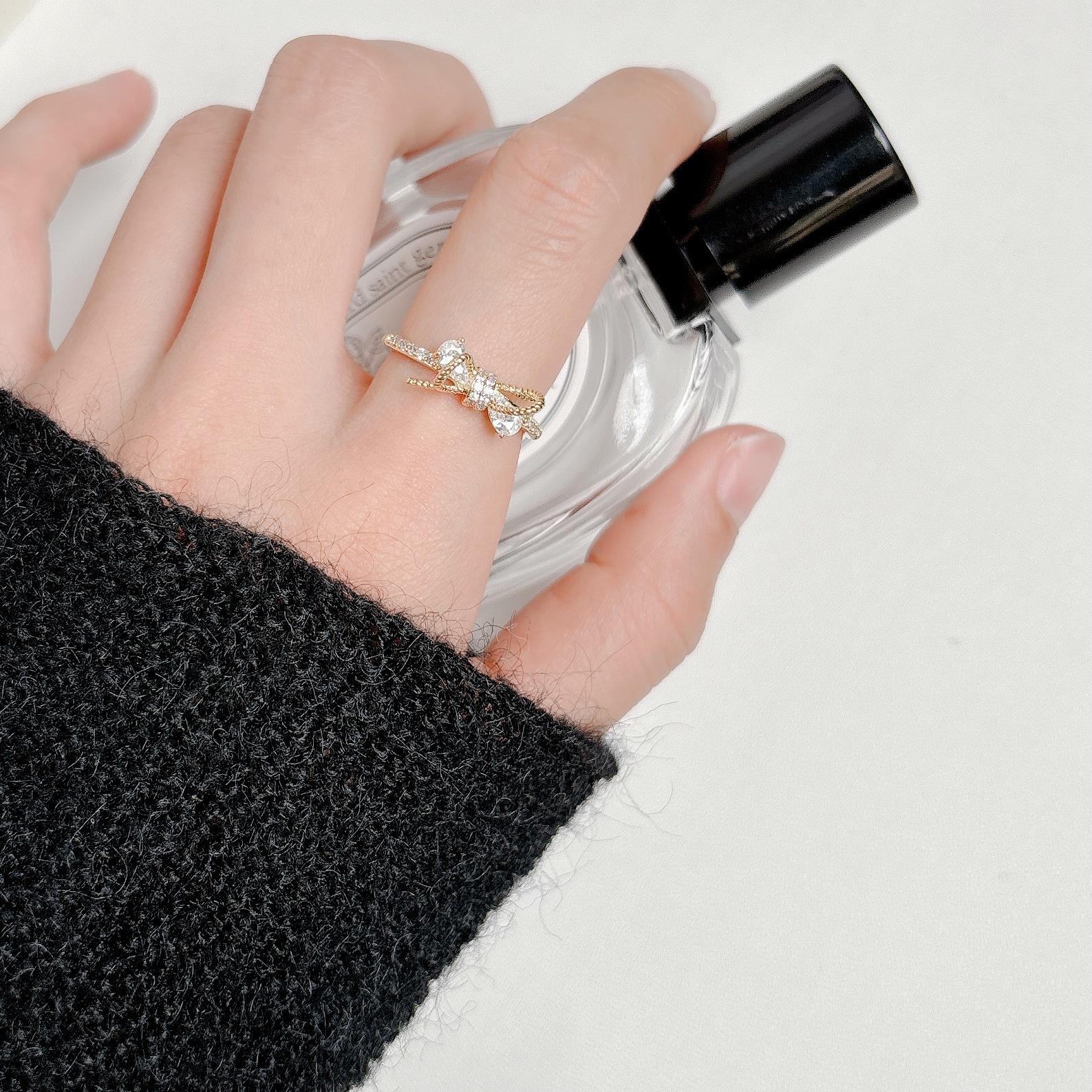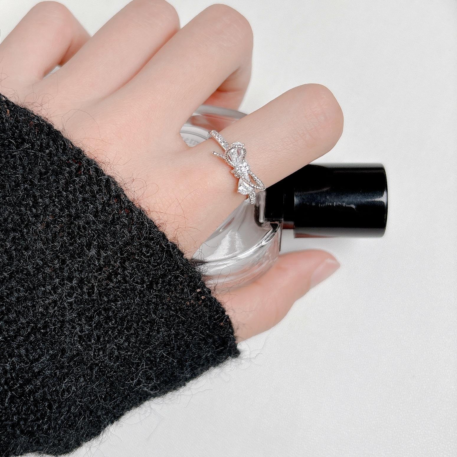 Anillo Cerrado de Circonita de Lazo Anillo de Temperamento Anillo de Nicho para Mujer Estilo Lujo Ligero de Alta Gama Moda Personalizada Anillo para Dedo Índice Venta al por Mayor