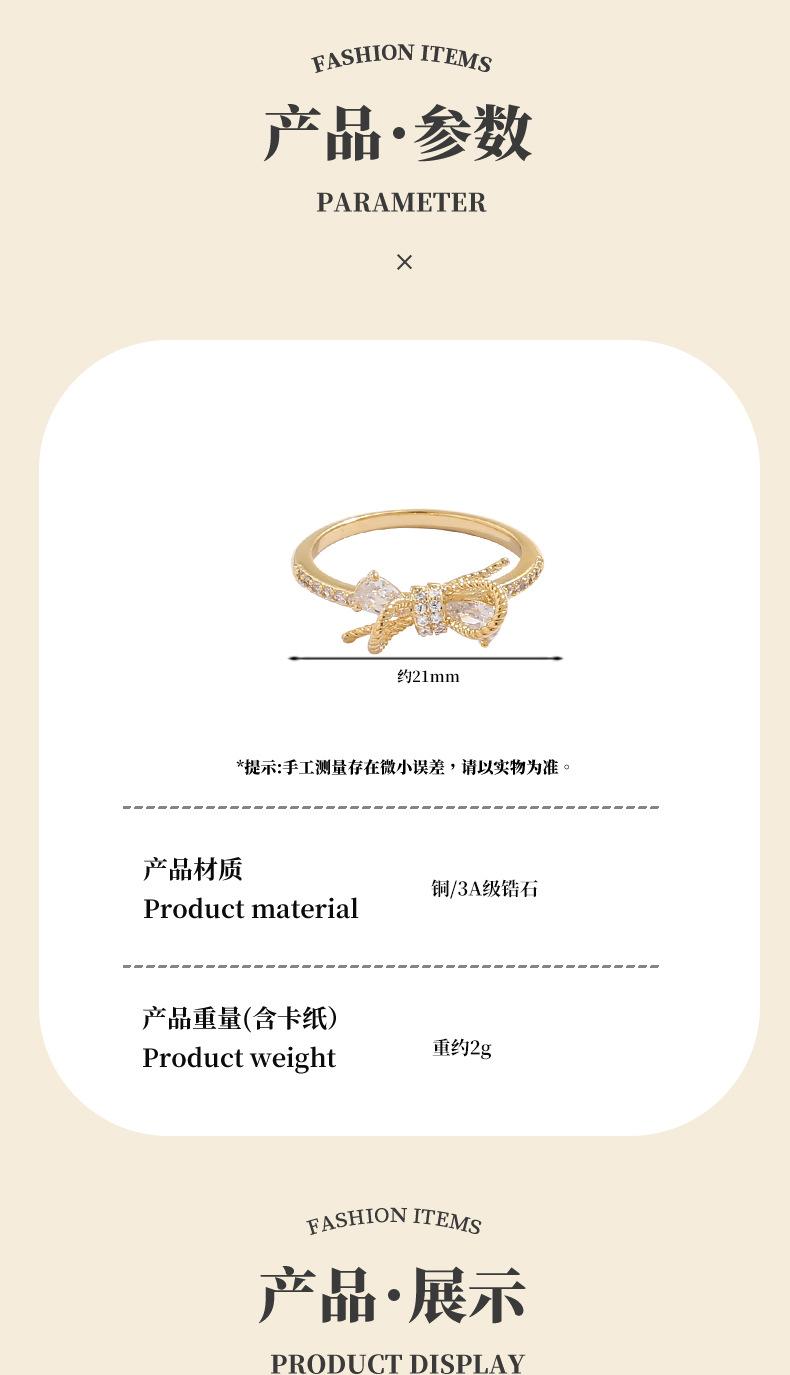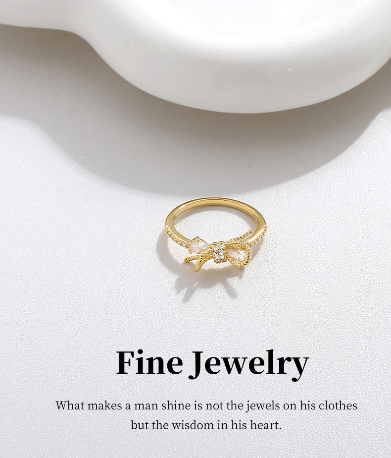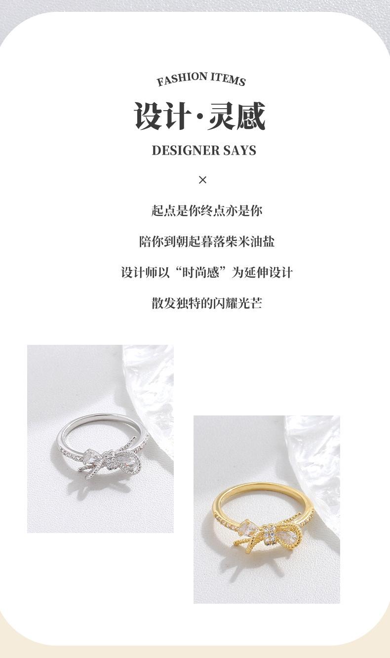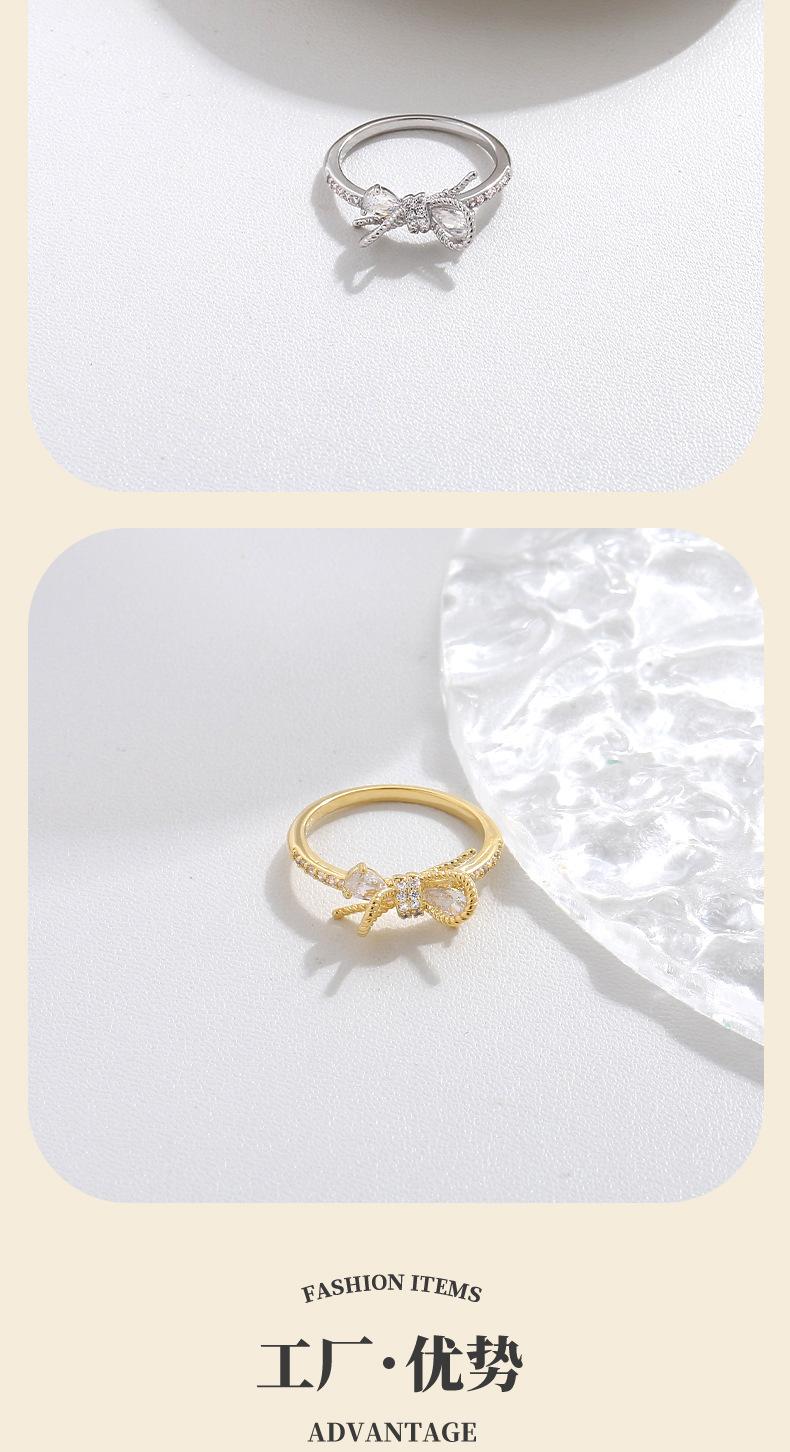 Anillo Cerrado de Circonita de Lazo Anillo de Temperamento Anillo de Nicho para Mujer Estilo Lujo Ligero de Alta Gama Moda Personalizada Anillo para Dedo Índice Venta al por Mayor