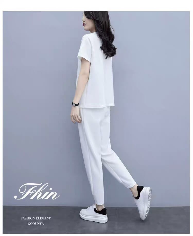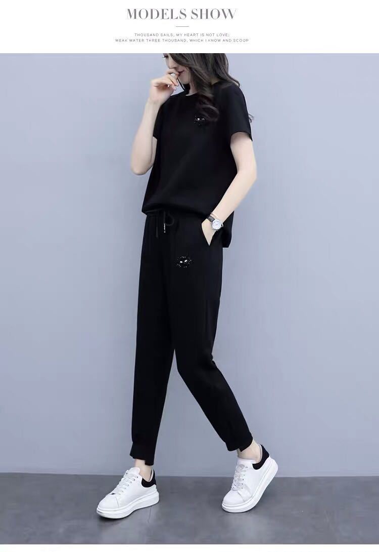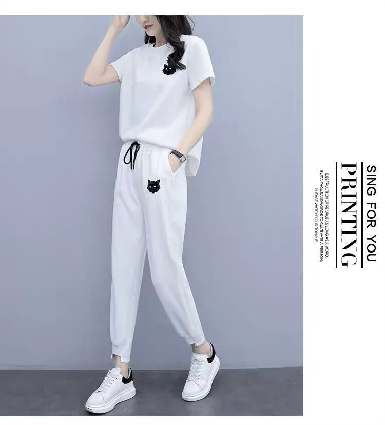 Traje deportivo informal para mujer, novedad de verano 2023, moderno, holgado, coreano, de manga corta, de dos piezas.