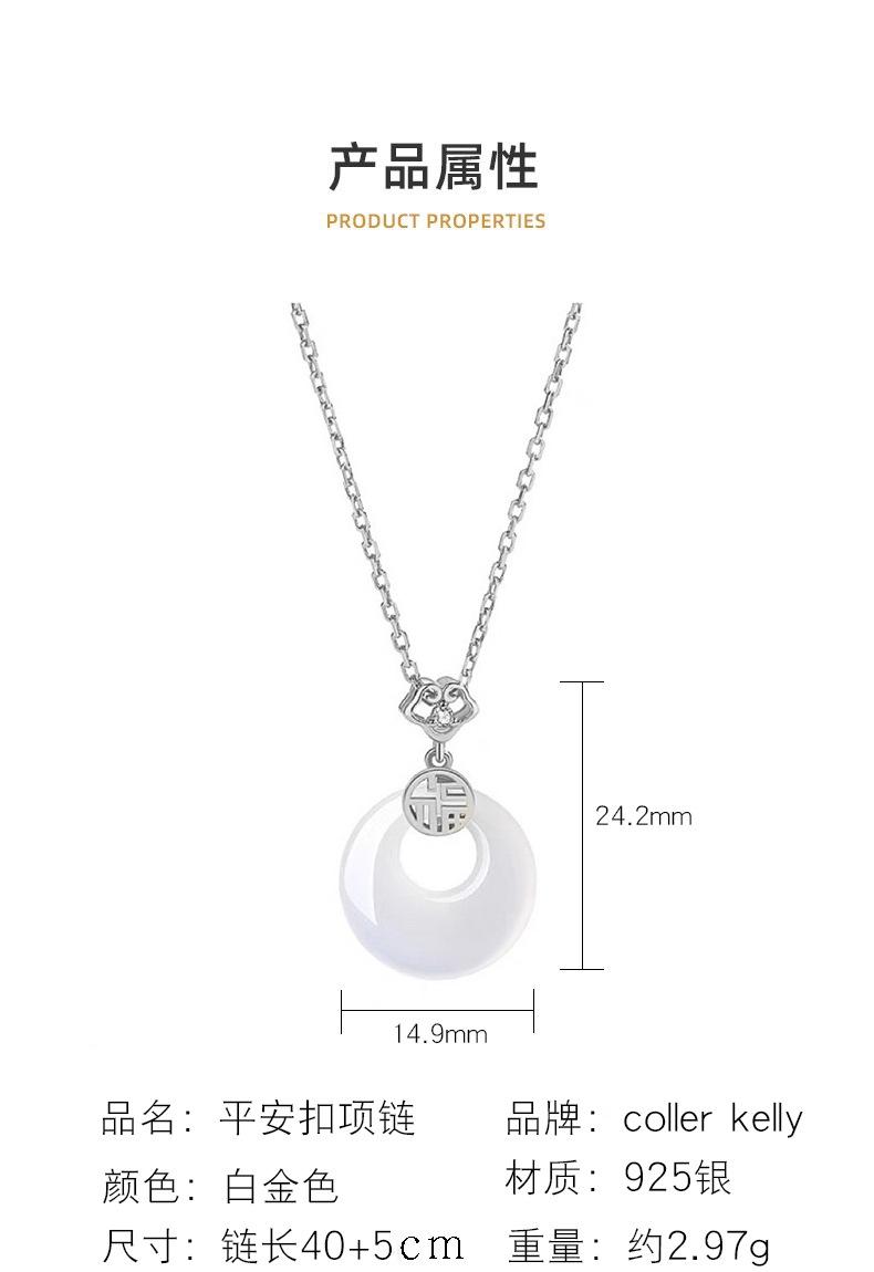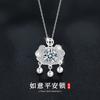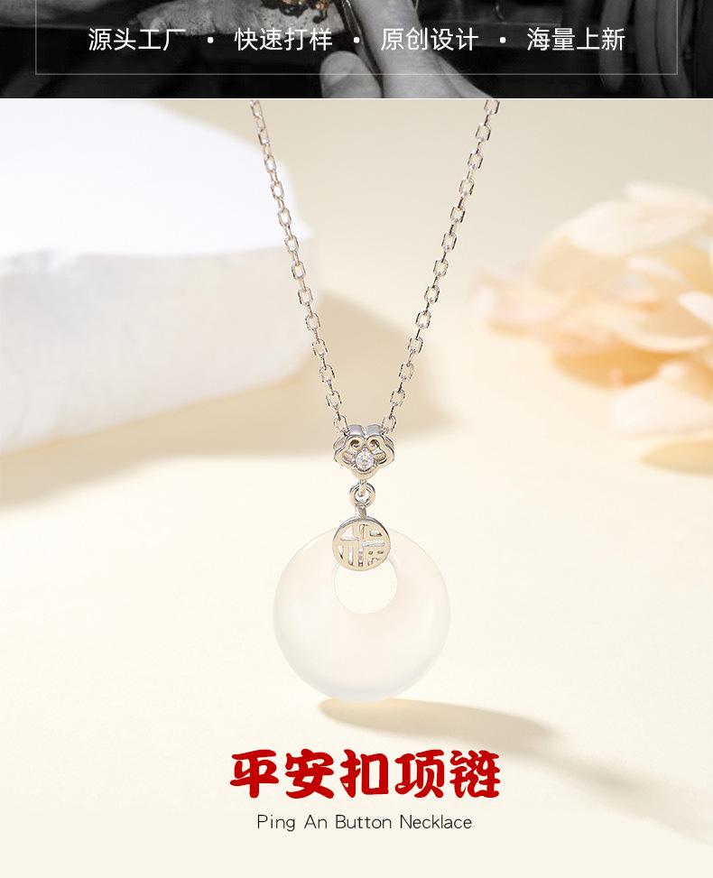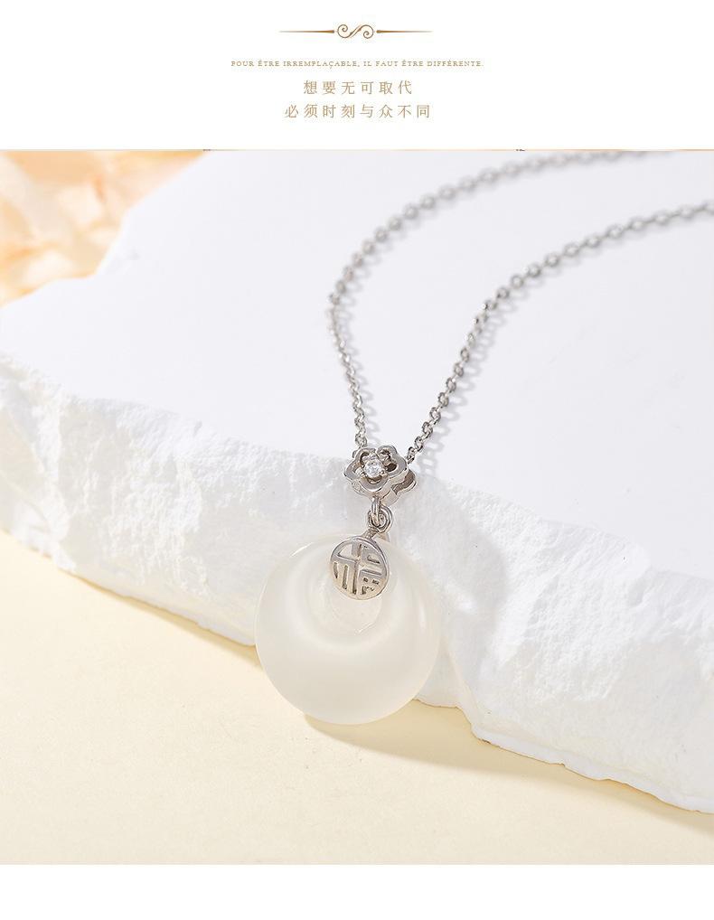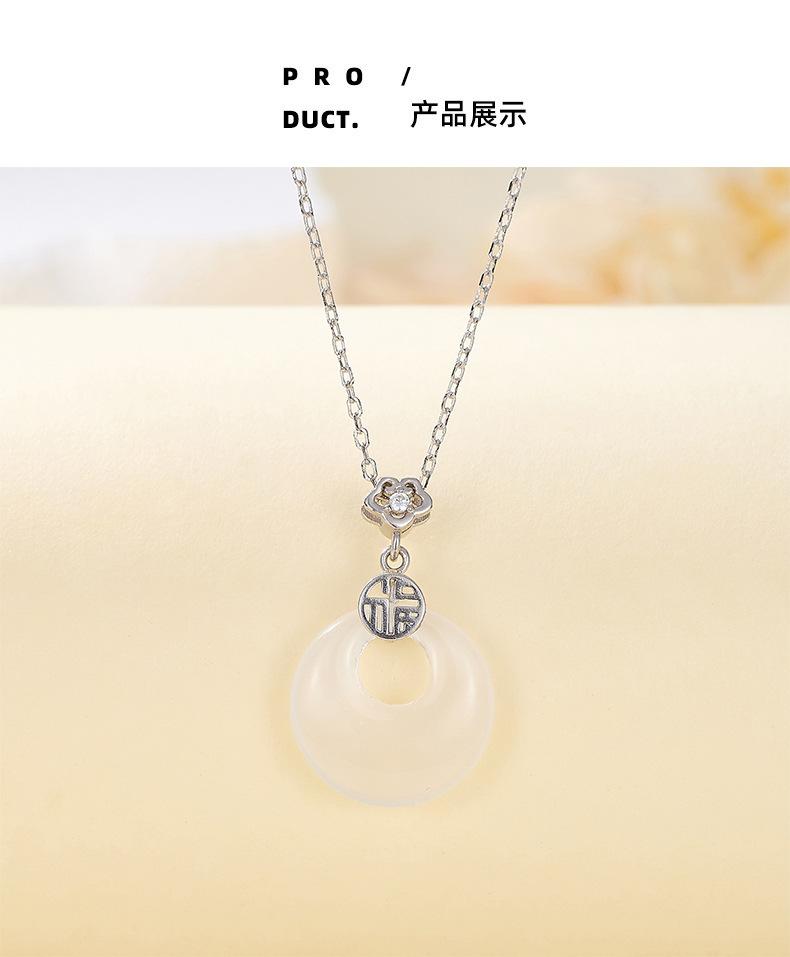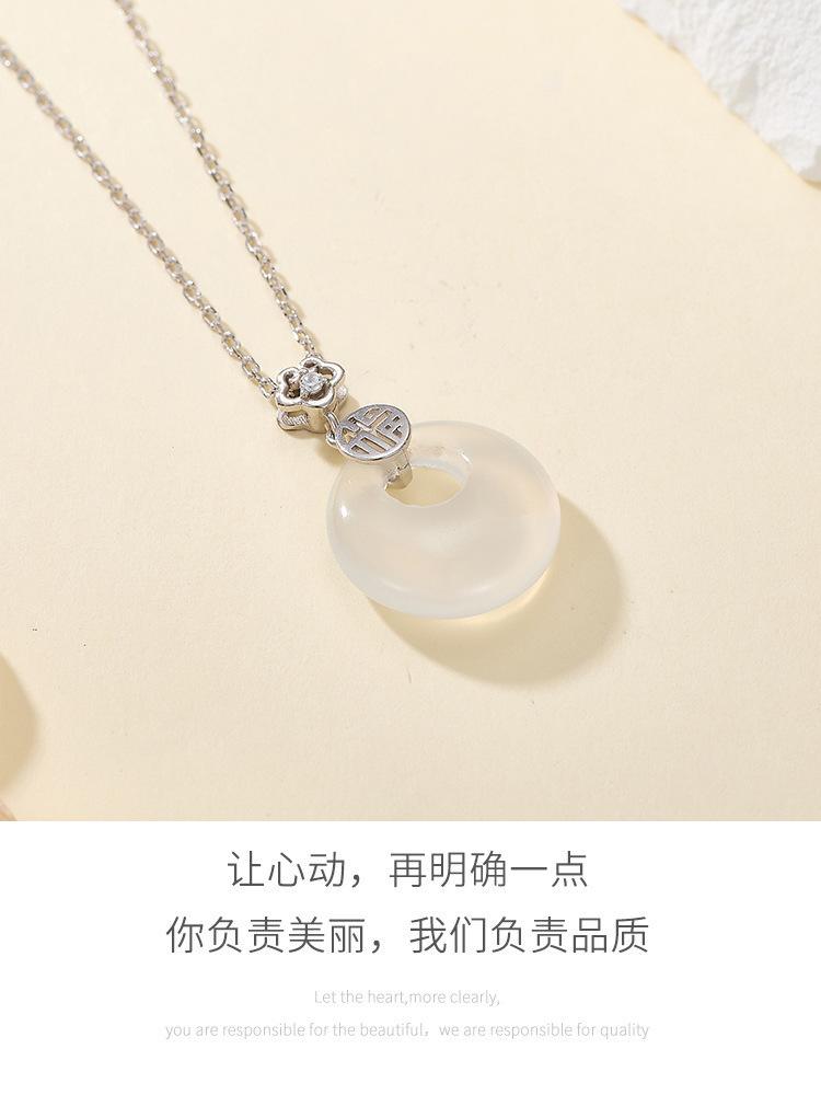 Collar con hebilla Ping An para mujer, plata S925, nuevo estilo chino, colgante de calcedonia Ruyi, accesorios de collar con personalidad de personaje Guofeng