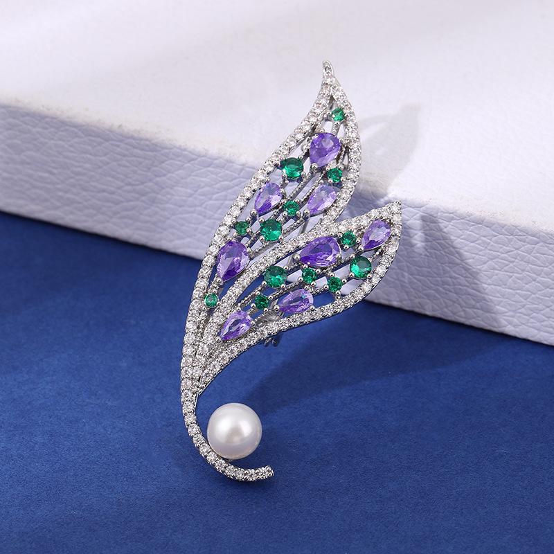 Broche de cola de pez exquisito de alta calidad para combinar con todo, lujo ligero, cobre con incrustaciones de circonita, corsage de perla de agua dulce, pin para abrigo, accesorios de moda