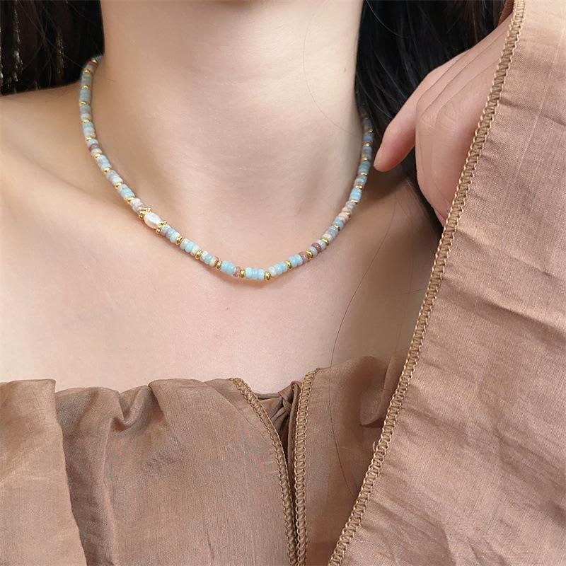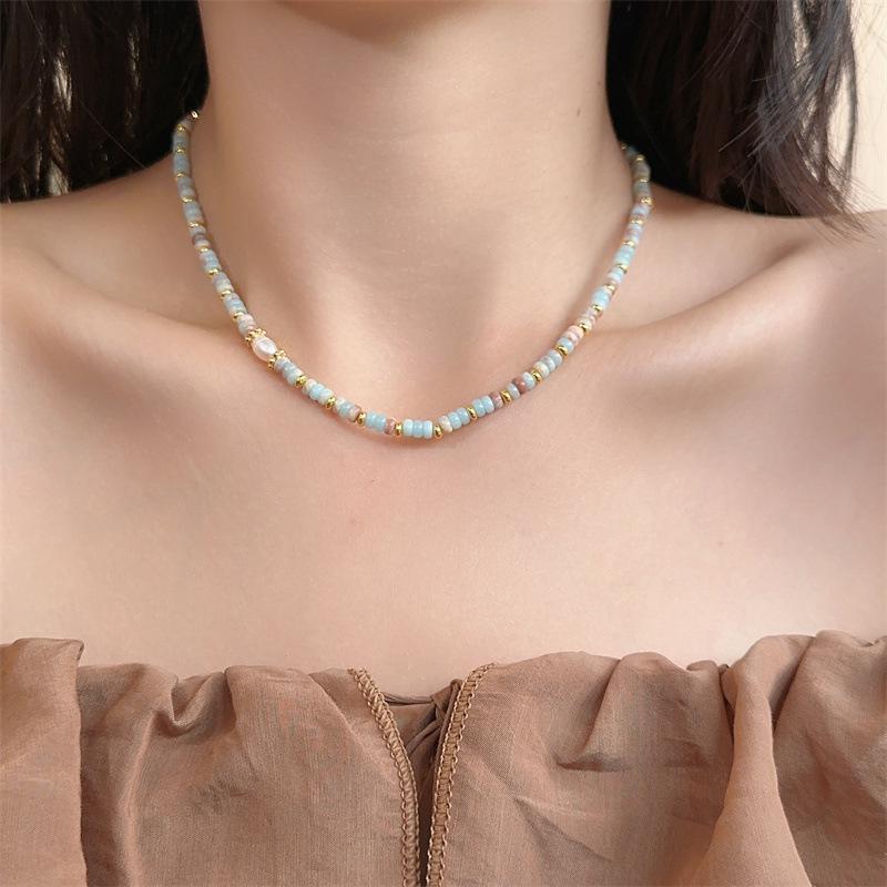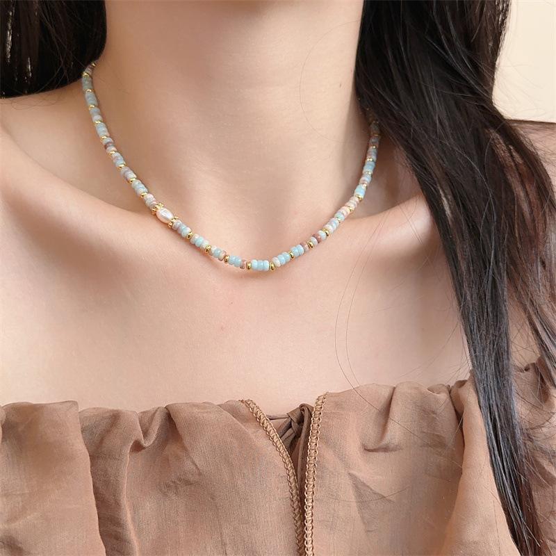 Collar de perlas para mujer, cadena de lana de nicho de lujo con cuentas coloridas y ligeras, nuevo estilo, elegante, combina con todo, accesorios de cadena para clavícula.