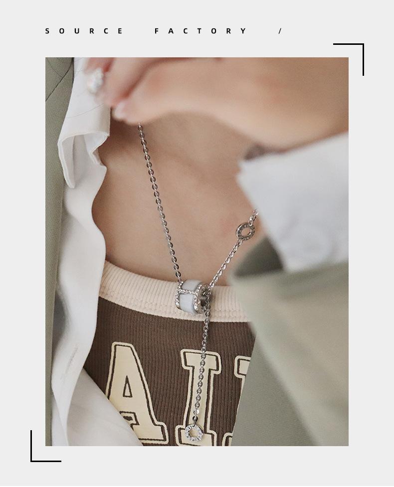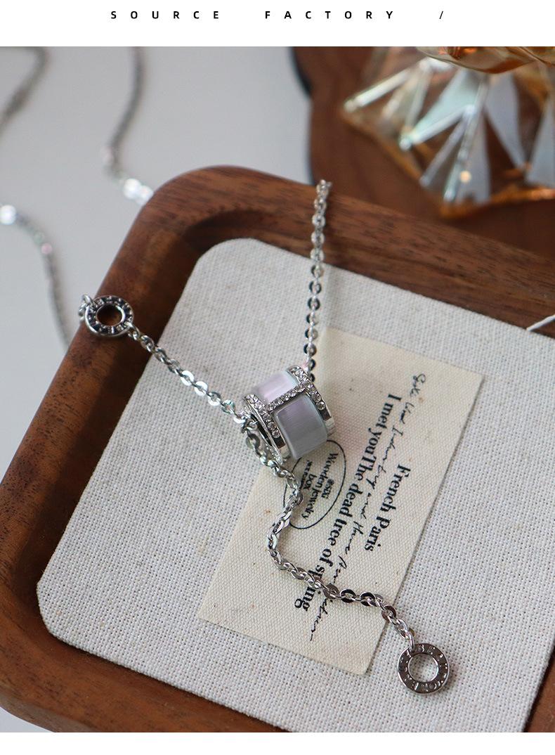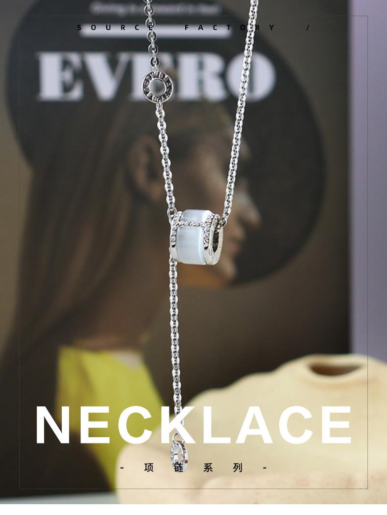 Nuevo Collar de Borla de Diamante Ojo de Gato con Rueda Simple de Moda para Mujer Diseño Nicho de Lujo Ligero Cadena Versátil para Clavícula