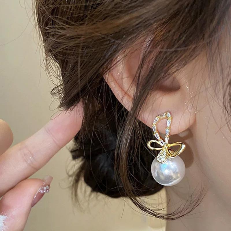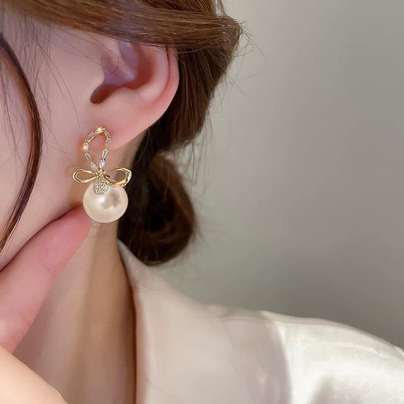 Pendientes de perlas de mariposa de lujo ligeros de Dongdaemun de Corea del Sur para mujer, con broche de plata S925, elegantes y a la moda, combinables con todo, pendientes vintage.