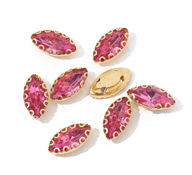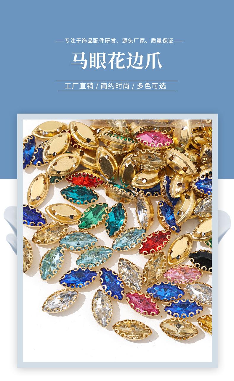 Garra de encaje de ojo de caballo de acrílico, superventas, con borde de cadena, hebilla de cristal con agujero, cosida a mano, accesorios de ropa DIY