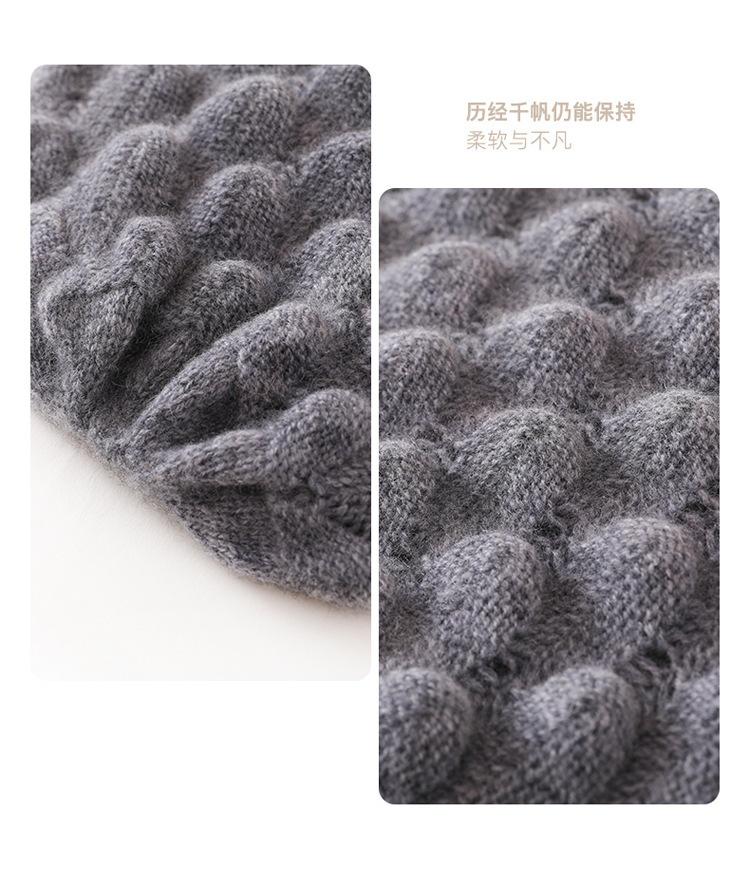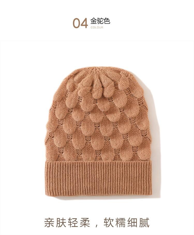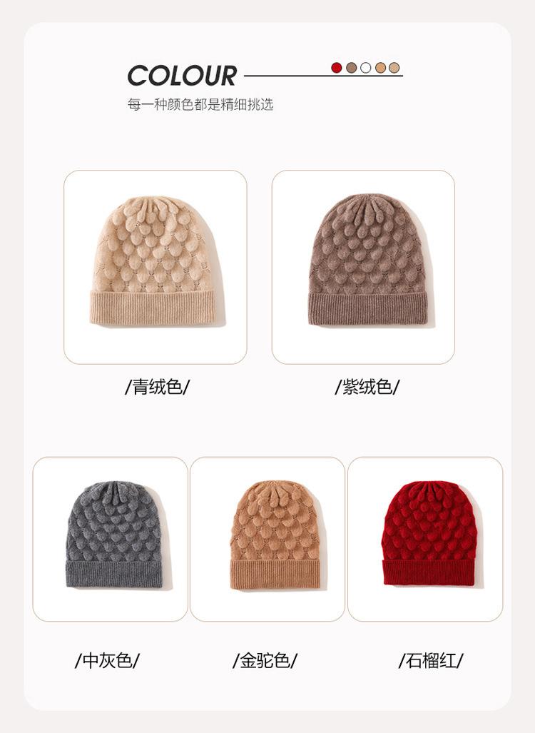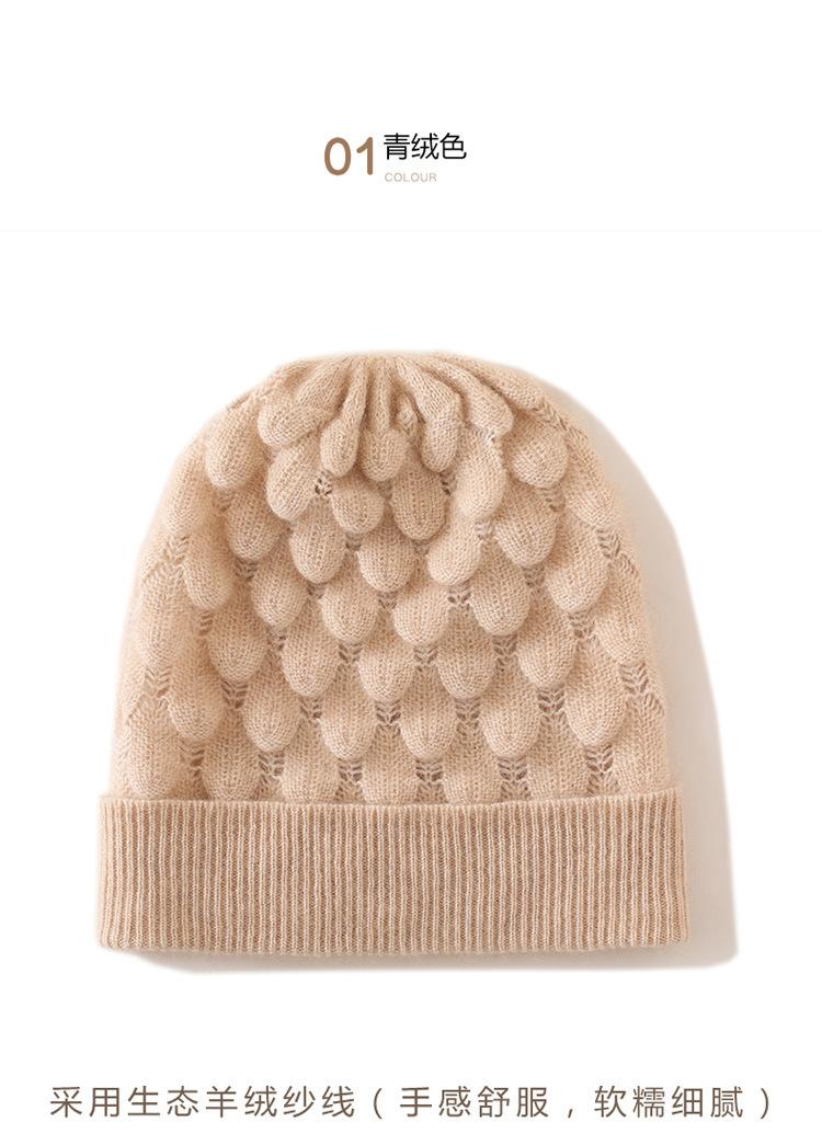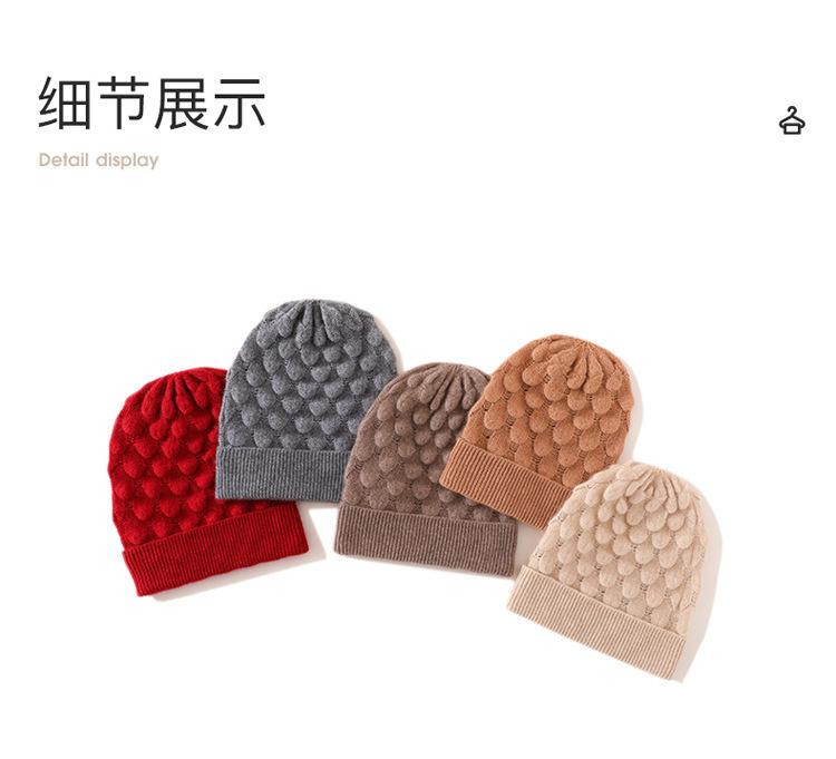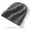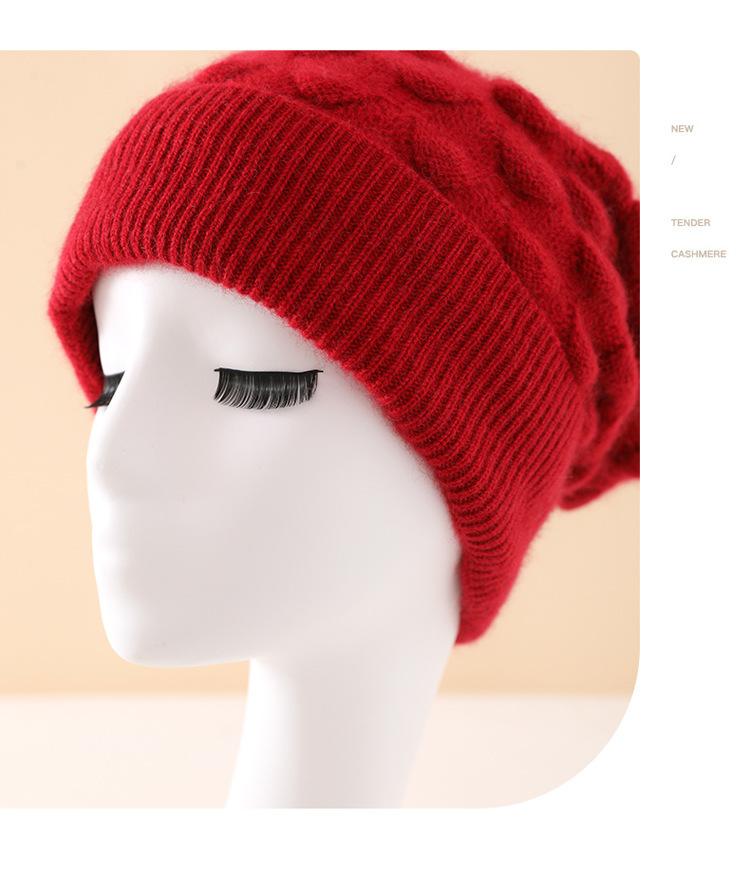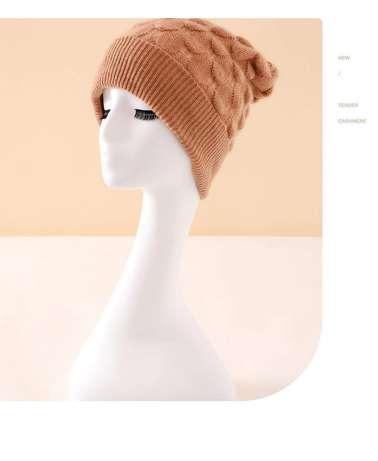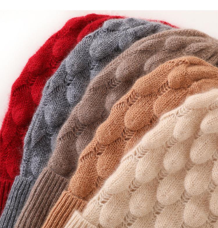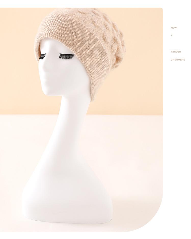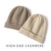 Cachemira 2024 primavera nuevo gorro de punto para mujer de alta gama de color sólido de pluma grueso cálido moda casual con vuelta