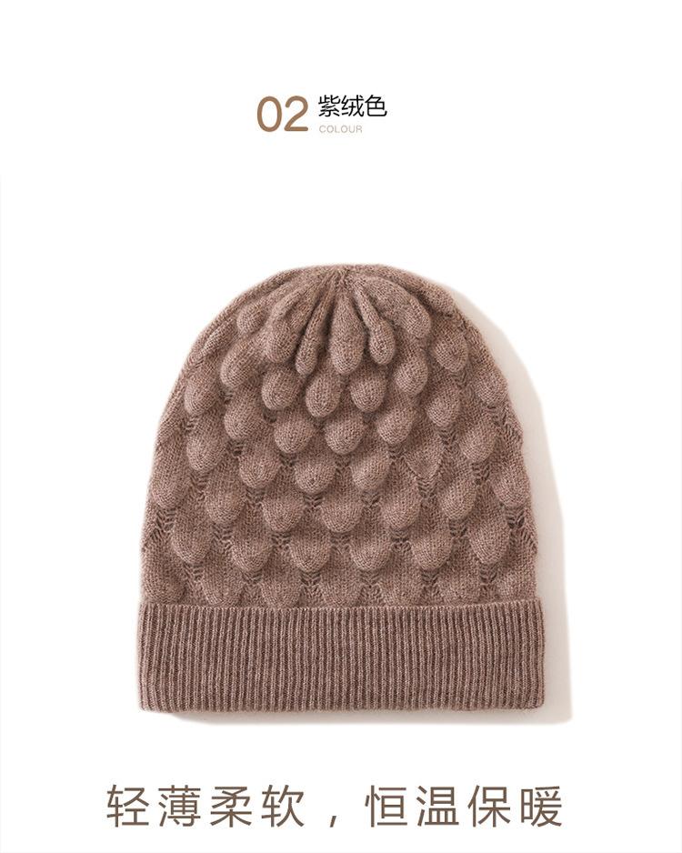 Cachemira 2025 Primavera Nuevo Sombrero de Punto de Moda Casual Cálido Grueso de Pluma de Color Sólido de Alta Gama para Mujer