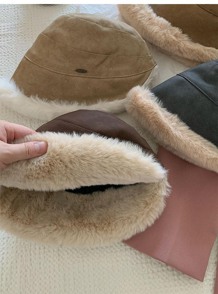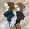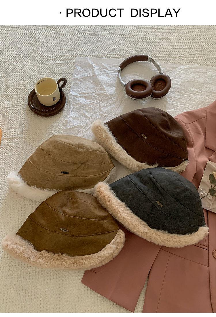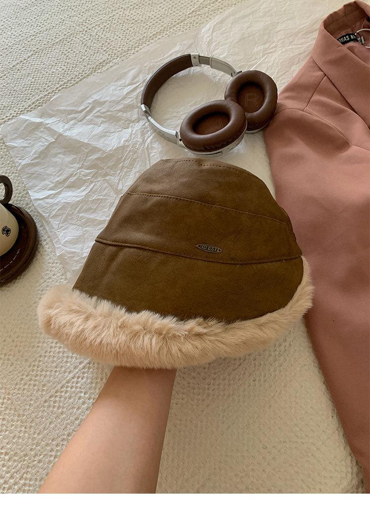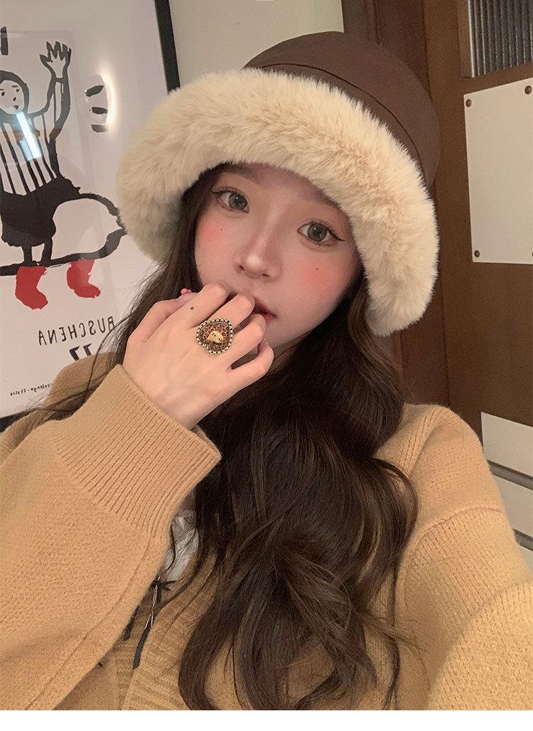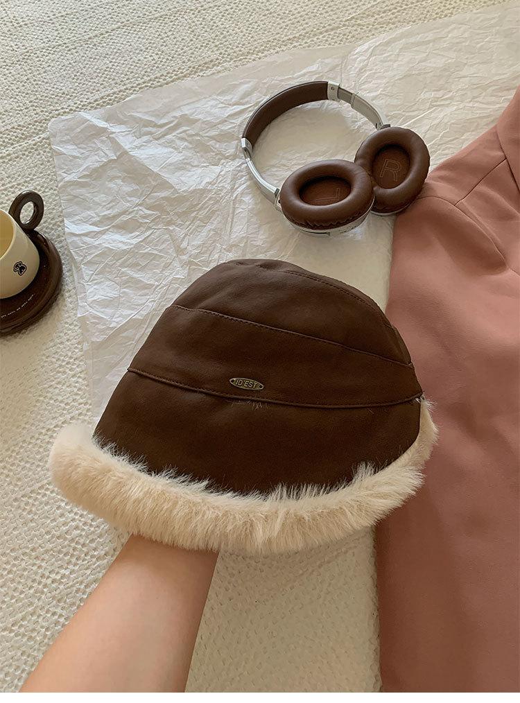 Sombrero de pescador vintage de cuero para otoño e invierno para mujer, forrado de polar, grueso, felpa, protección para las orejas, con visera, a prueba de frío del noreste, estilo mongol Lei Feng