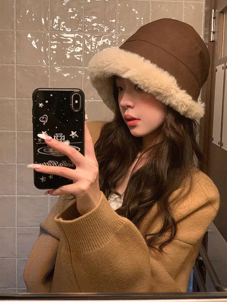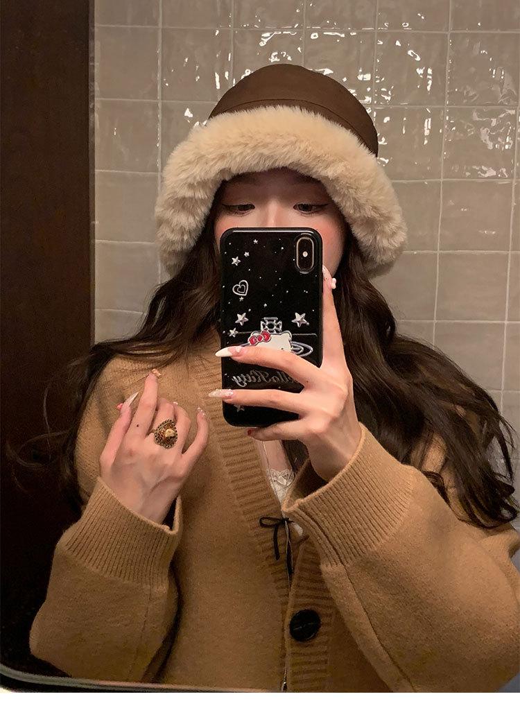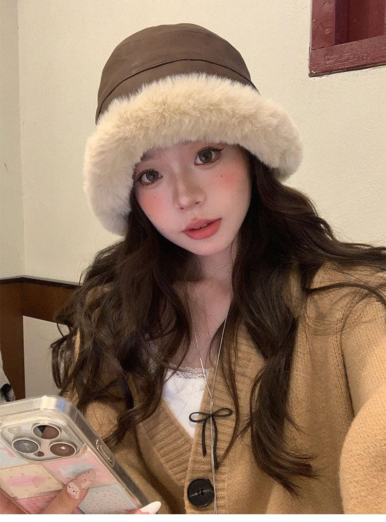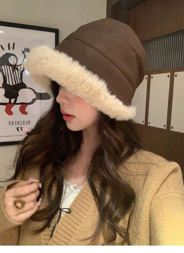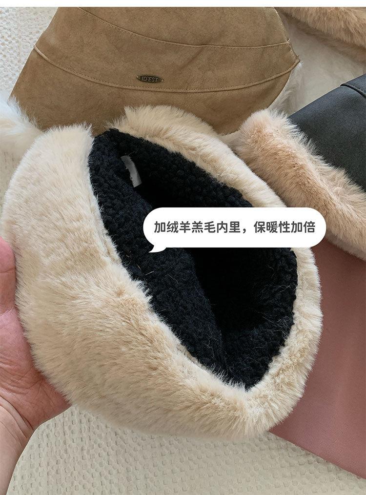 Sombrero de pescador vintage de cuero para otoño e invierno para mujer, forrado de polar, grueso, felpa, protección para las orejas, con visera, a prueba de frío del noreste, estilo mongol Lei Feng