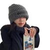Gorro de lana negro suelto para mujer, de otoño e invierno, para el frío, moderno, de punto cálido y combinable.