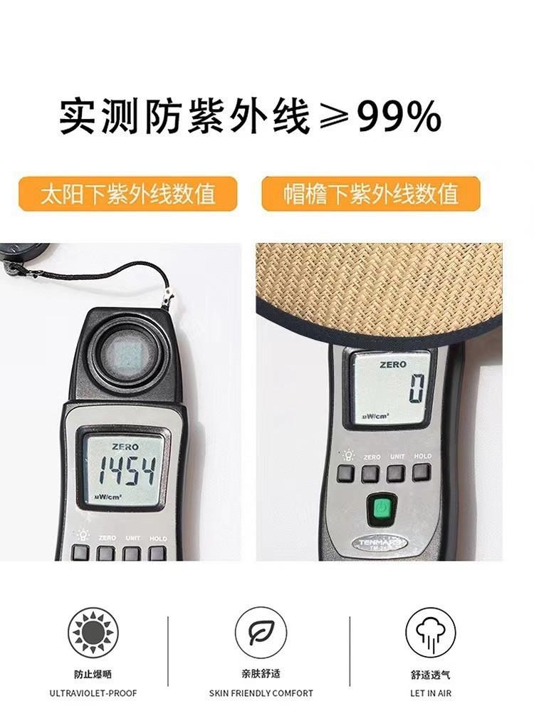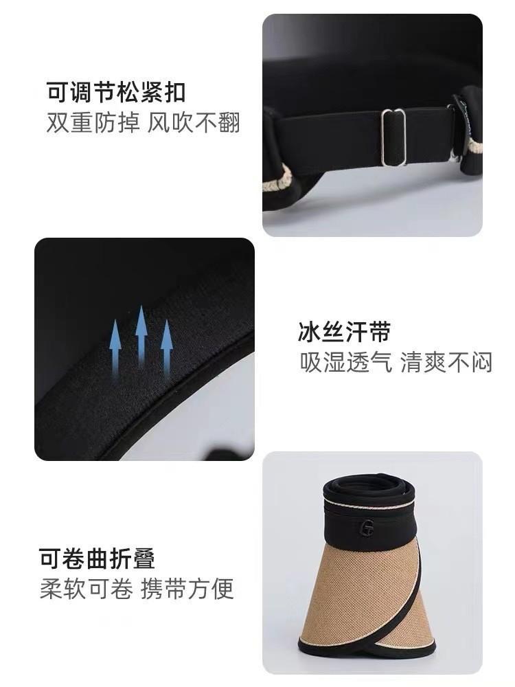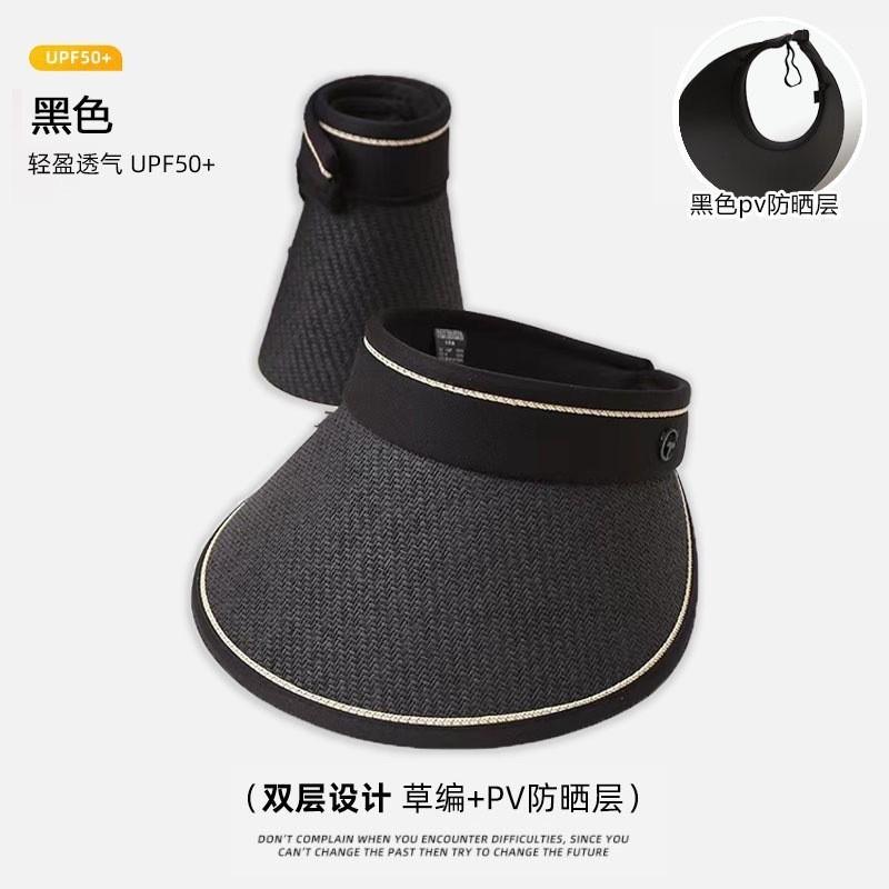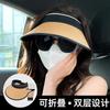 Sombrero de verano vacío para mujer con ala ancha, de paja, para ciclismo, anti-UV, se puede guardar.