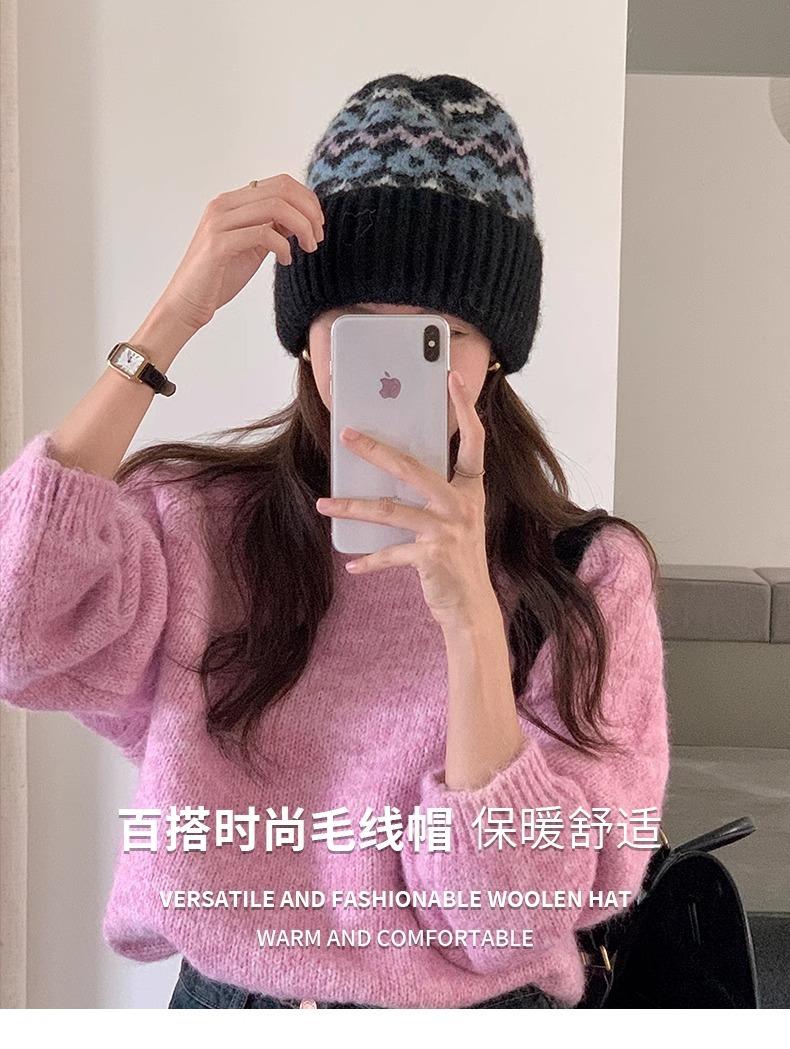 Gorro de estilo coreano para mujer en otoño e invierno, gorro de lana versátil, gorro de punto, cálido y bonito para estudiantes de invierno, color puro, engrosado para evitar el frío.