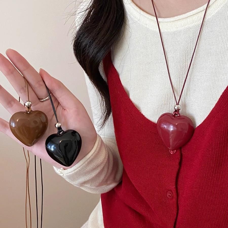 Collar con colgante de amor con purpurina retro del mismo estilo Fever para mujer, cadena de suéter larga de alta gama para otoño e invierno, accesorios para el cuello