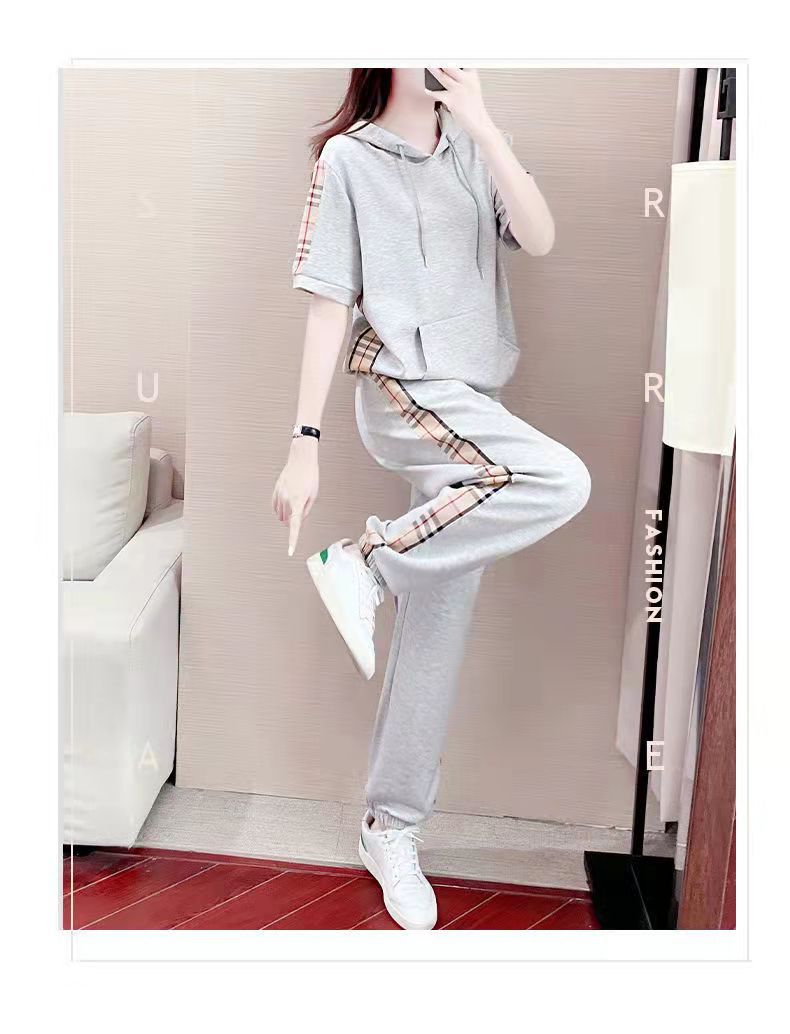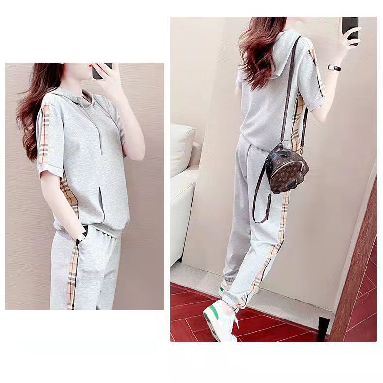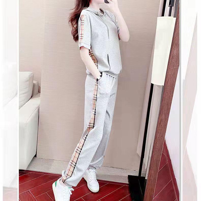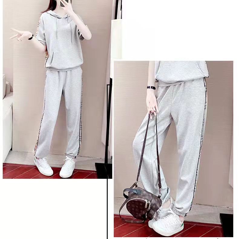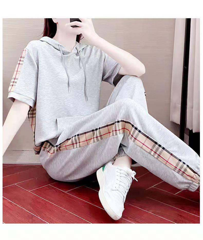 Suéter deportivo holgado de manga corta con capucha para mujer, traje deportivo elegante de verano de dos piezas, informal y antiedad, novedad de 2023