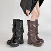 Botas de Suela Gruesa Estilo Británico para Mujer 2024 Nuevas Invierno Pero Botas Largas Hasta la Rodilla Versátiles Botas de Caballero Pequeñas y Delgadas