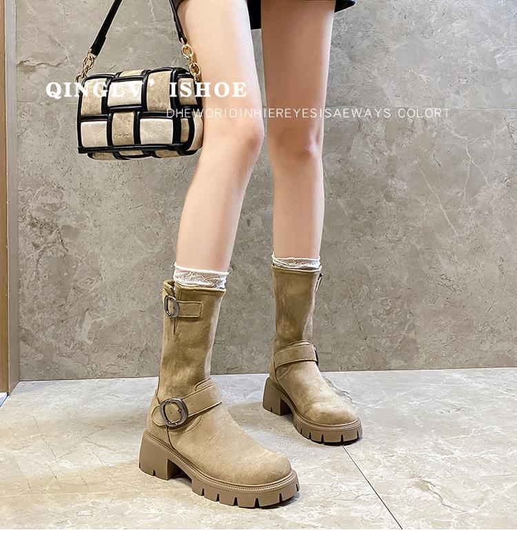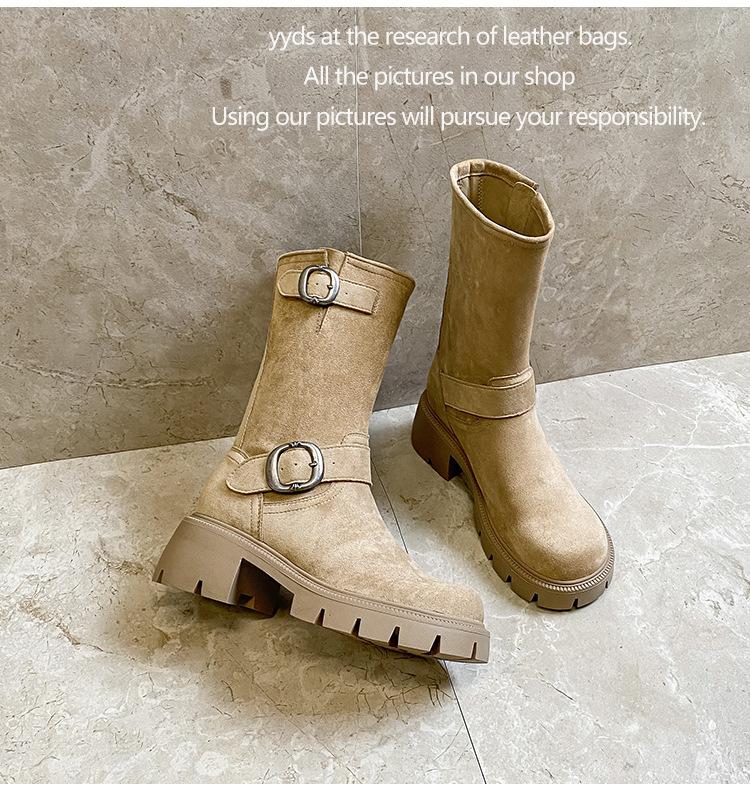 Botas Martin de suela gruesa Grape Mom para mujer, otoño e invierno 2024, nuevas botas vaqueras retro occidentales, botas de caballero de caña media