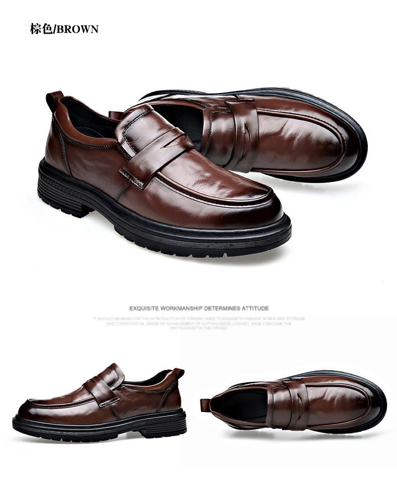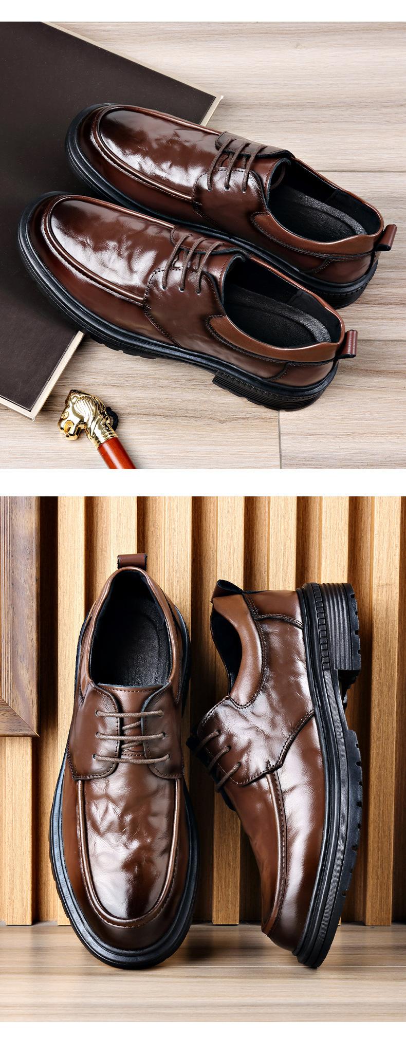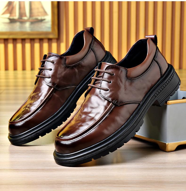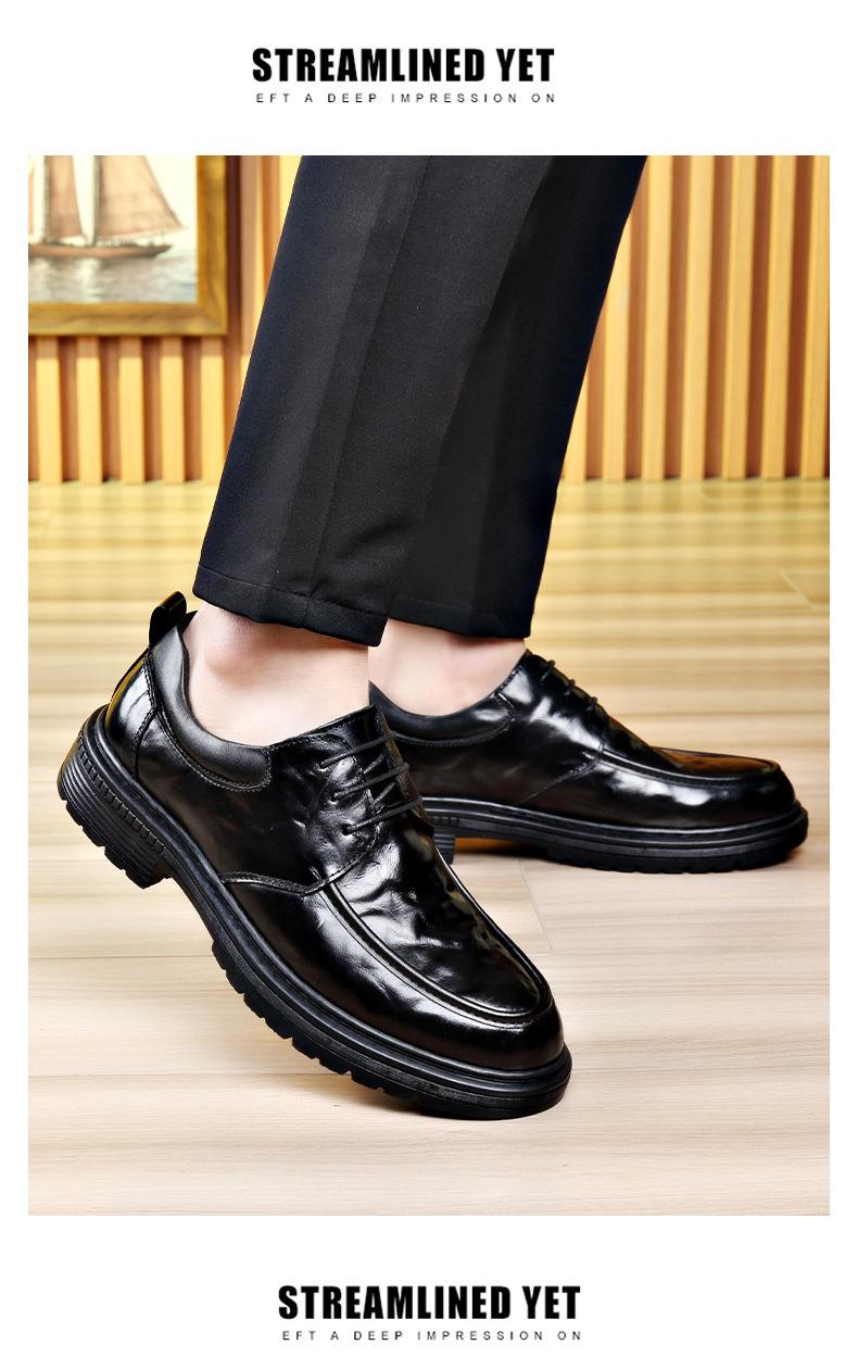 Zapatos de cuero con punta grande para hombre, calzado informal de negocios, ligero y de lujo, de suela gruesa, estilo británico, para primavera y otoño