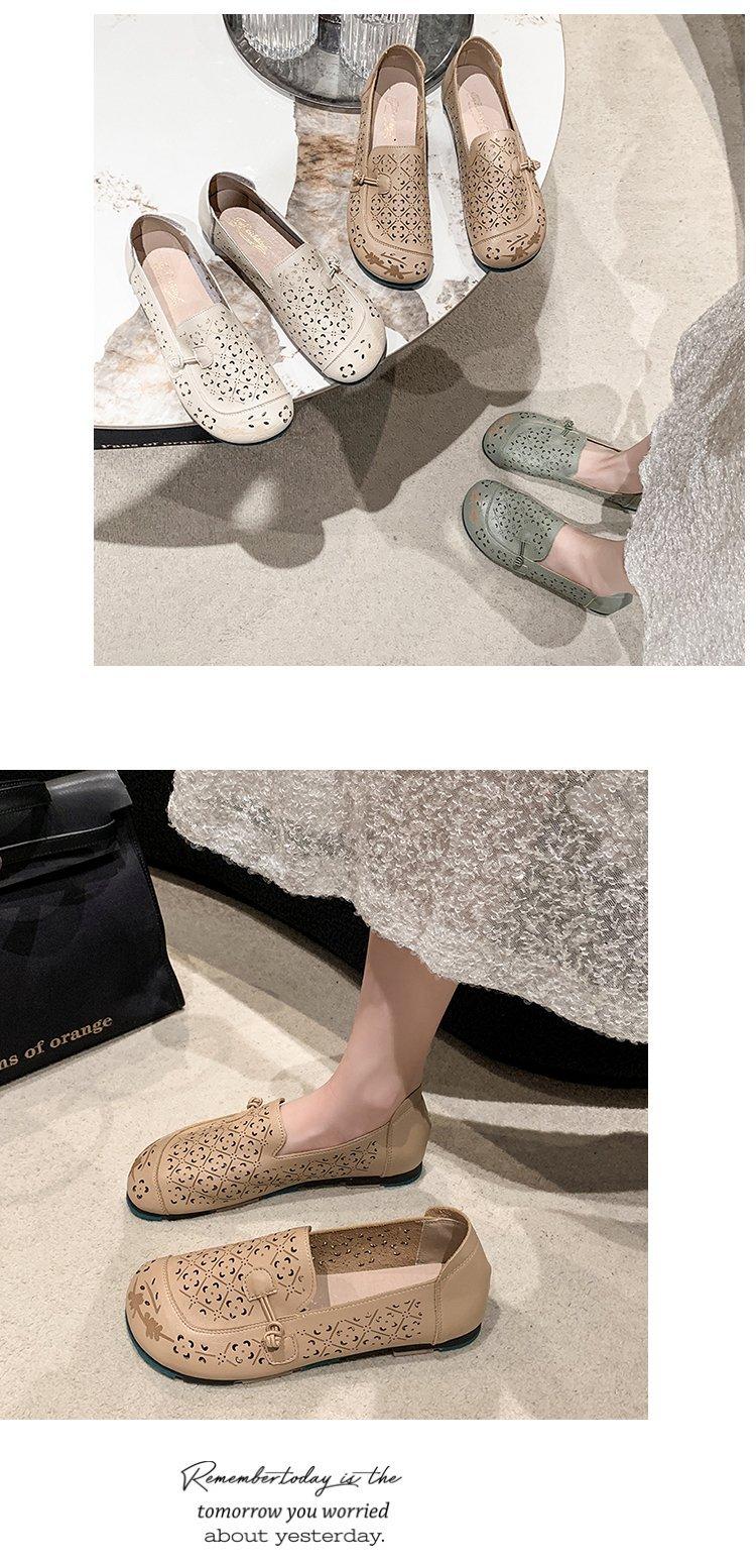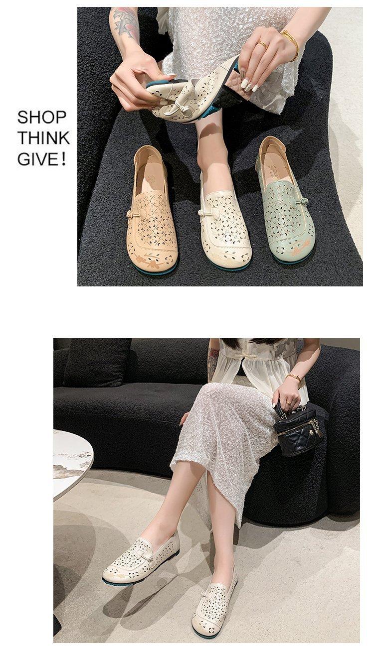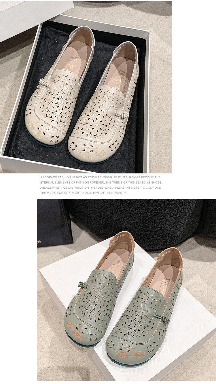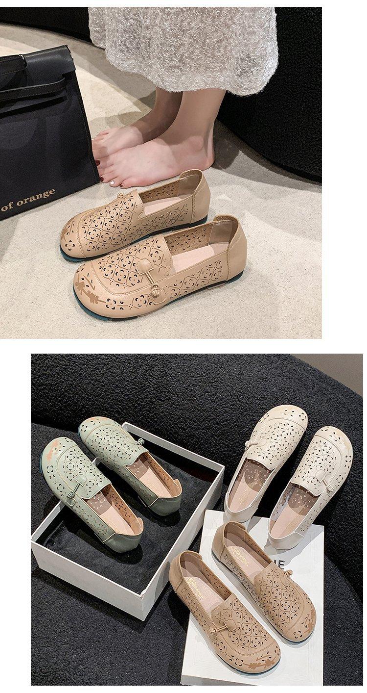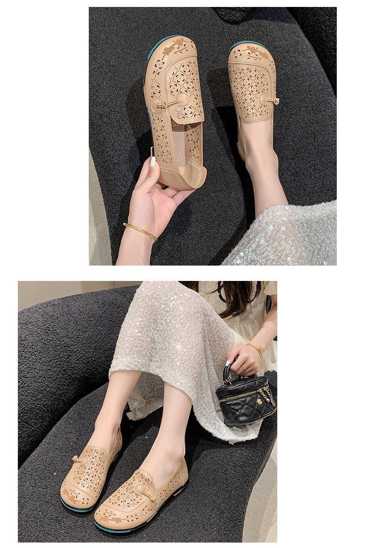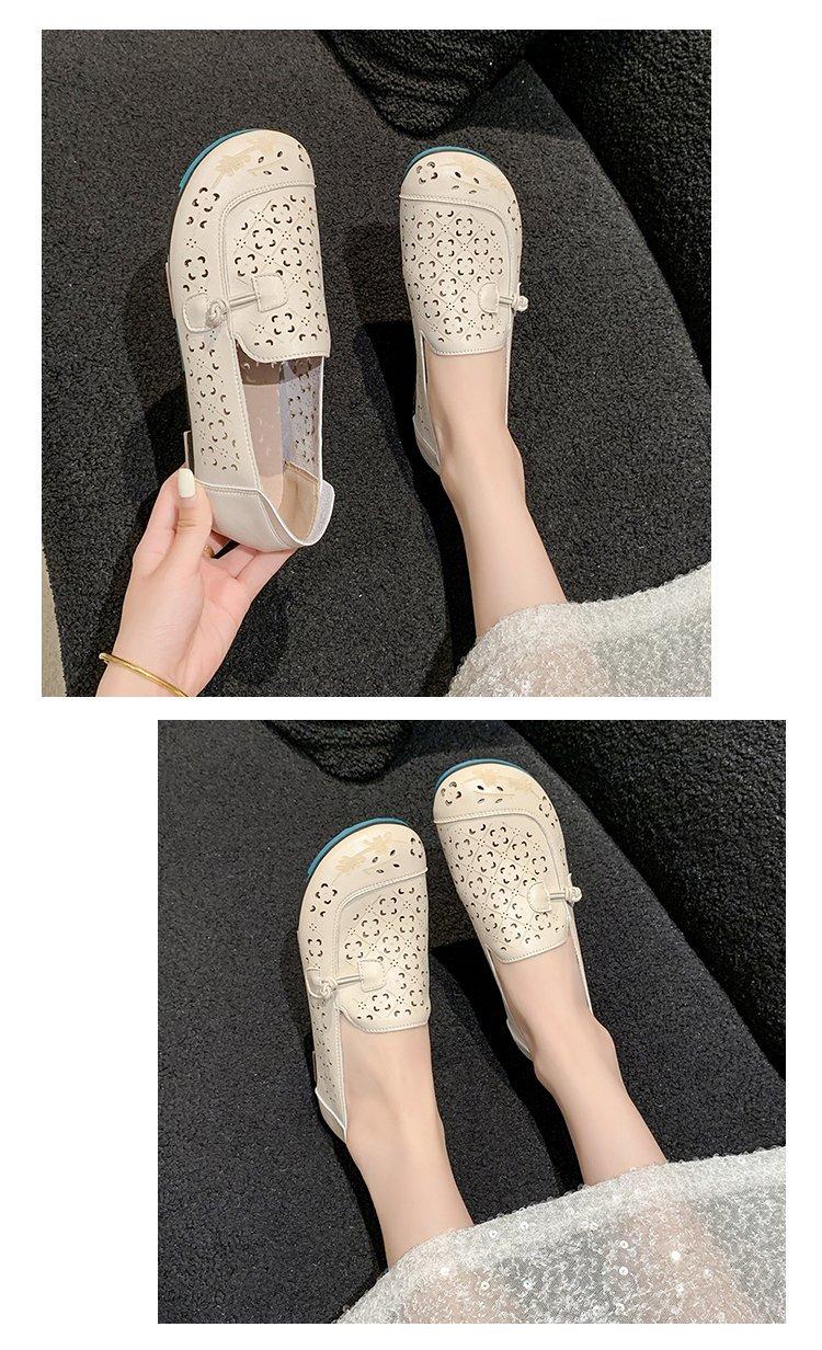 Sandalias Zapatos de Verano para Mamá Suela Suave Zapatos Huecos de Cuero para Mediana Edad Zapatos para Mujeres de Mediana Edad y Ancianas Zuecos de Suela Plana
