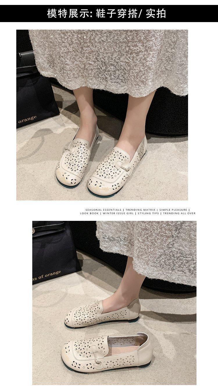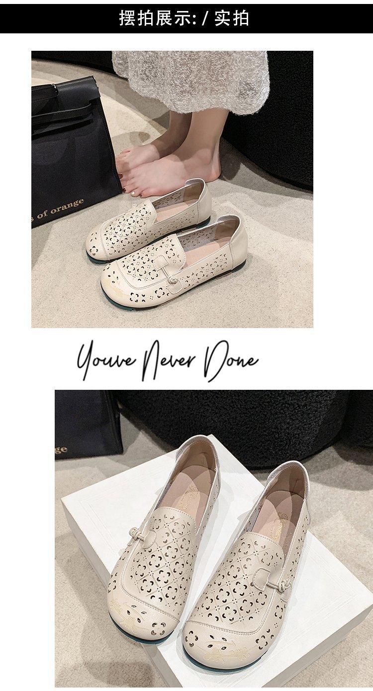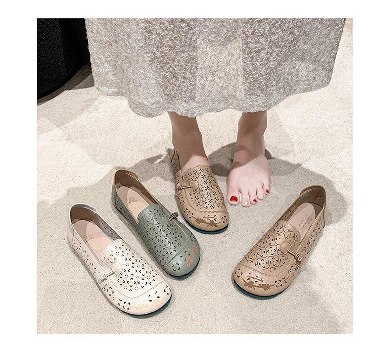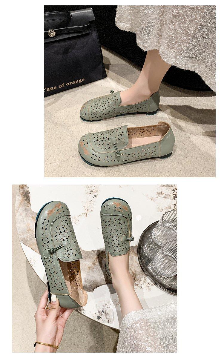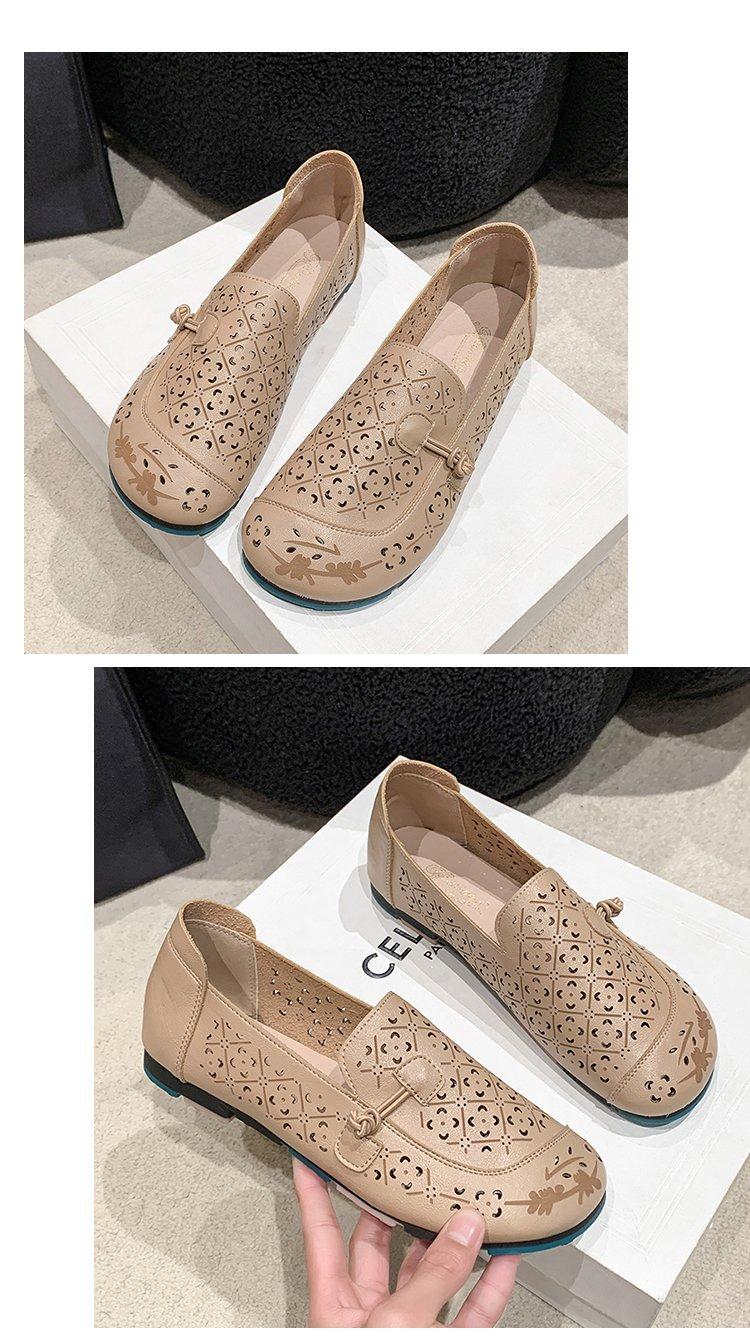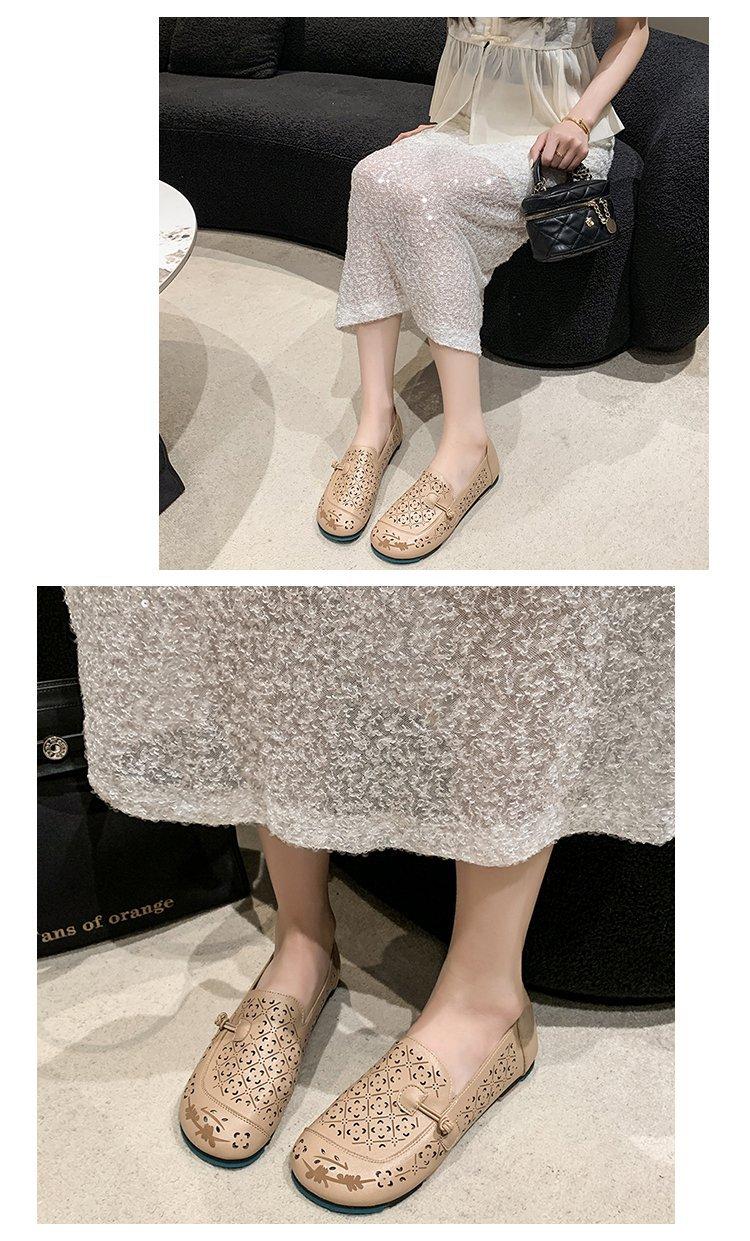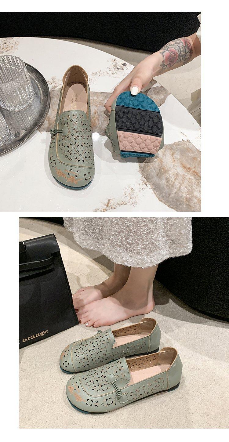 Sandalias Zapatos de Verano para Mamá Suela Suave Zapatos Huecos de Cuero para Mediana Edad Zapatos para Mujeres de Mediana Edad y Ancianas Zuecos de Suela Plana