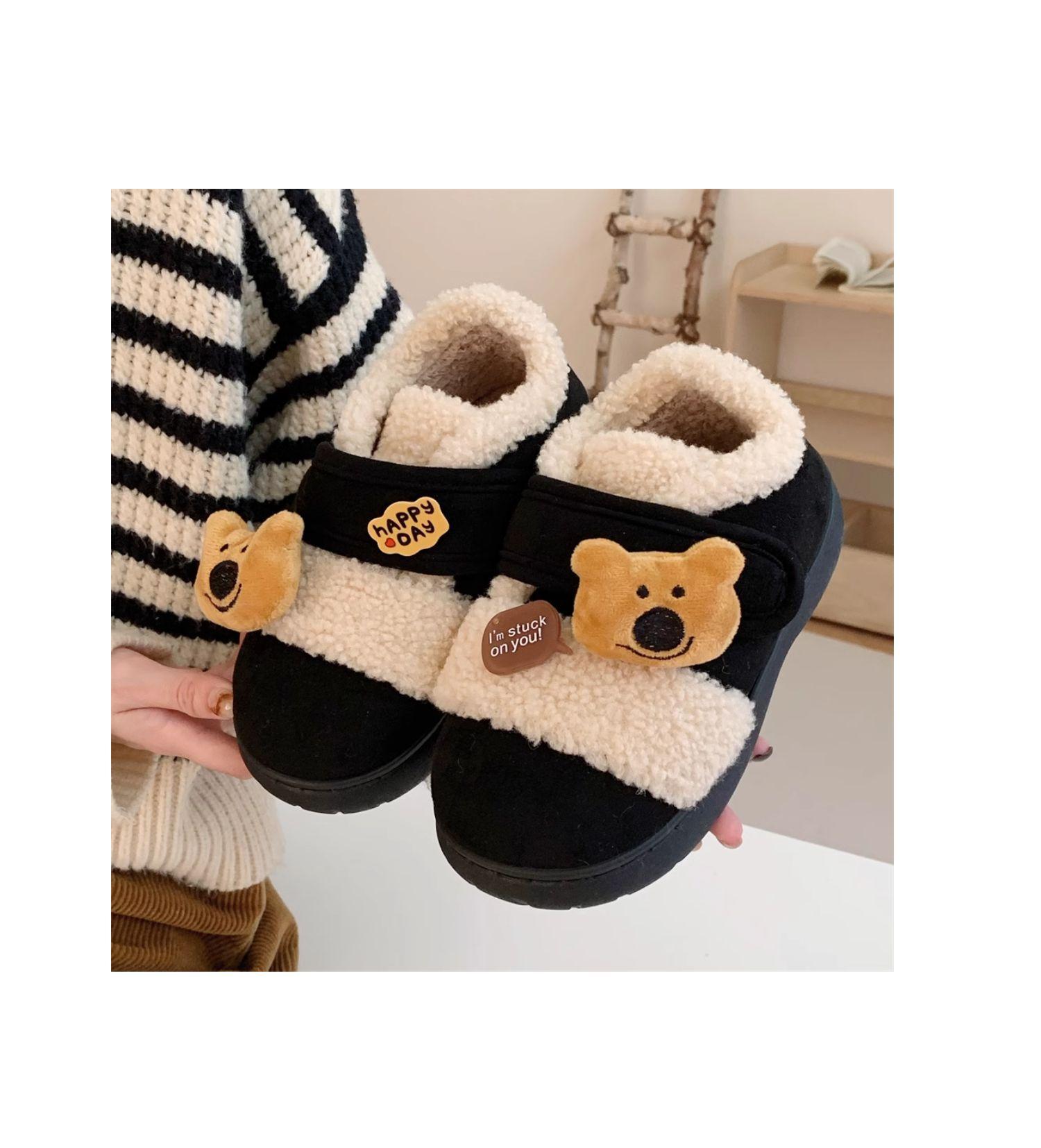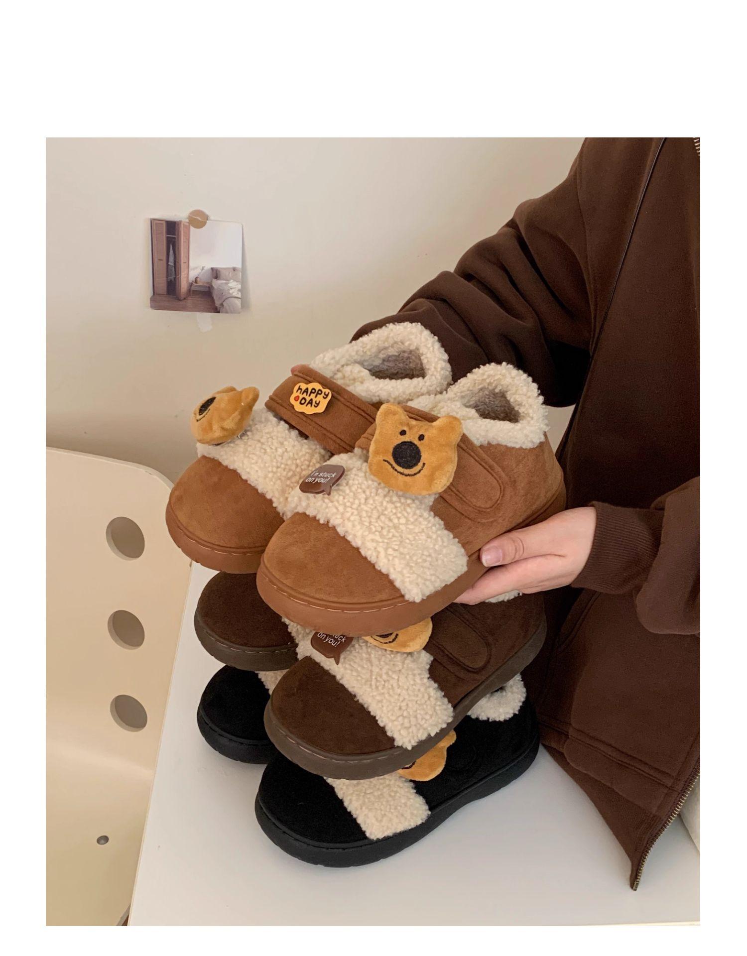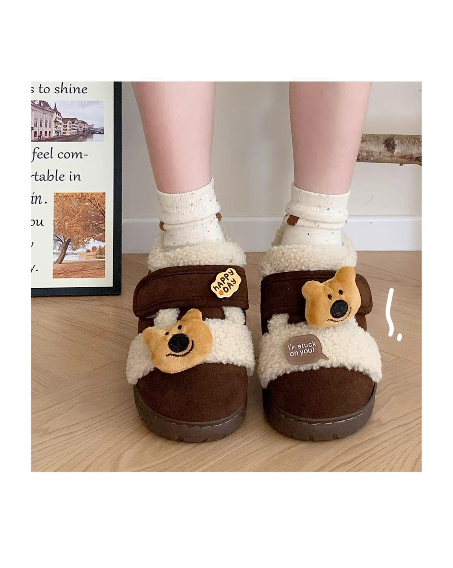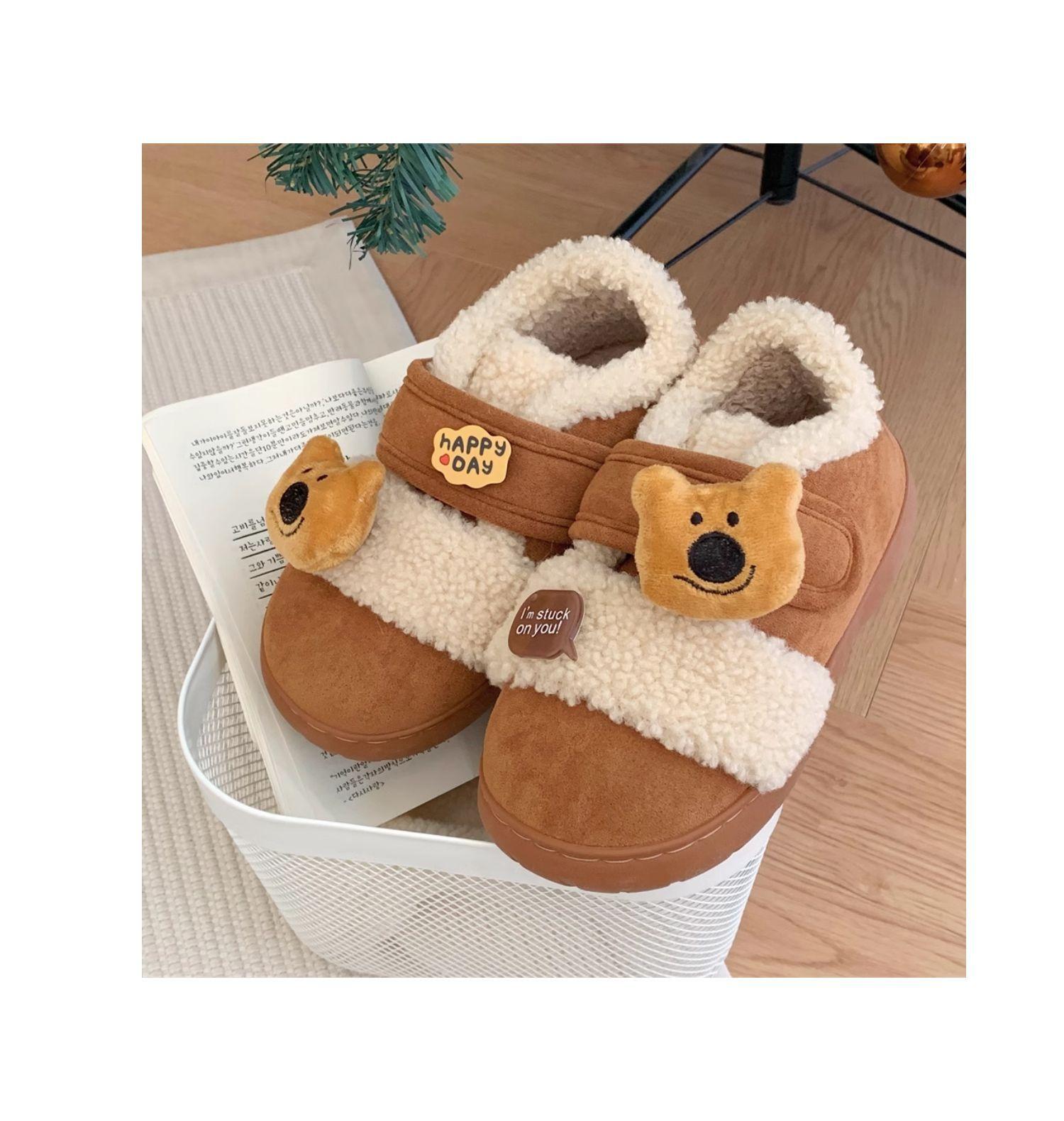 Oso Ropa Exterior para Padres e Hijos Invierno para Mujer Zapatos Distintivos con Forro Polar Divertidos Lindos Ins Cálidos Zapatos Mao Mao Zapatos de Algodón