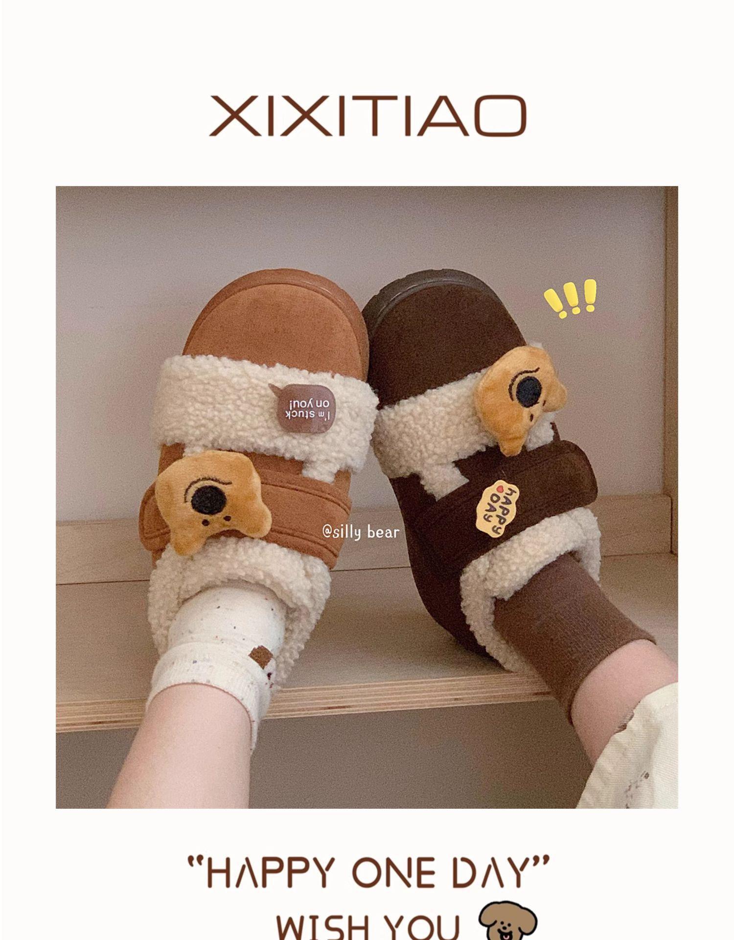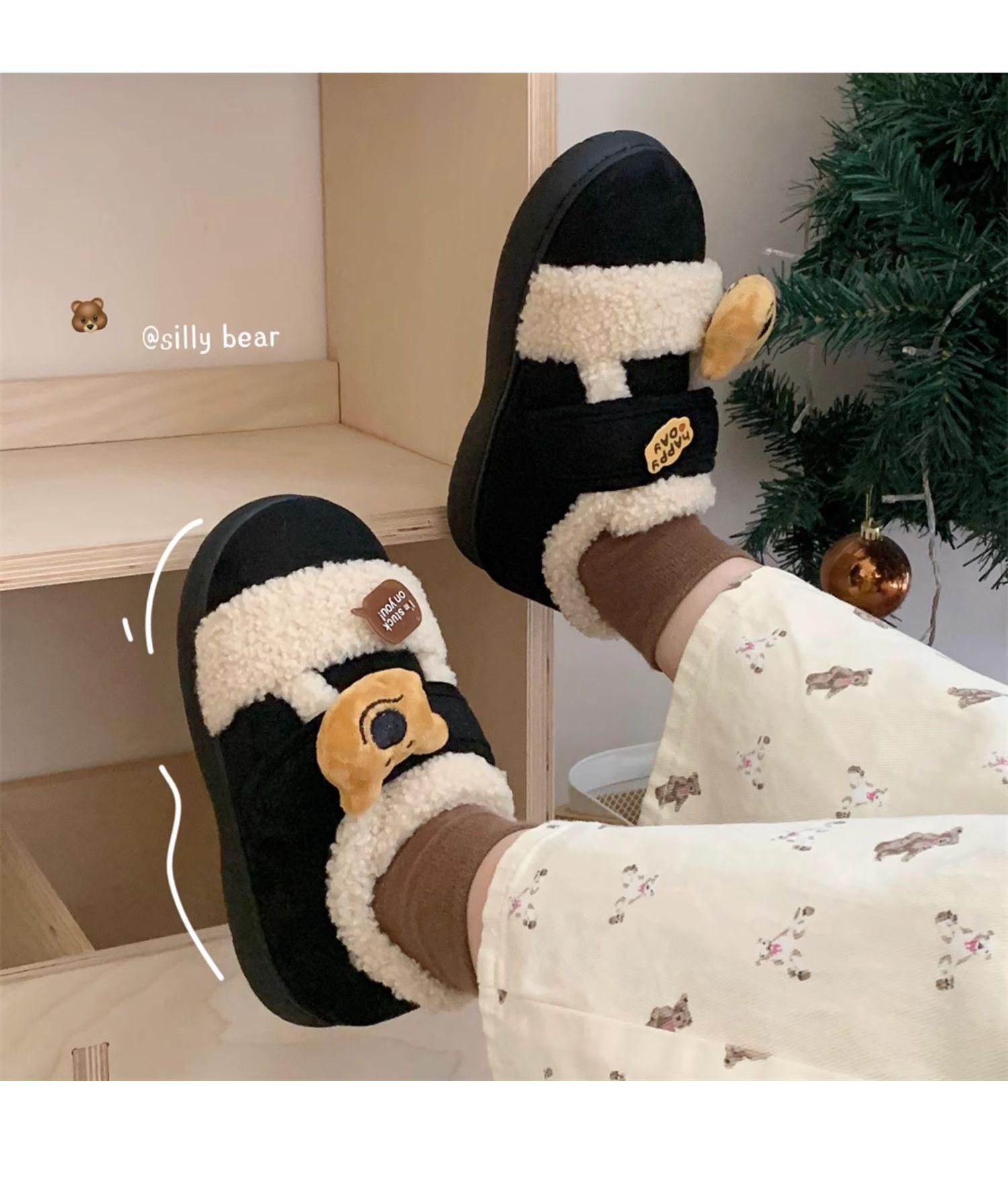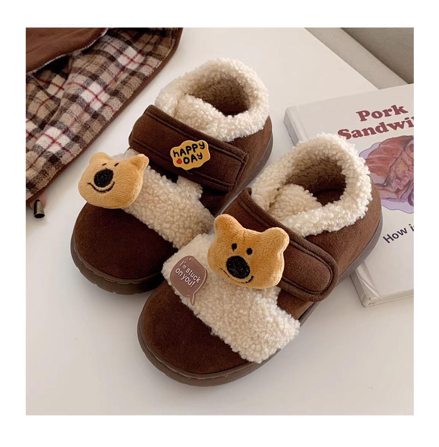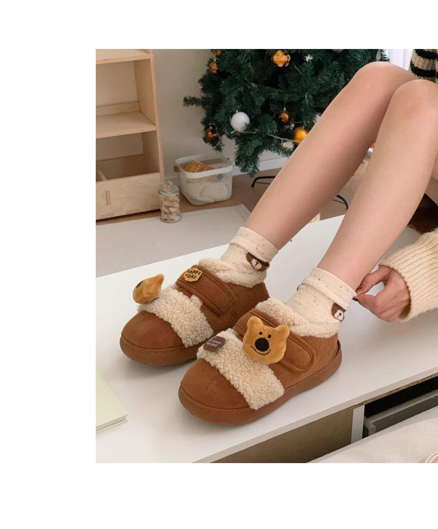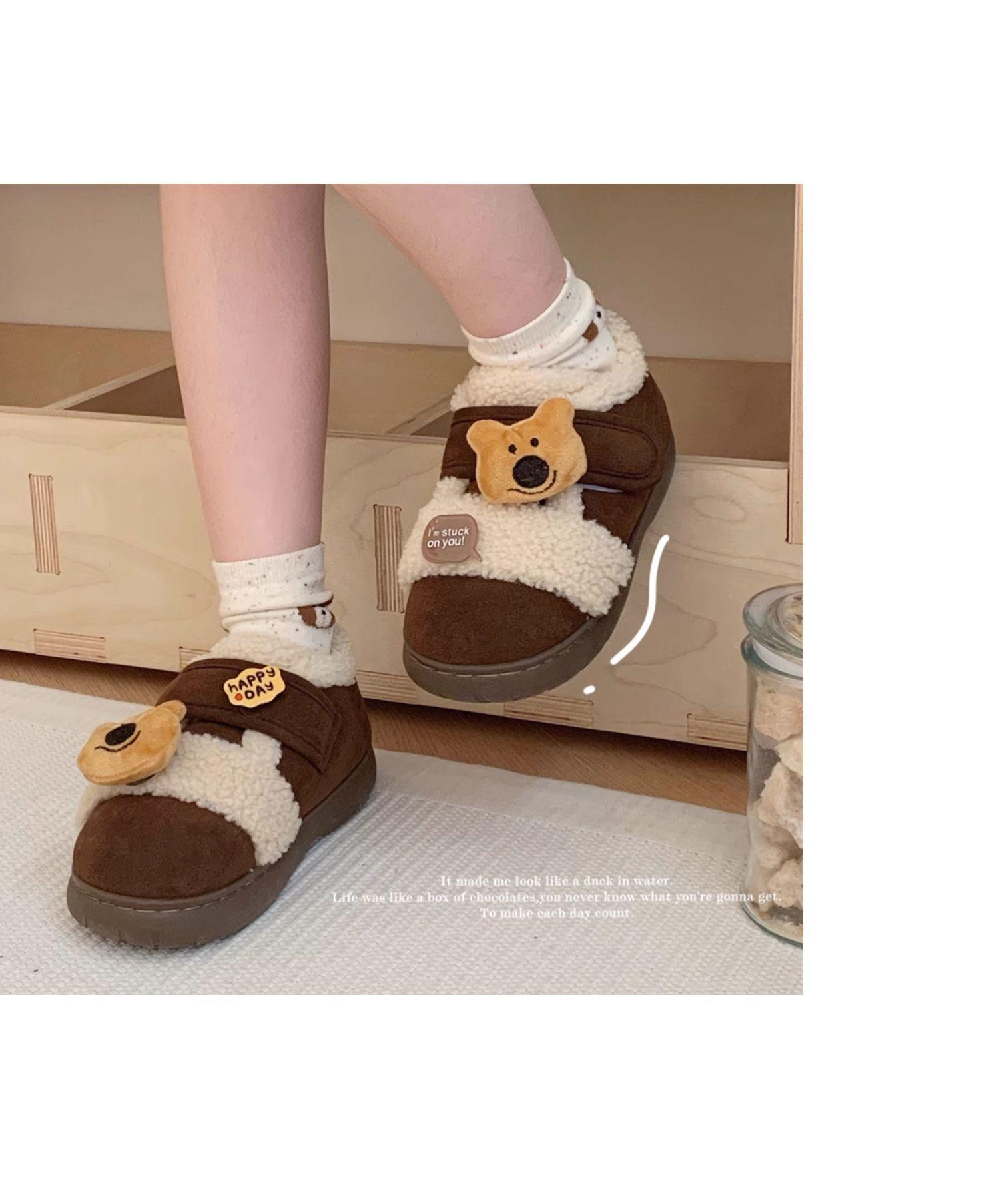 Oso Ropa Exterior para Padres e Hijos Invierno para Mujer Zapatos Distintivos con Forro Polar Divertidos Lindos Ins Cálidos Zapatos Mao Mao Zapatos de Algodón