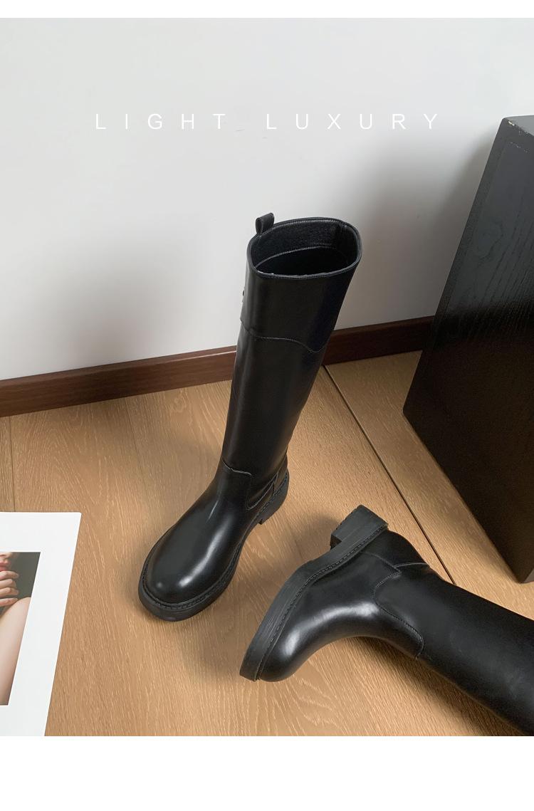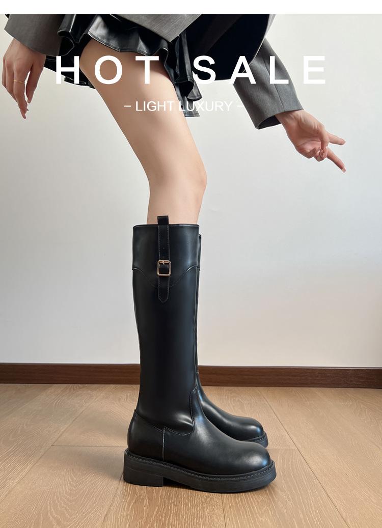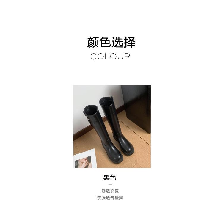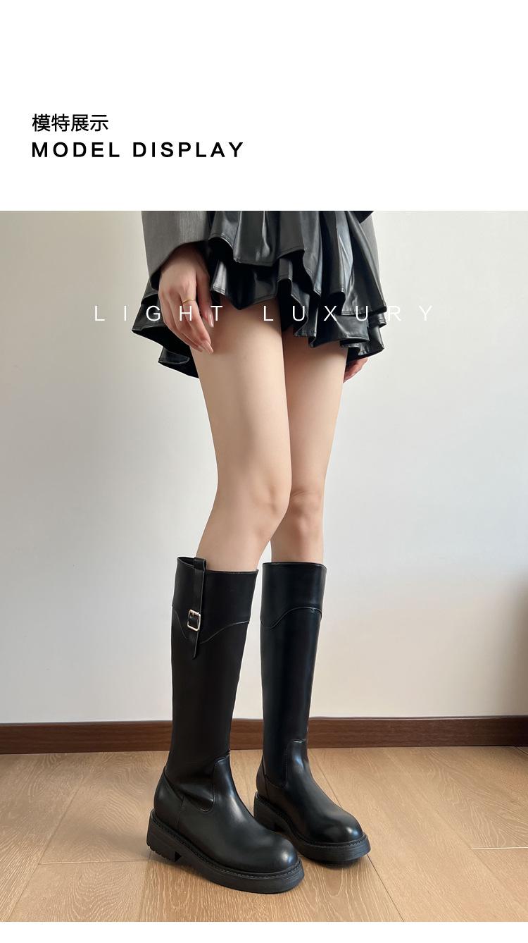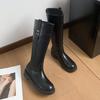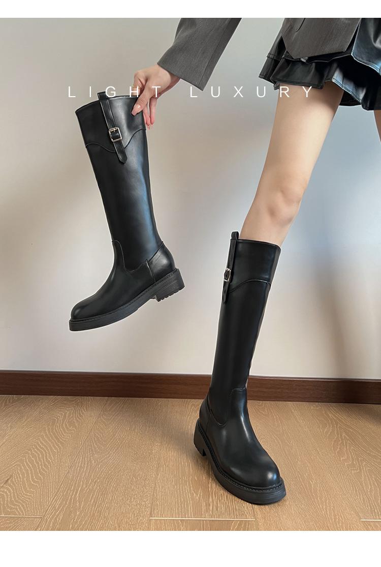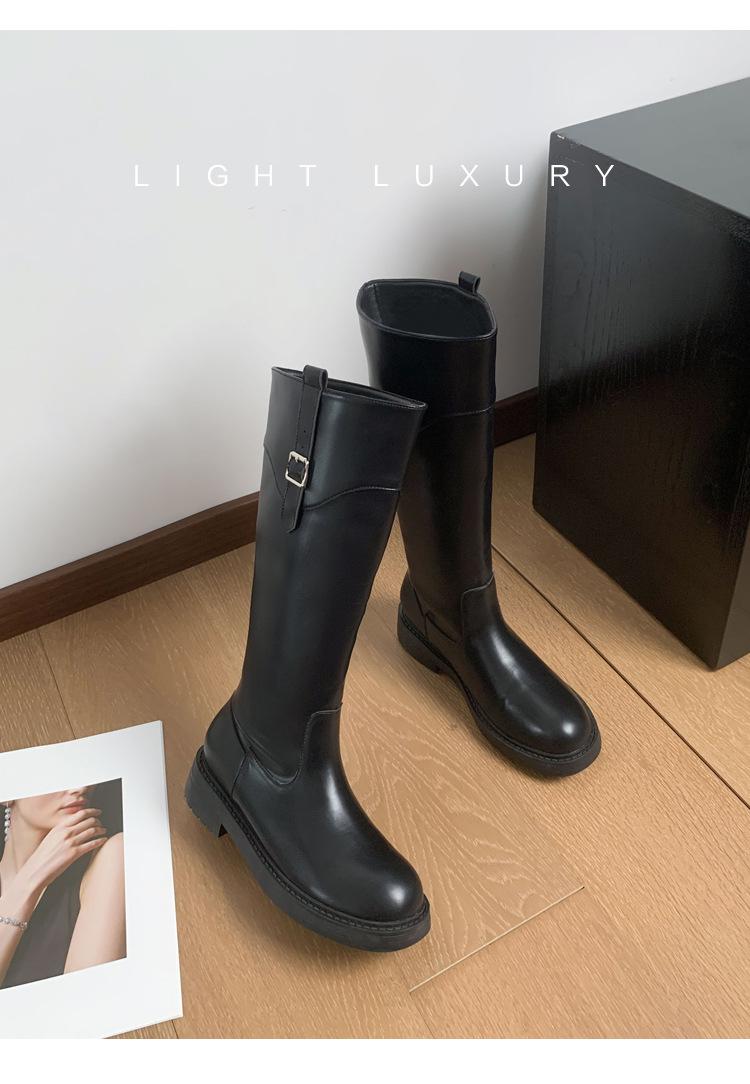 Botas de Mujer Otoño e Invierno 2025 Nuevo Estilo Coreano Retro Moda Botas Negras Punta Redonda Tacón Medio Botas Altas con Hebilla de Cinturón