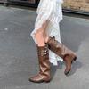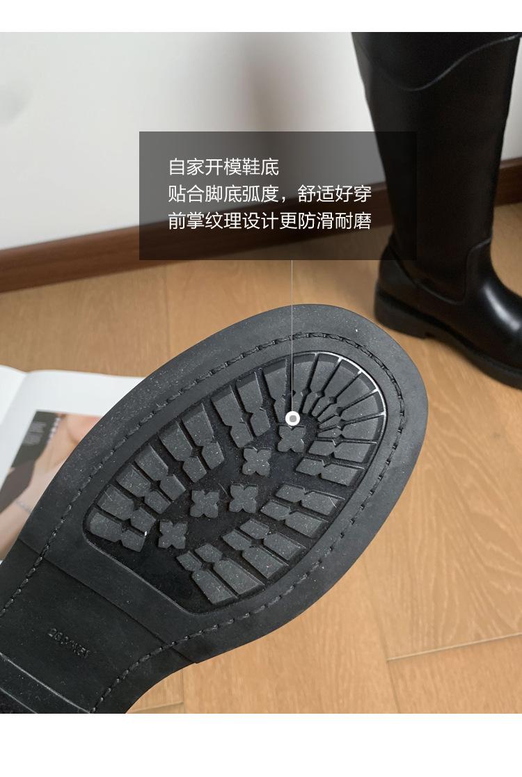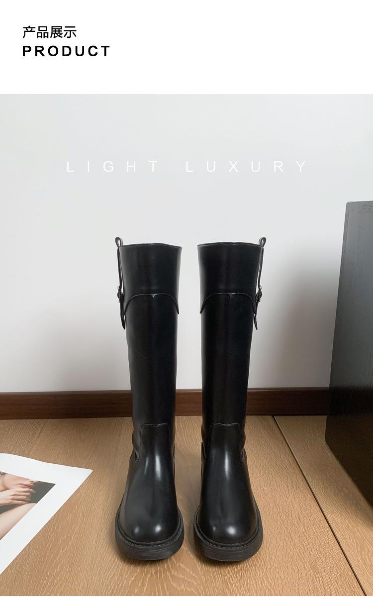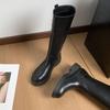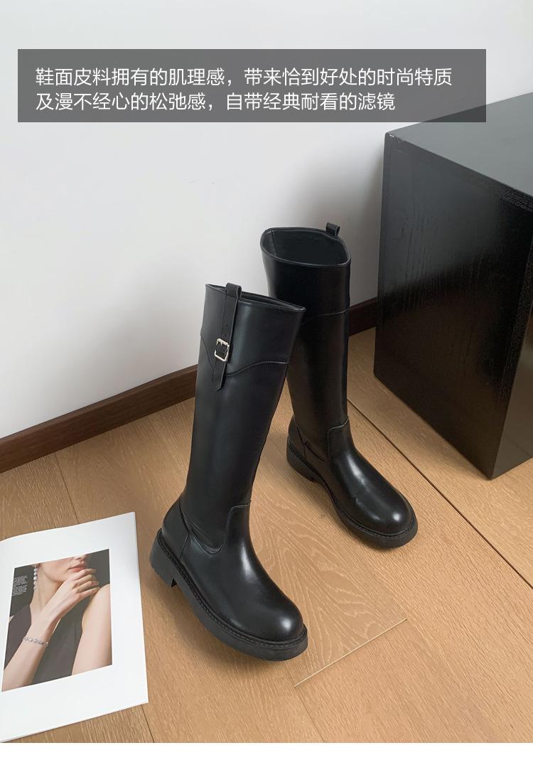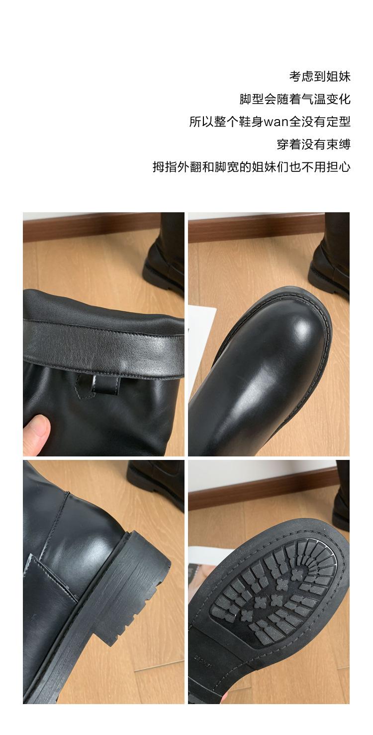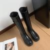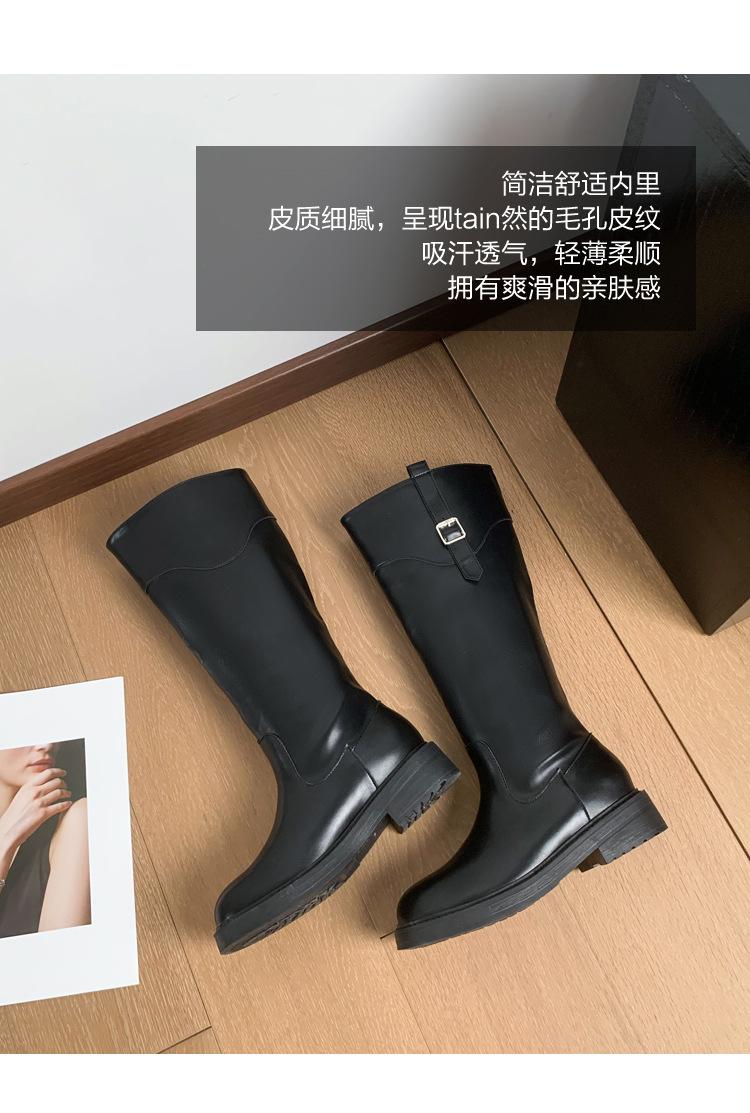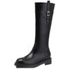 Botas de Mujer Otoño e Invierno 2025 Nuevo Estilo Coreano Retro Moda Botas Negras Punta Redonda Tacón Medio Botas Altas con Hebilla de Cinturón