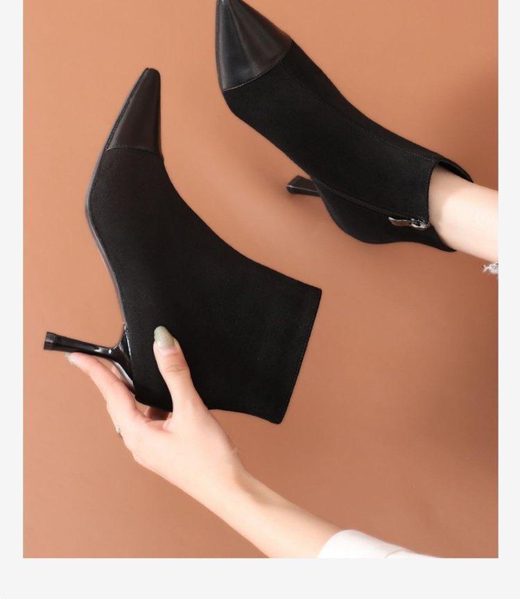 Botas Hermosas de Estilo Francés con Tacón de Aguja para Niños 2024 Nuevos Tacones Altos Otoño e Invierno Botines Sexy de Punta Botas Ajustadas