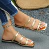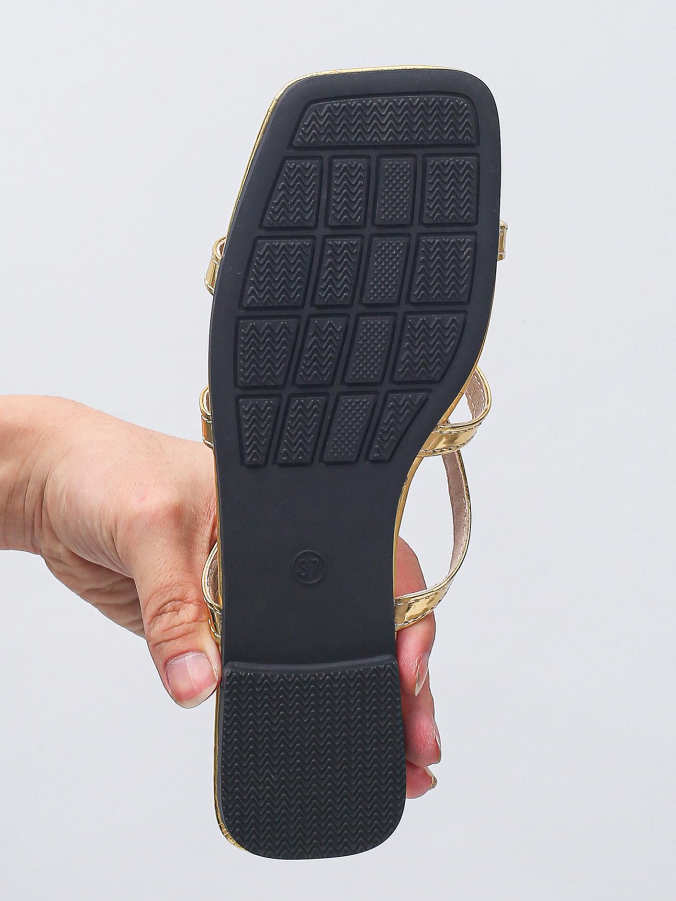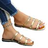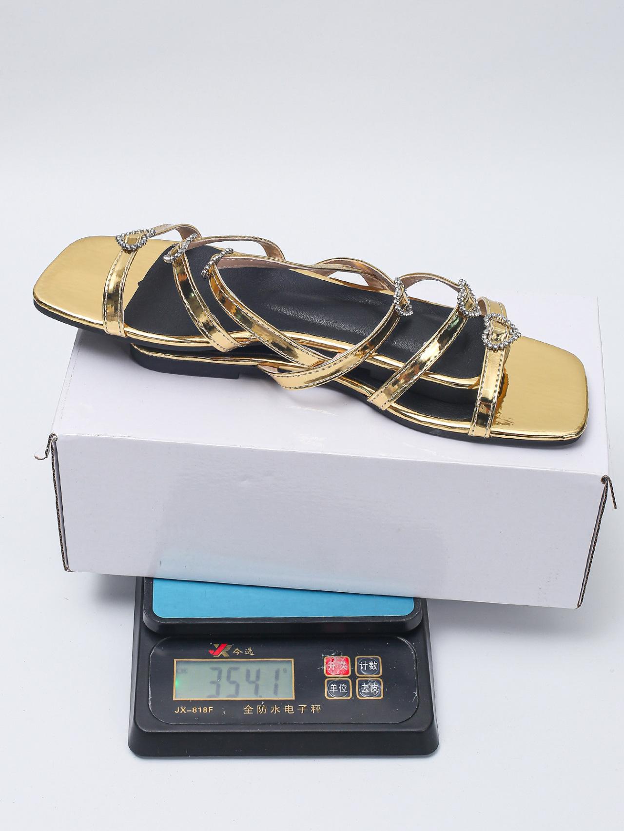 Pantuflas planas Verano Nuevo Comercio Exterior talla grande Cabeza cuadrada Sandalias de casa con pedrería para mujer Pantuflas