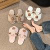 Bonitas pantuflas de algodón para mujer, para otoño e invierno, para el hogar, gruesas, con dibujos animados de una palabra, para parejas, cálidas, de algodón.