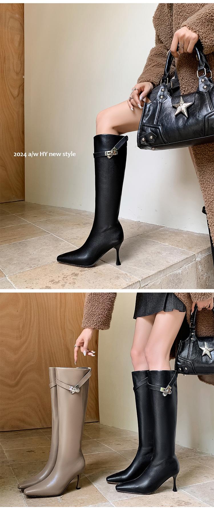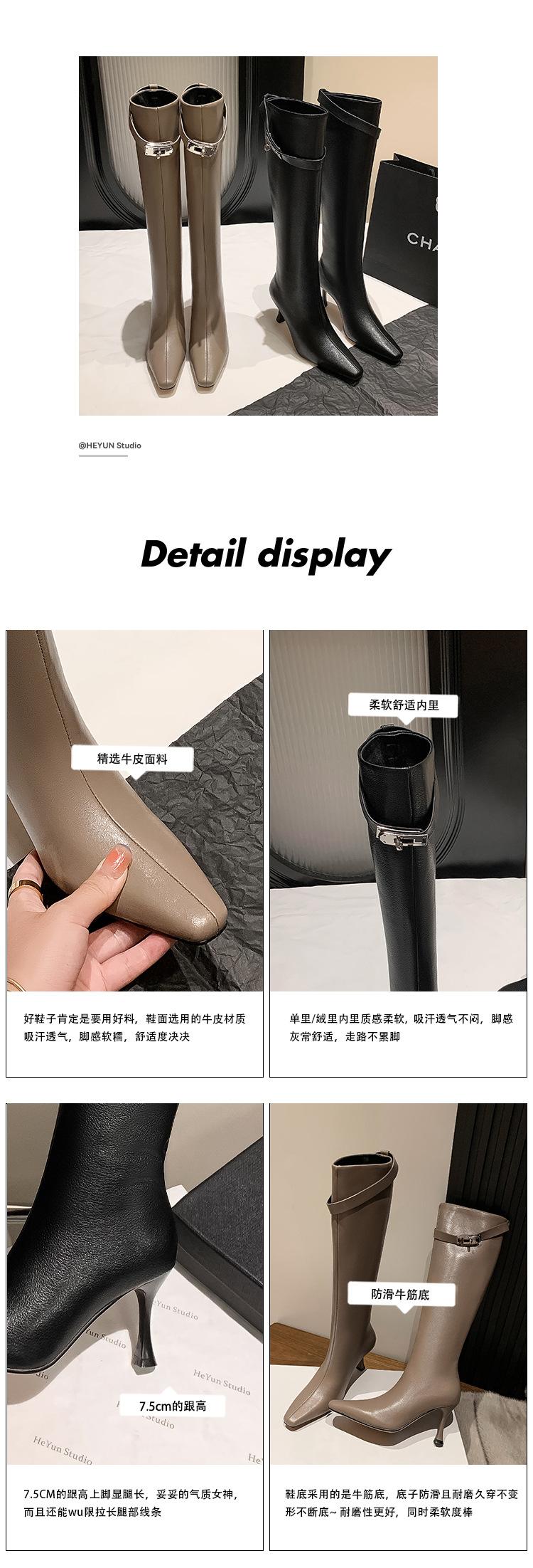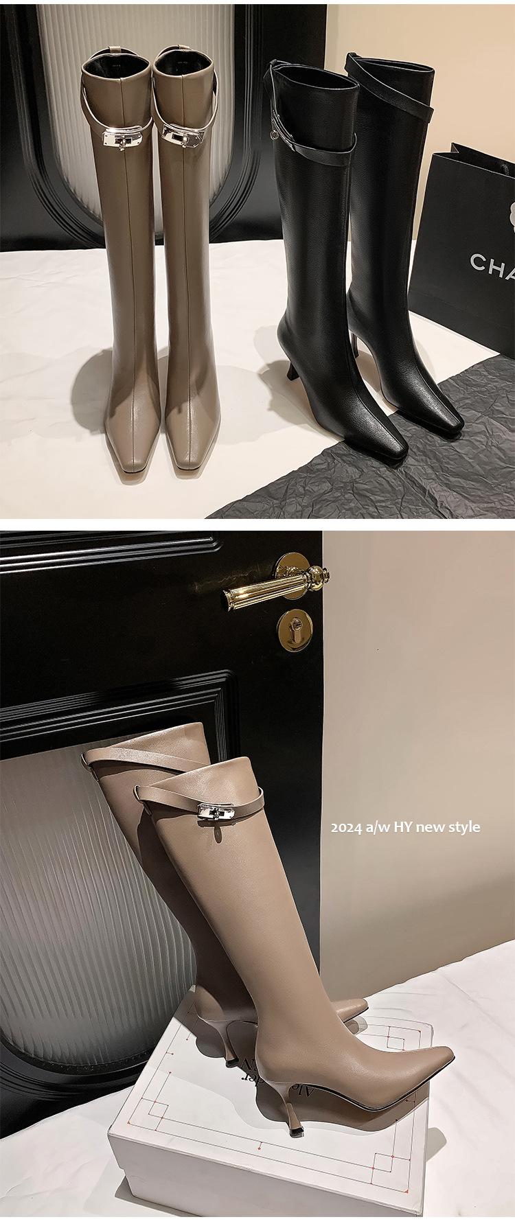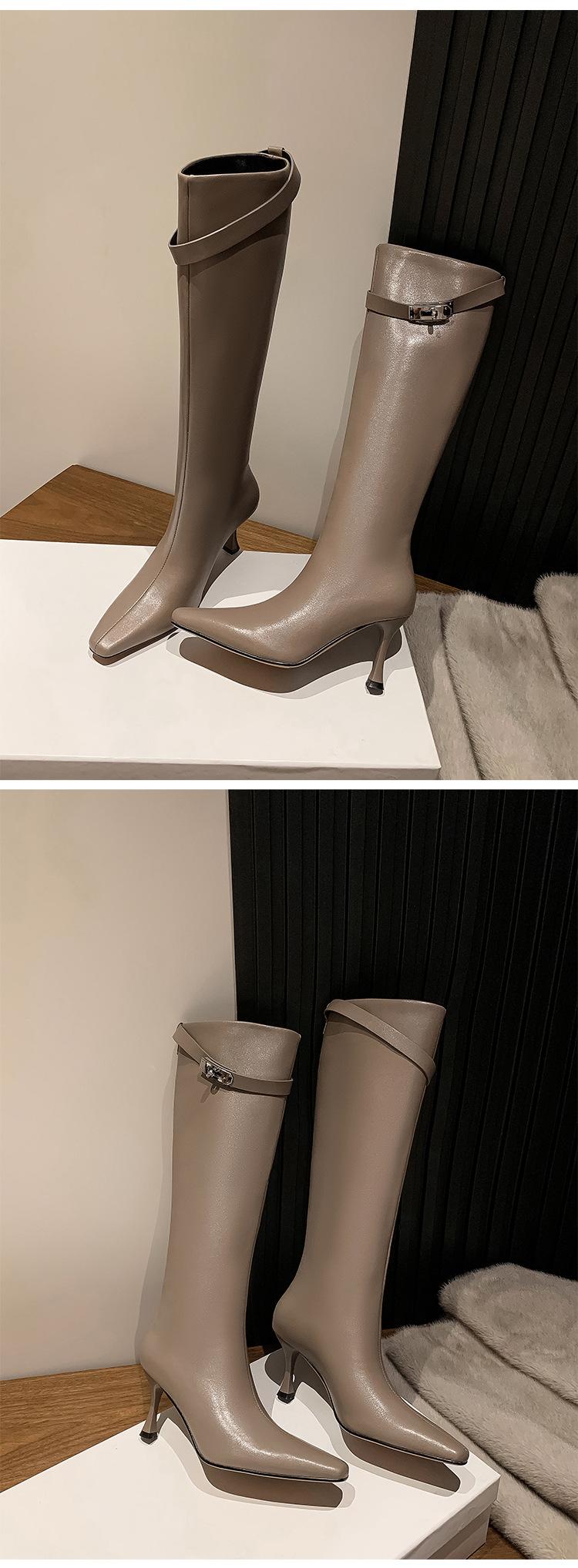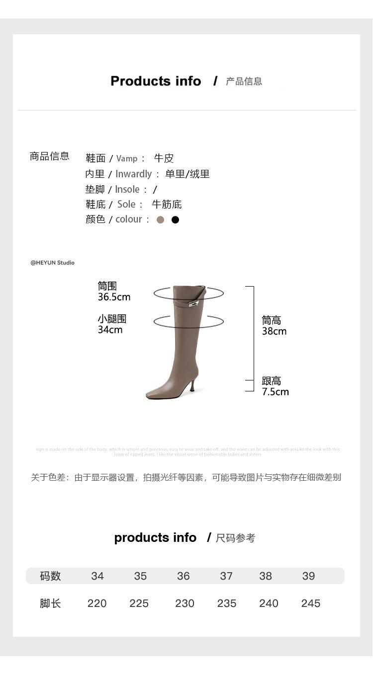 Mujer sexy ~ Otoño 2024, botas de cuero hasta la rodilla con tacón alto y cierre de seguridad, botas finas con pierna cuadrada y cabeza cuadrada