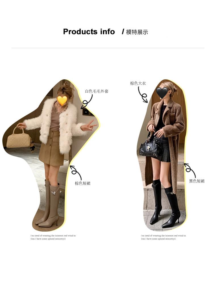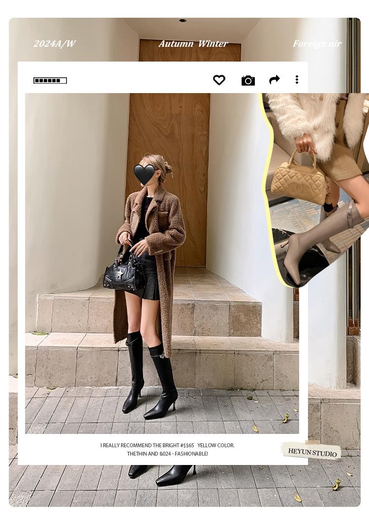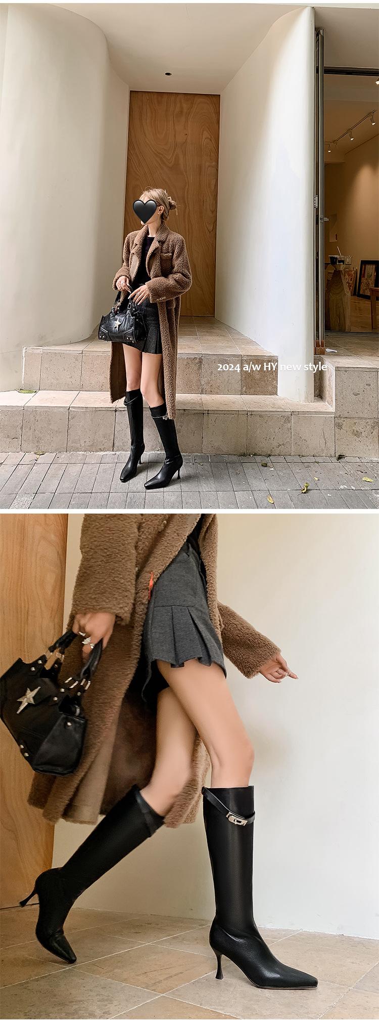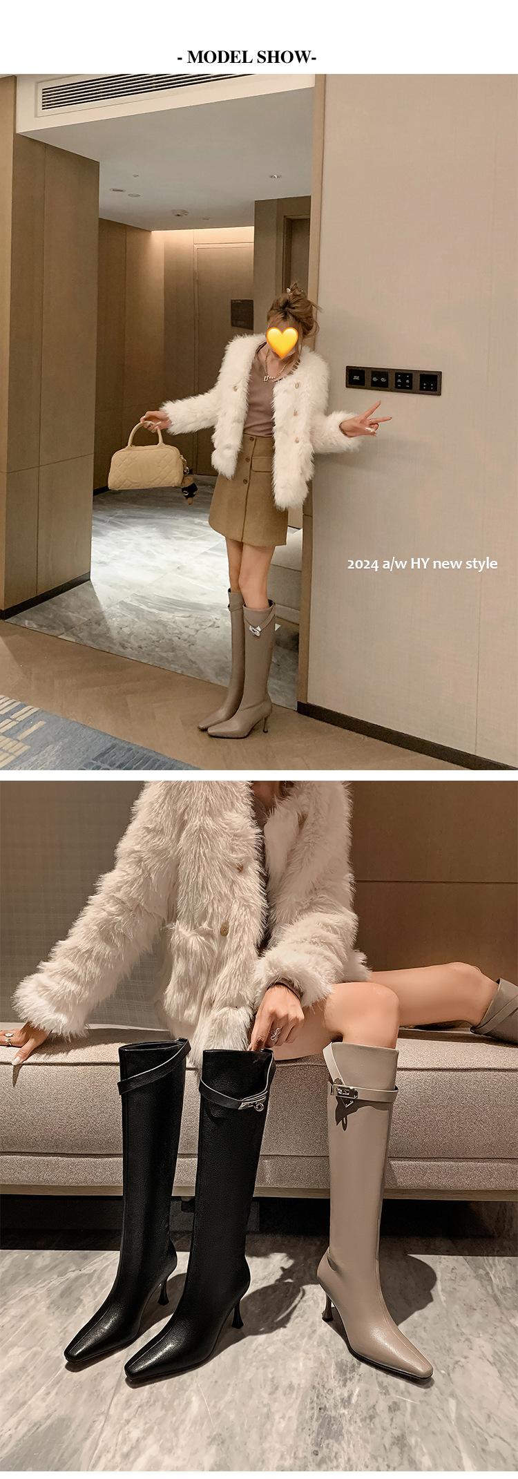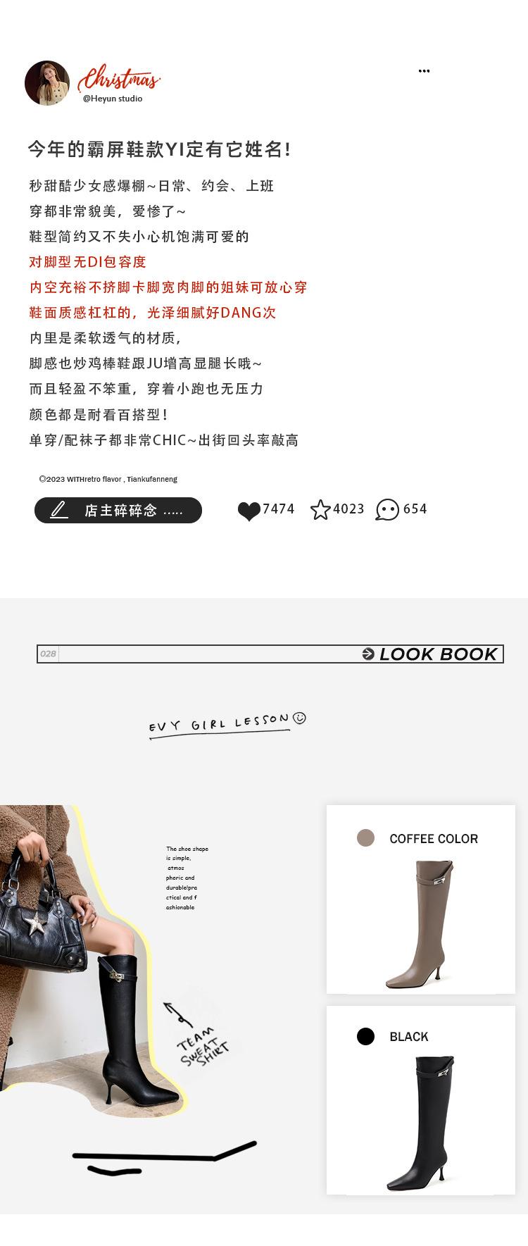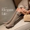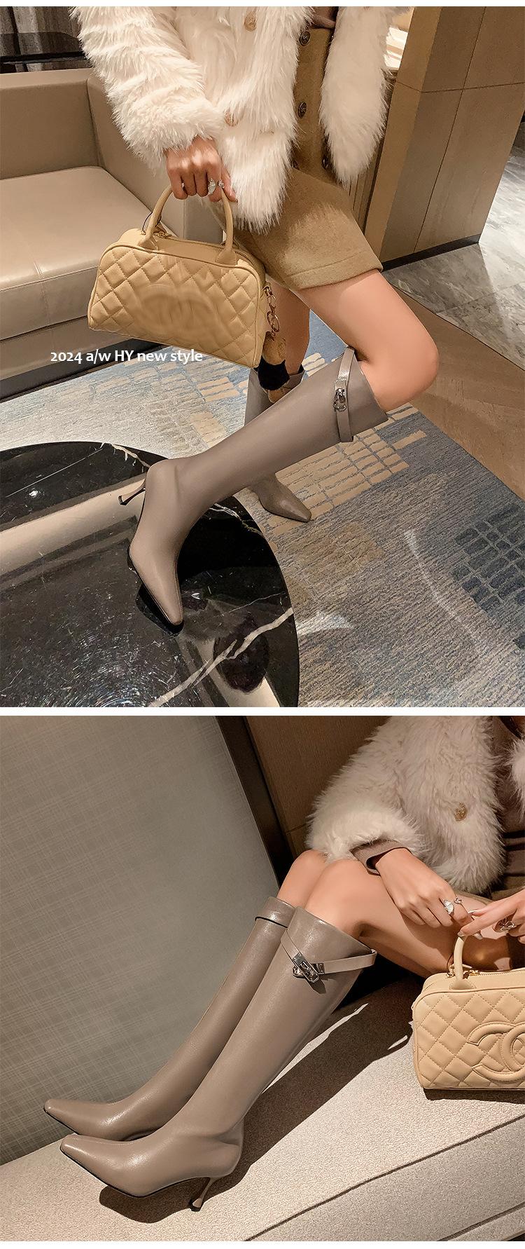 Mujer sexy ~ Otoño 2024, botas de cuero hasta la rodilla con tacón alto y cierre de seguridad, botas finas con pierna cuadrada y cabeza cuadrada