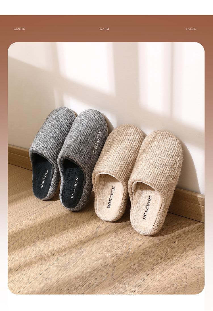 Zapatillas de algodón sencillas para hombre, otoño e invierno 2024, nuevas zapatillas de felpa antideslizantes y cálidas para interiores y exteriores para mujer.