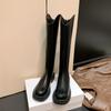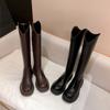 Pero botas hasta la rodilla para mujer, invierno, forro polar, 2021, nuevas, para todo fósforo, tacón grueso, cabeza cuadrada, botas finas, botas de caballero de tubo largo, botas de cuero